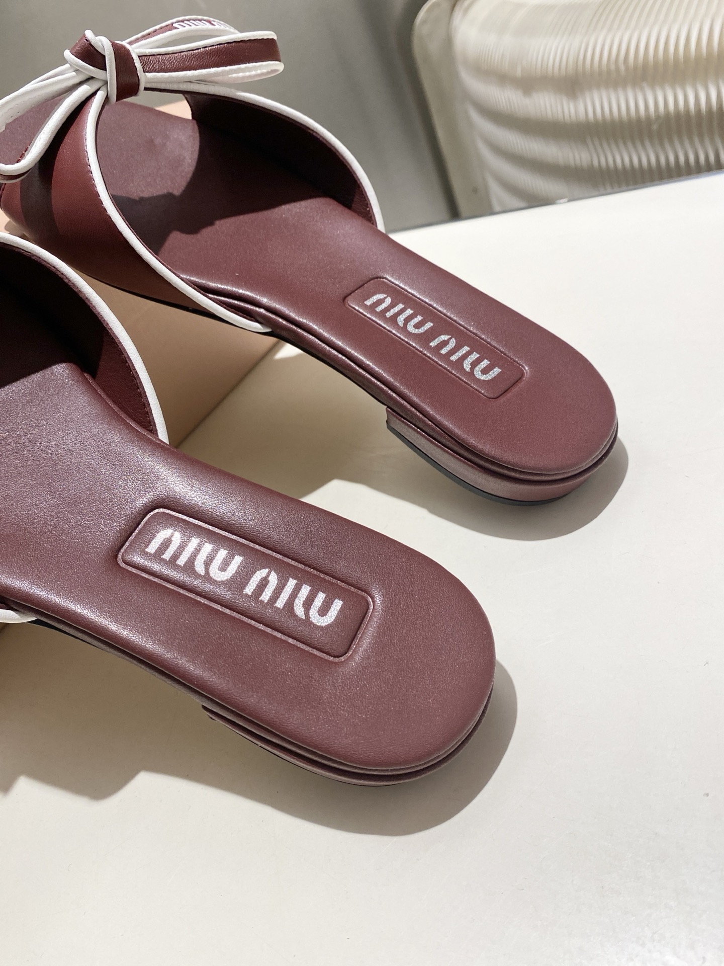 這款鞋子是AAAAA 1:1 質量(非常棒). 使用了和原版一模一樣的材料. 商標部分也保持了和繆繆/Miu Miu一樣. 圖片拍攝是實物鞋子拍攝, 您所收到的實物保證和我們圖片一模一樣.