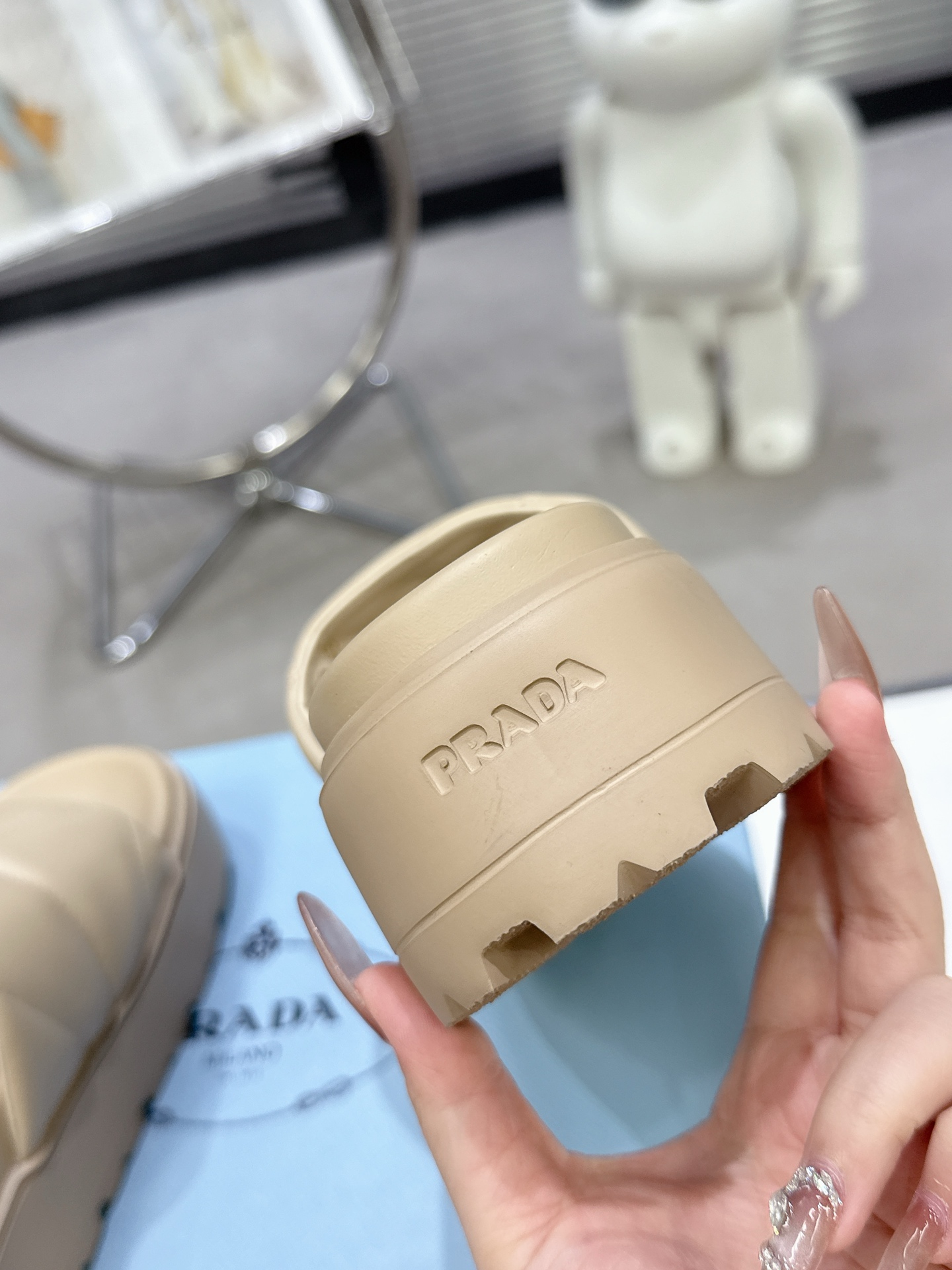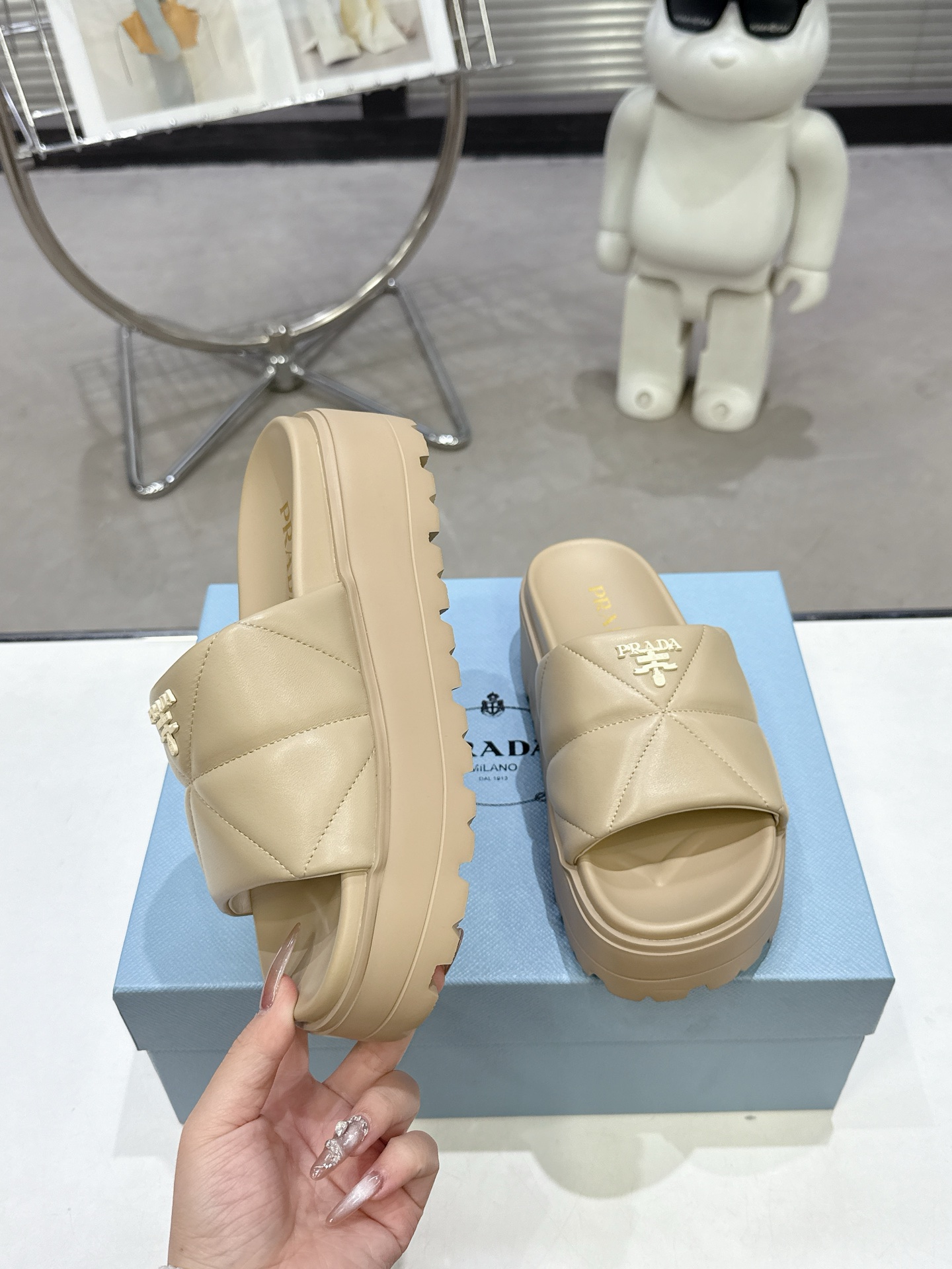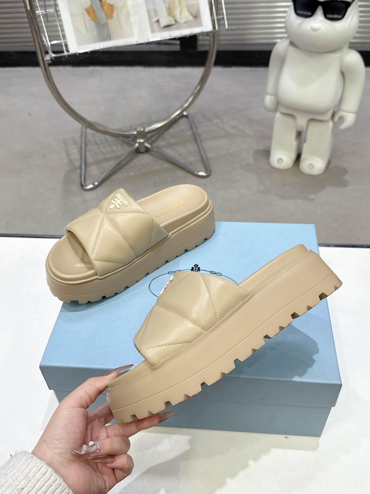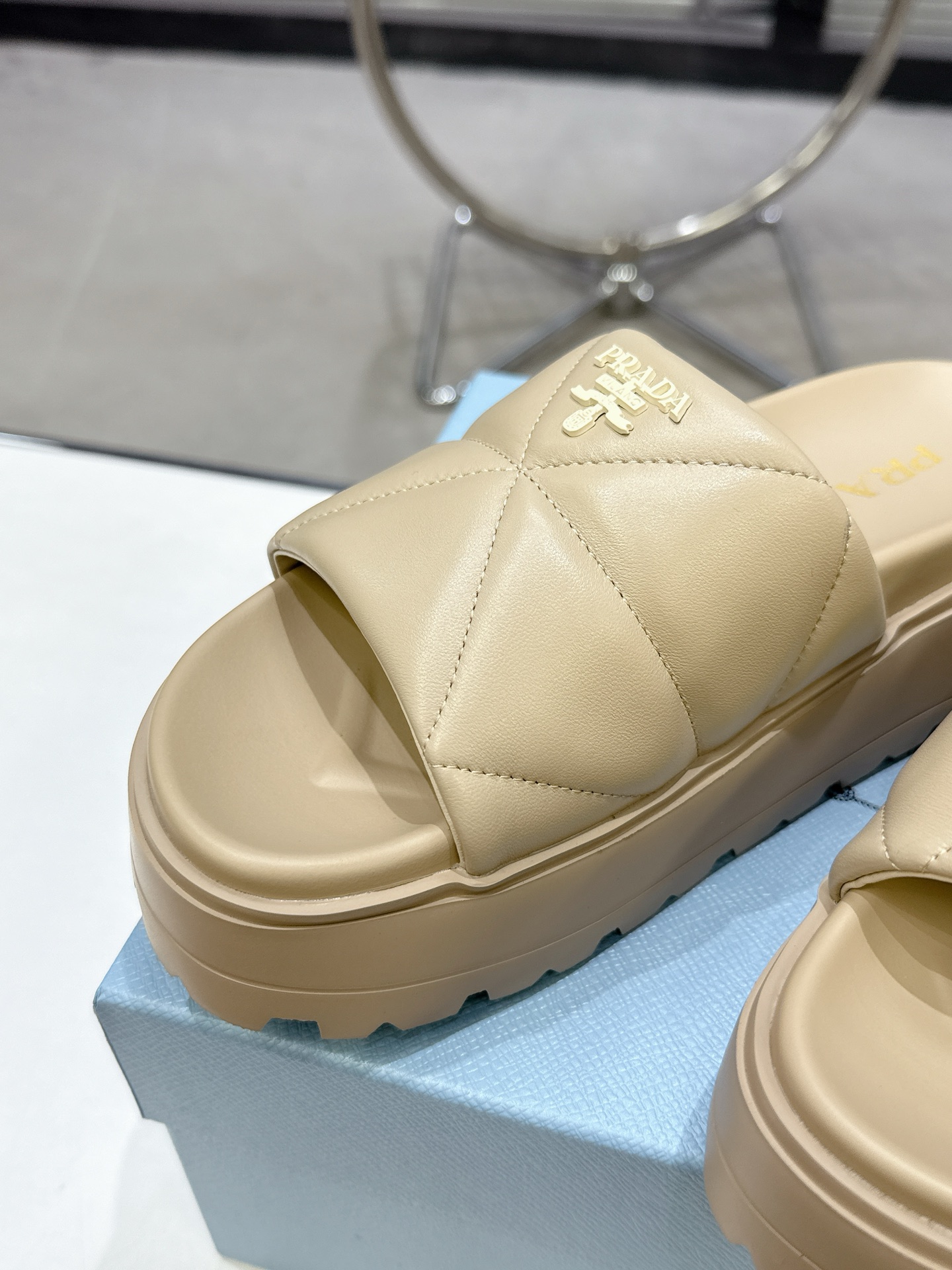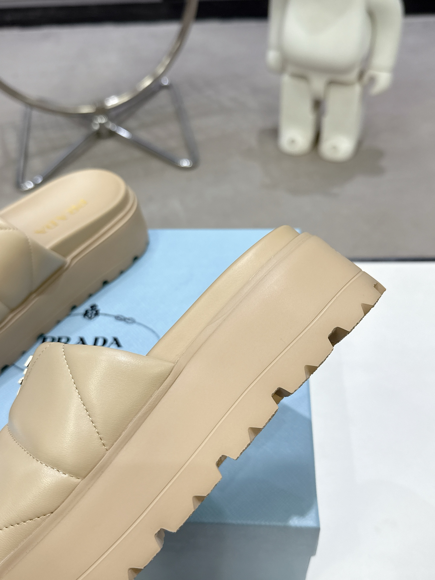這款鞋子是AAAAA 1:1 質量(非常棒). 使用了和原版一模一樣的材料. 商標部分也保持了和普拉達/Prada一樣. 圖片拍攝是實物鞋子拍攝, 您所收到的實物保證和我們圖片一模一樣.