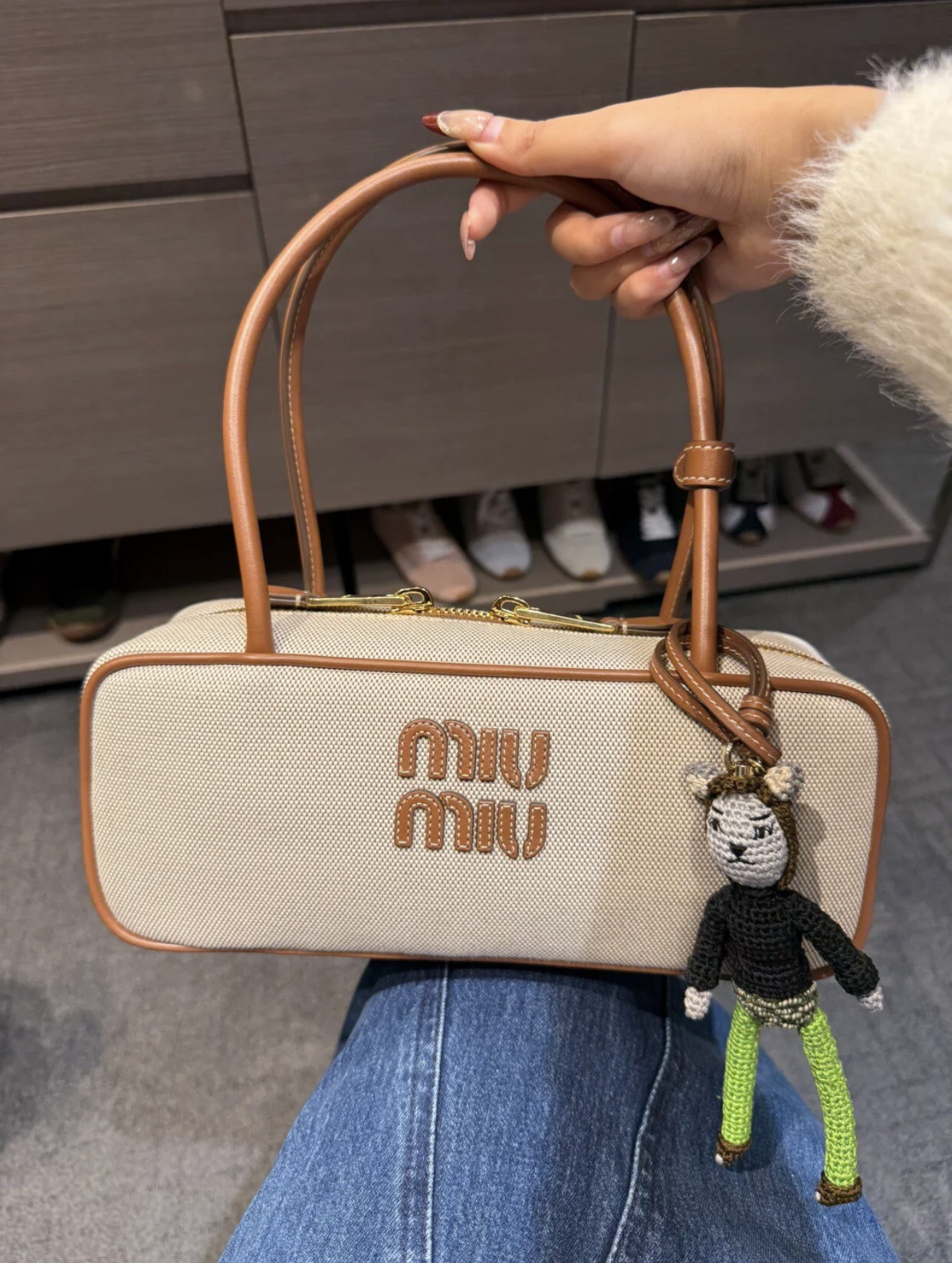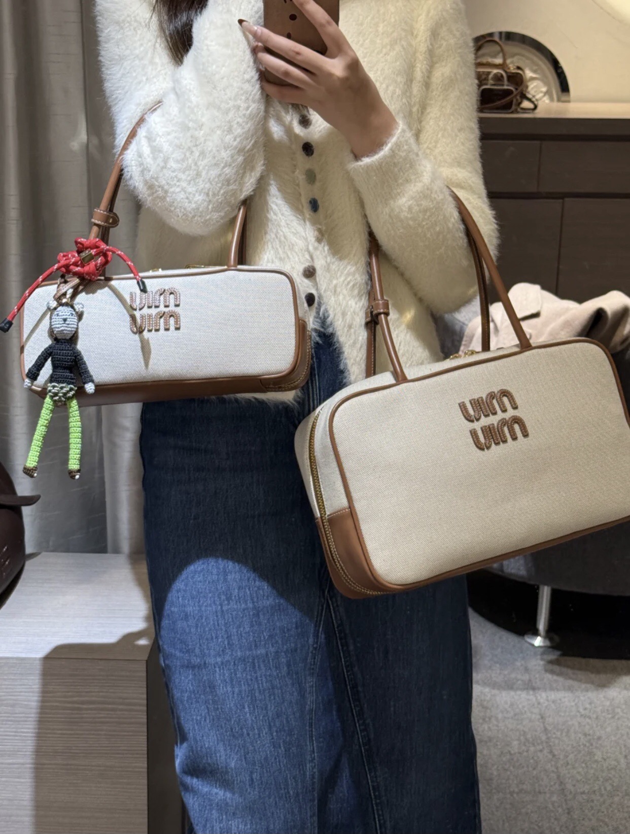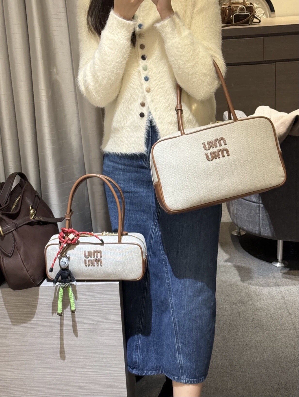 這款包包是AAAAA 1:1 質量(非常棒). 使用了和原版一模一樣的材料. 商標部分也保持了和繆繆/Miu Miu一樣. 圖片拍攝是實物包包拍攝, 您所收到的實物保證和我們圖片一模一樣.