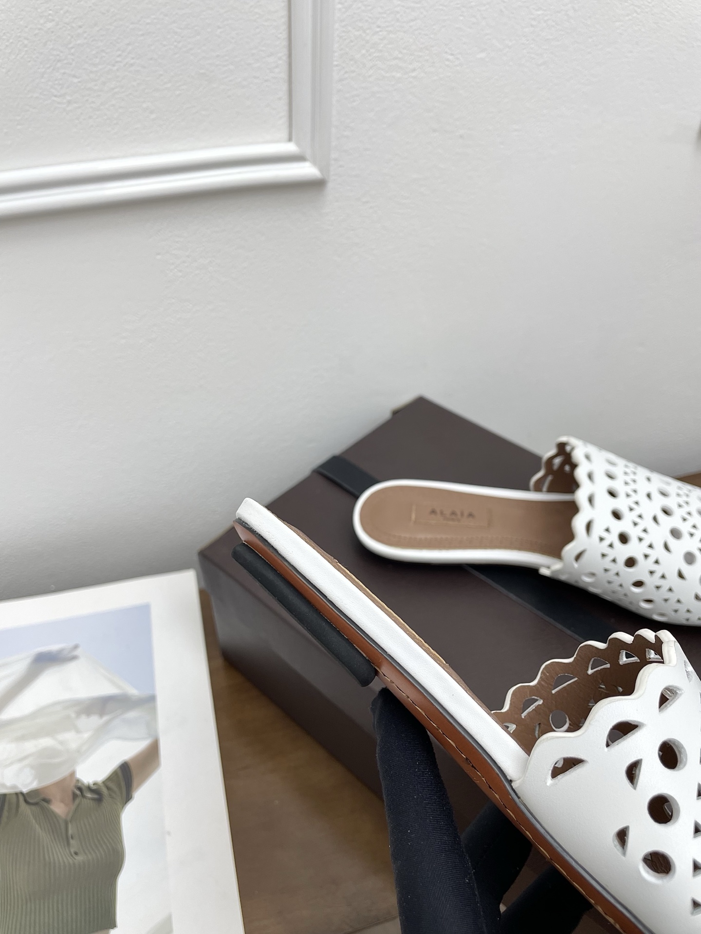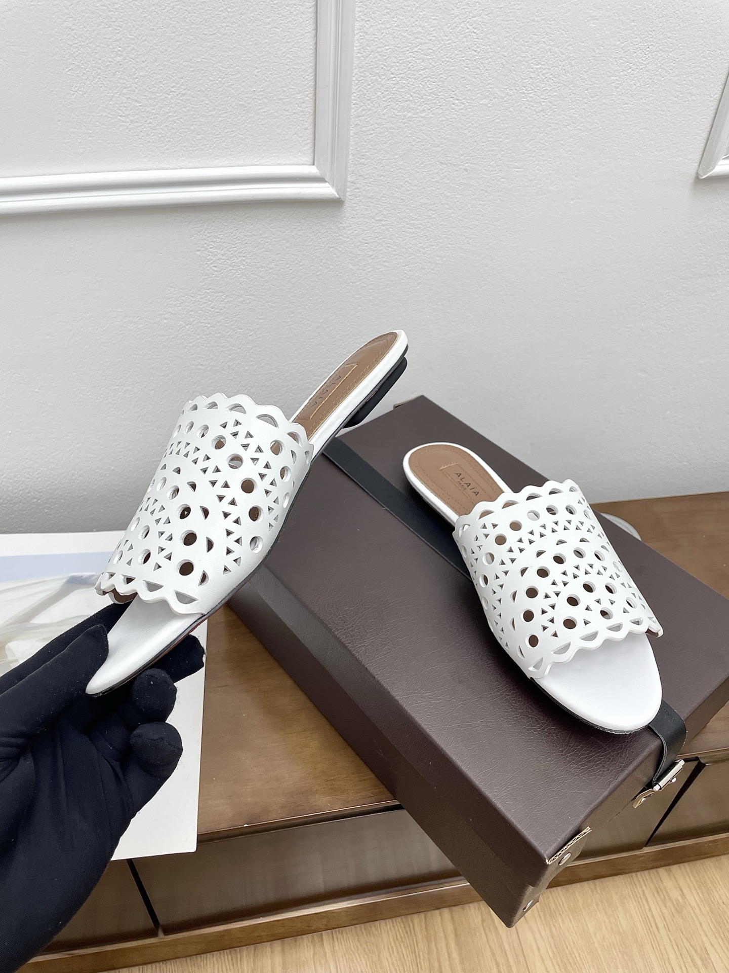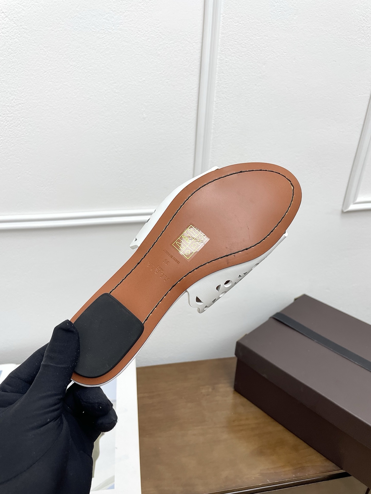 這款鞋子是AAAAA 1:1 質量(非常棒). 使用了和原版一模一樣的材料. 商標部分也保持了和Alaia一樣. 圖片拍攝是實物鞋子拍攝, 您所收到的實物保證和我們圖片一模一樣.
