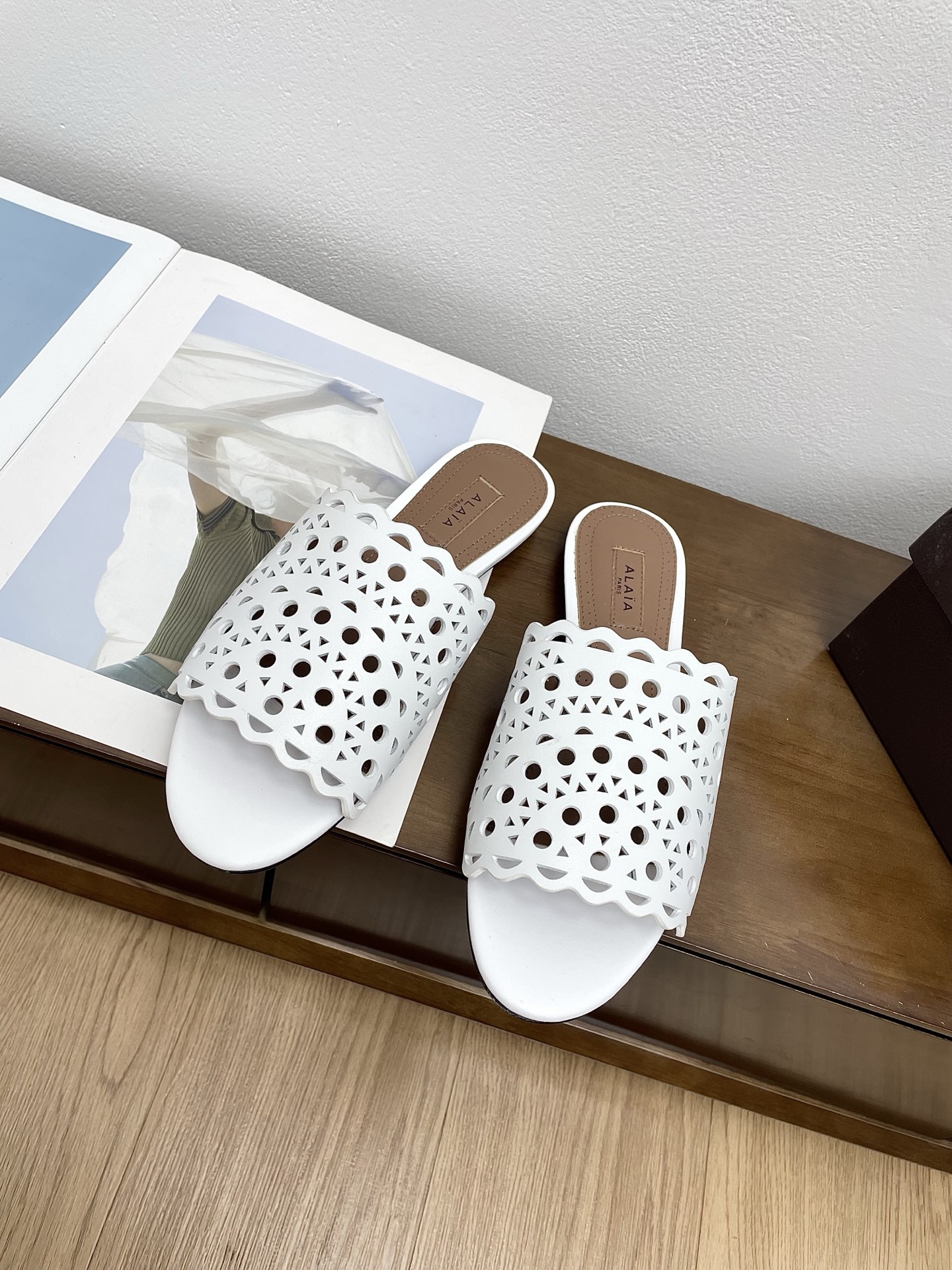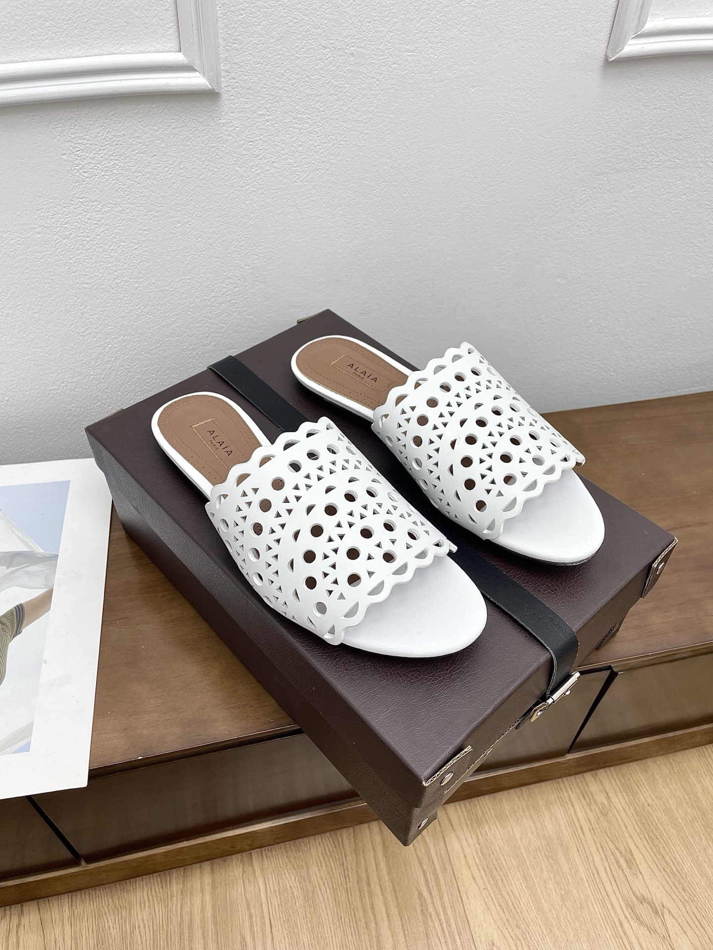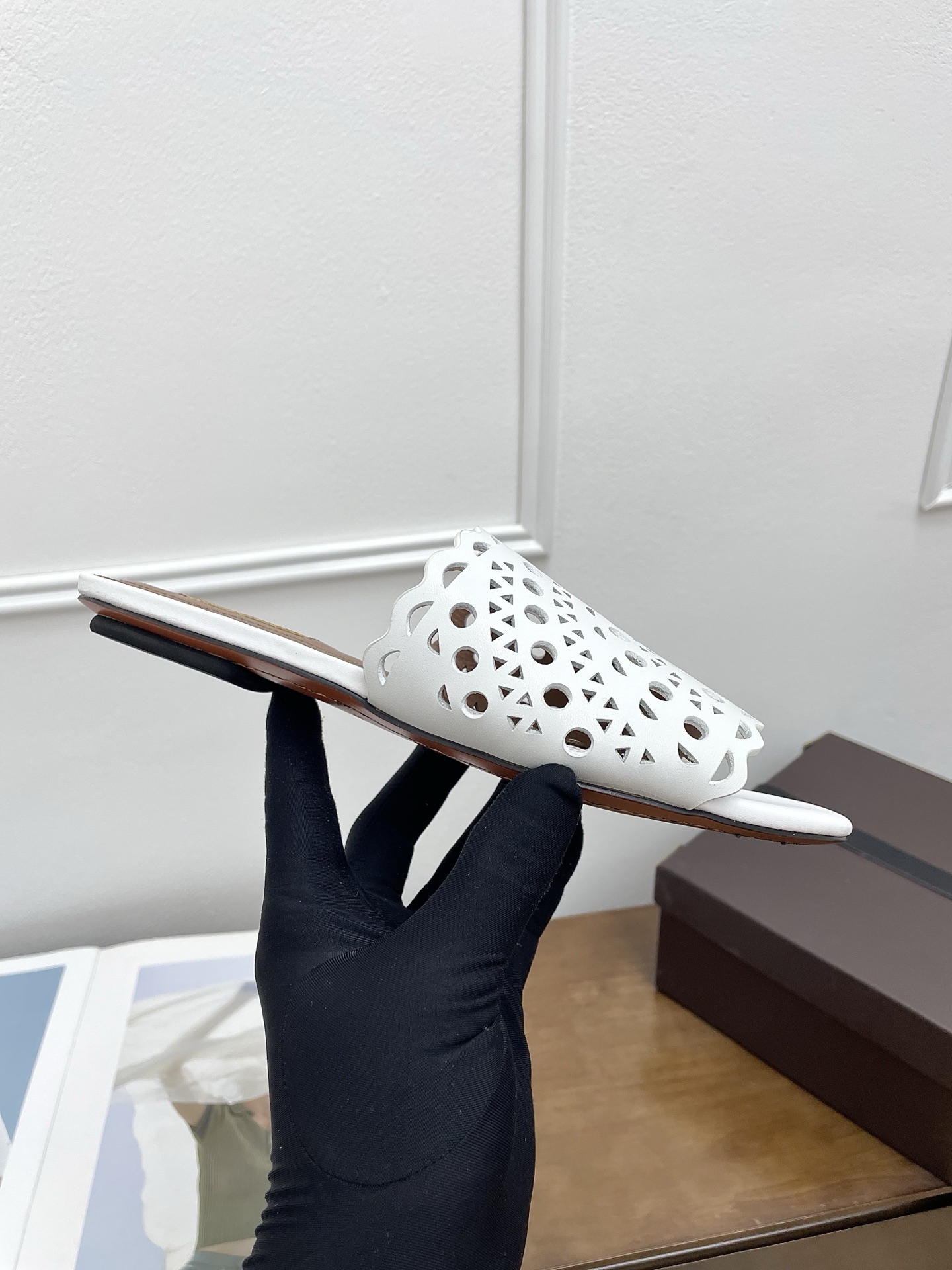 這款鞋子是AAAAA 1:1 質量(非常棒). 使用了和原版一模一樣的材料. 商標部分也保持了和Alaia一樣. 圖片拍攝是實物鞋子拍攝, 您所收到的實物保證和我們圖片一模一樣.