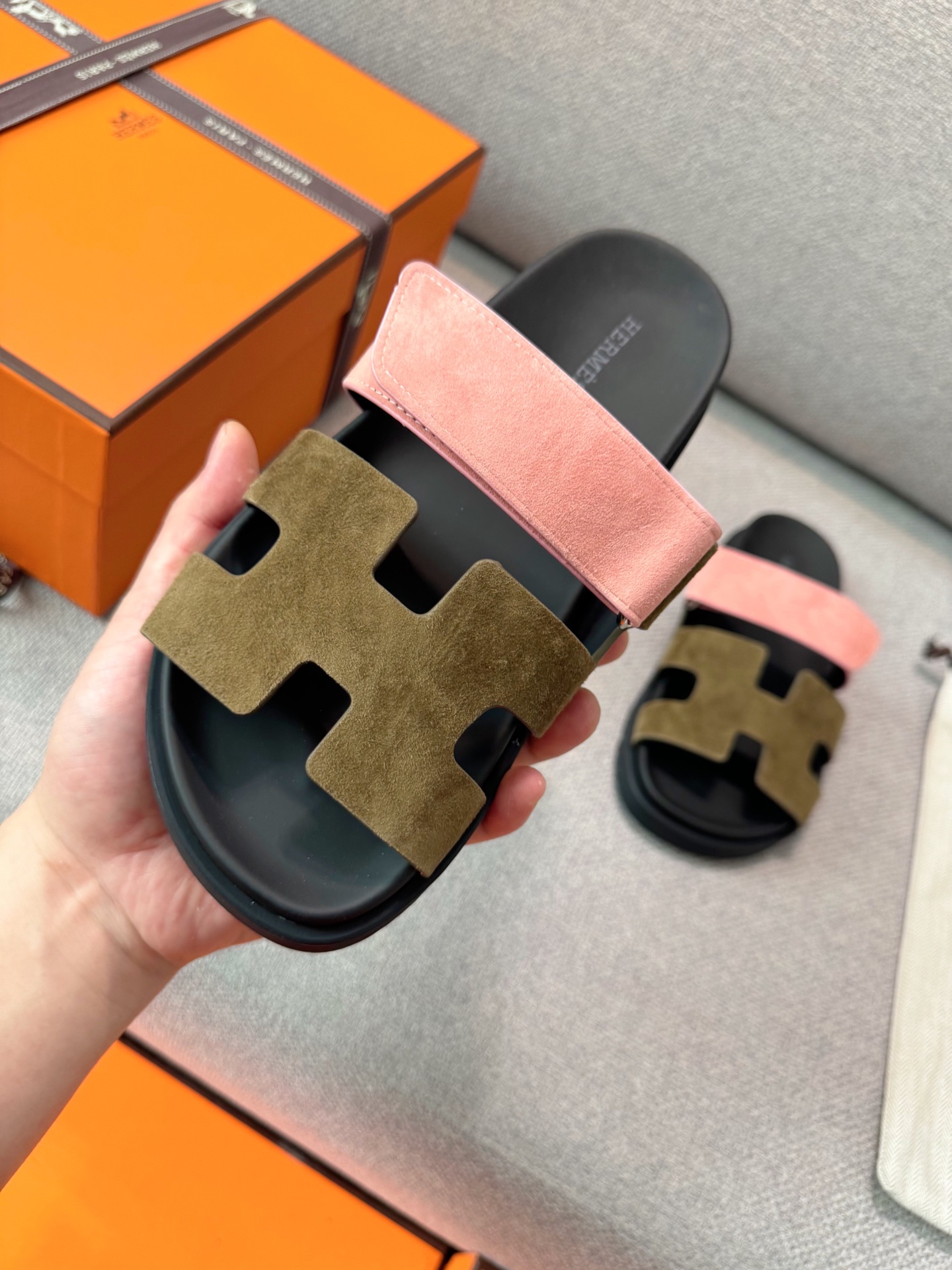 這款鞋子是AAAAA 1:1 質量(非常棒). 使用了和原版一模一樣的材料. 商標部分也保持了和愛馬仕/Hermes一樣. 圖片拍攝是實物鞋子拍攝, 您所收到的實物保證和我們圖片一模一樣.