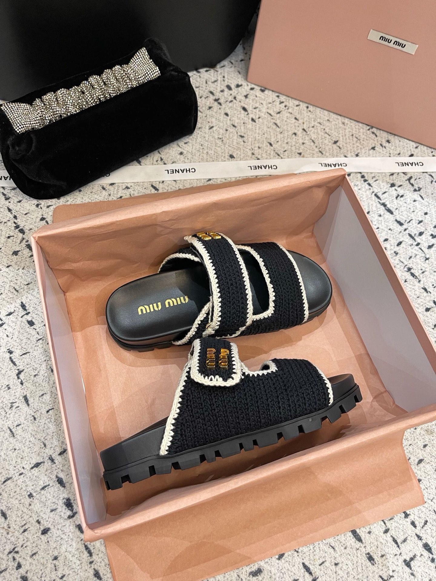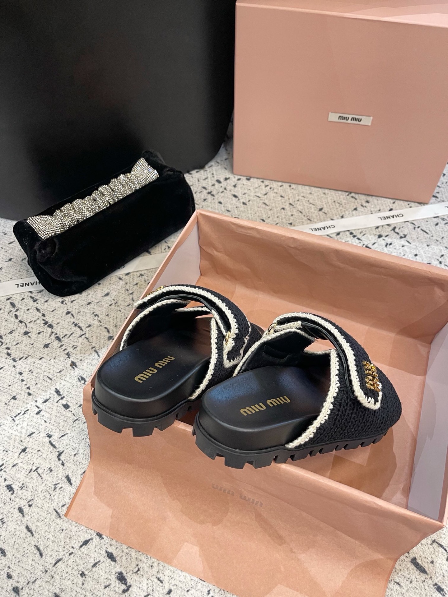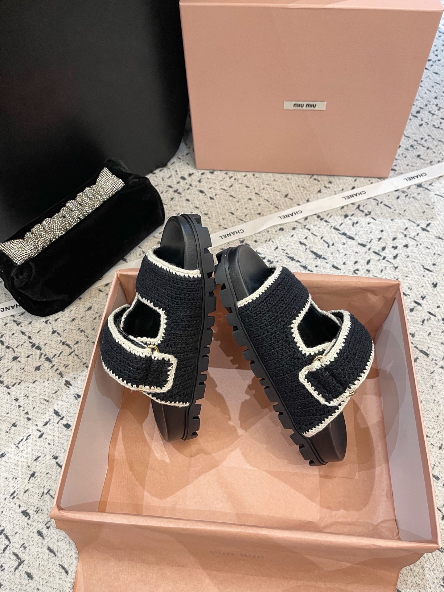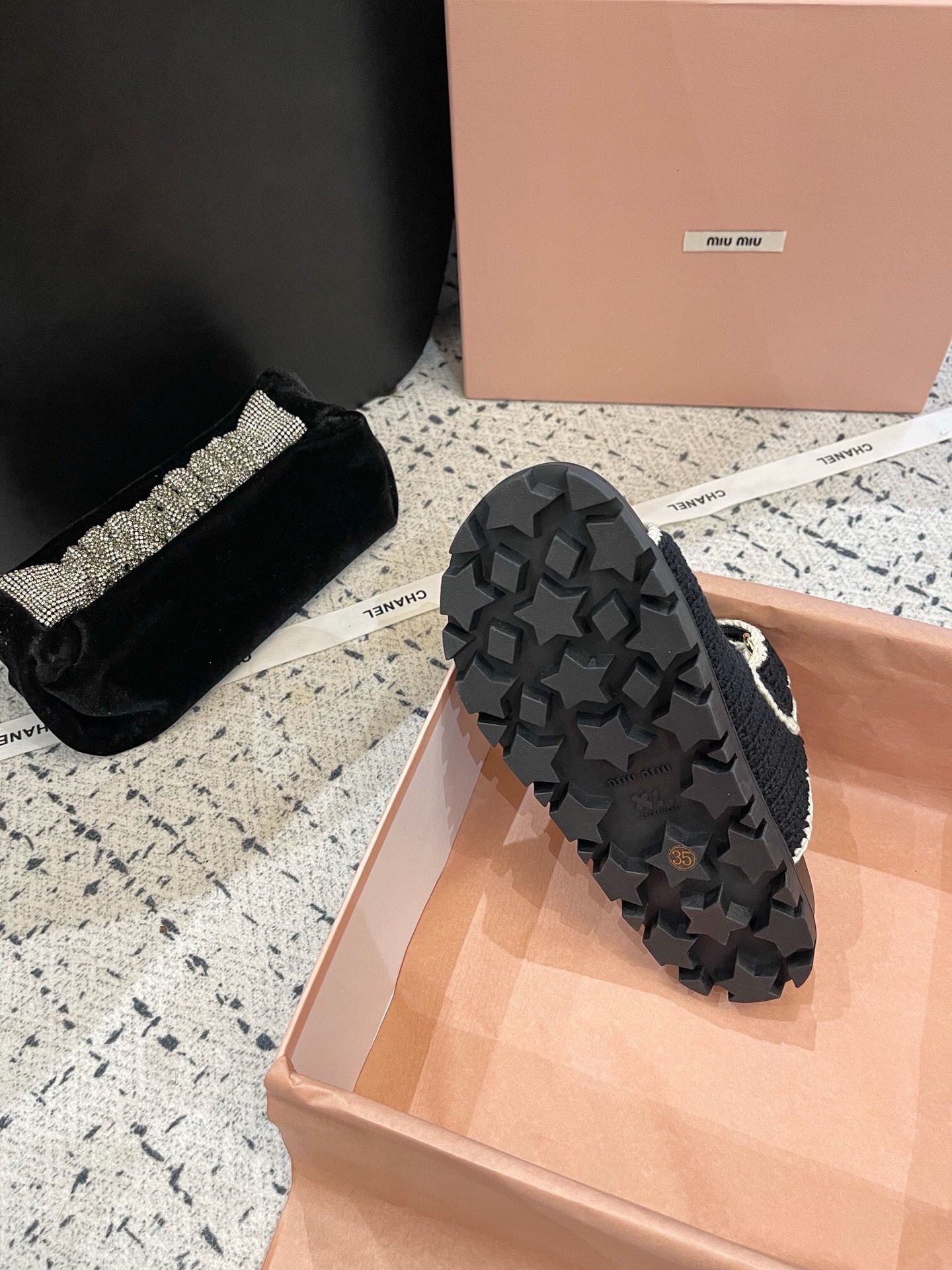 這款鞋子是AAAAA 1:1 質量(非常棒). 使用了和原版一模一樣的材料. 商標部分也保持了和繆繆/Miu Miu一樣. 圖片拍攝是實物鞋子拍攝, 您所收到的實物保證和我們圖片一模一樣.