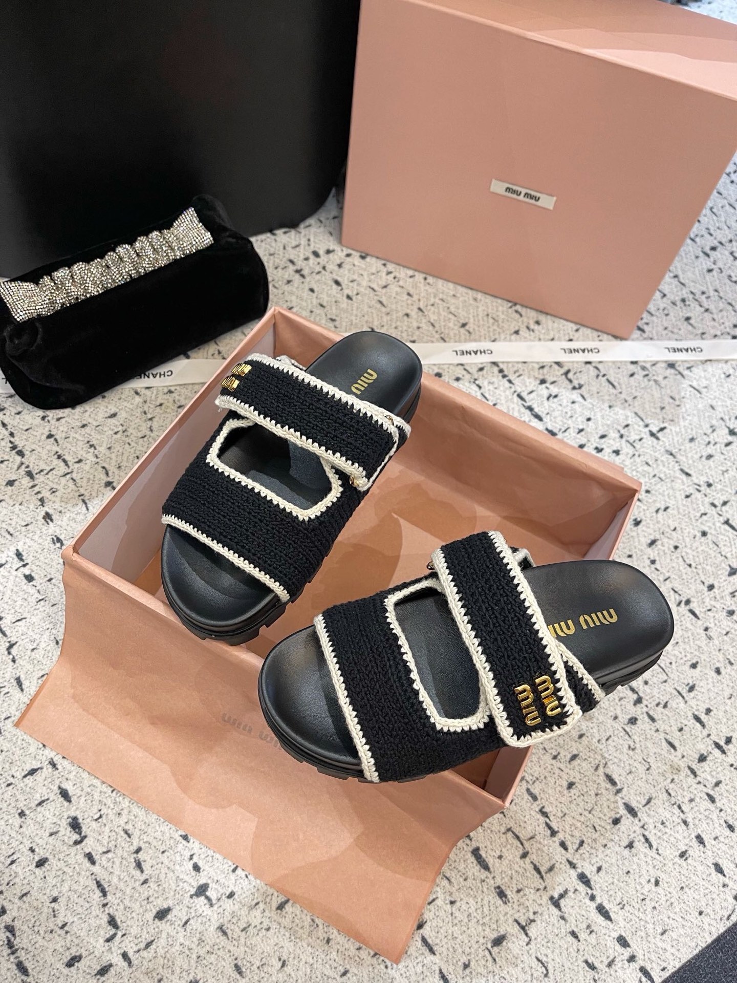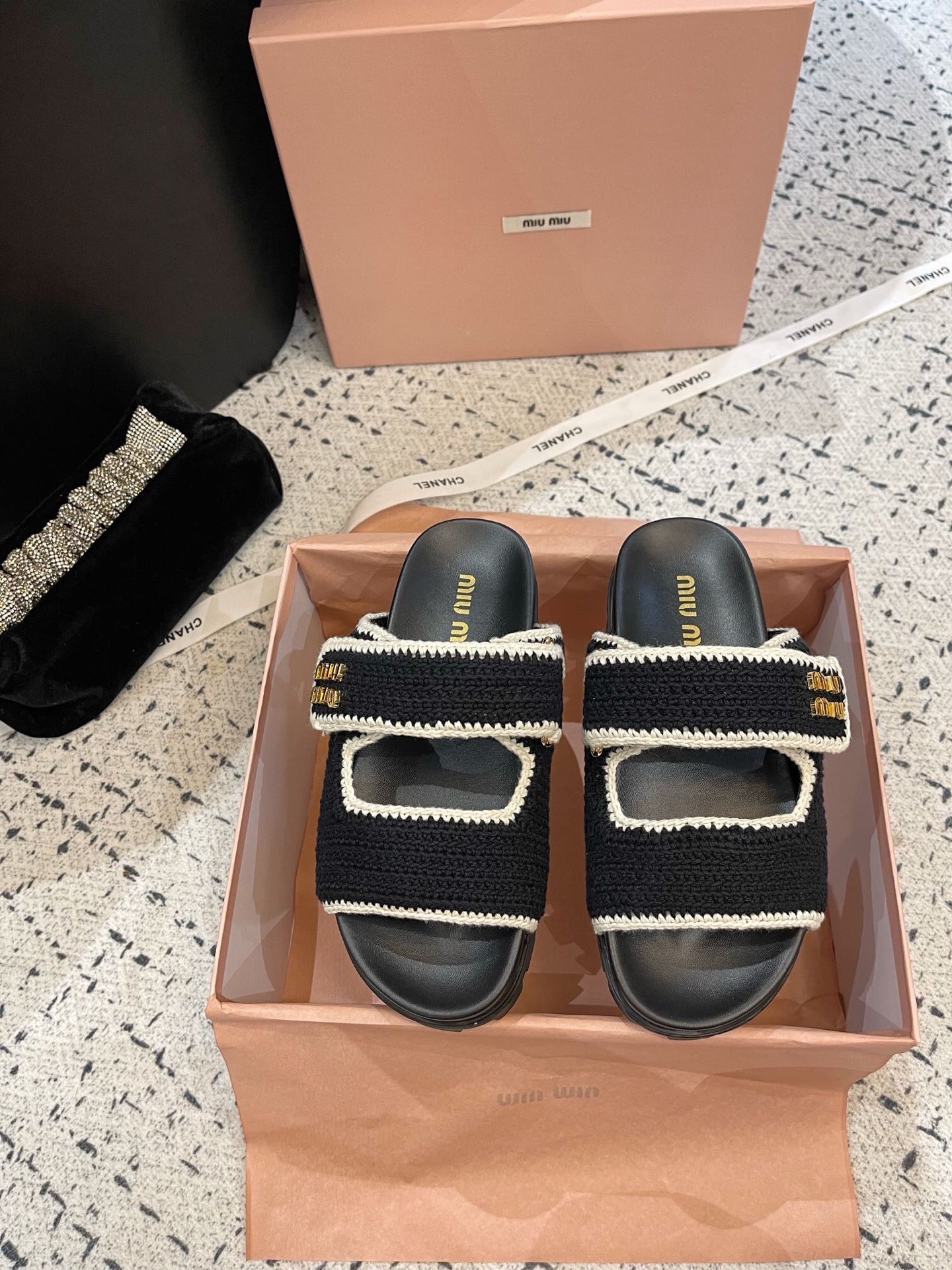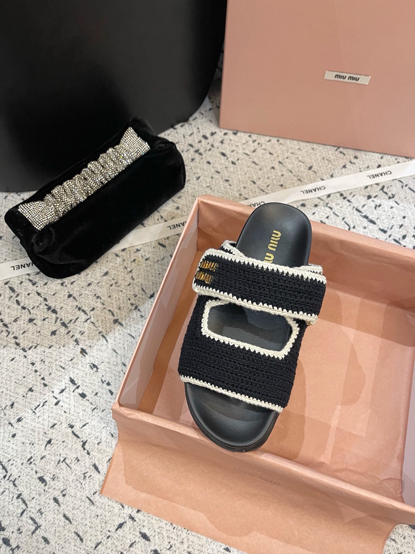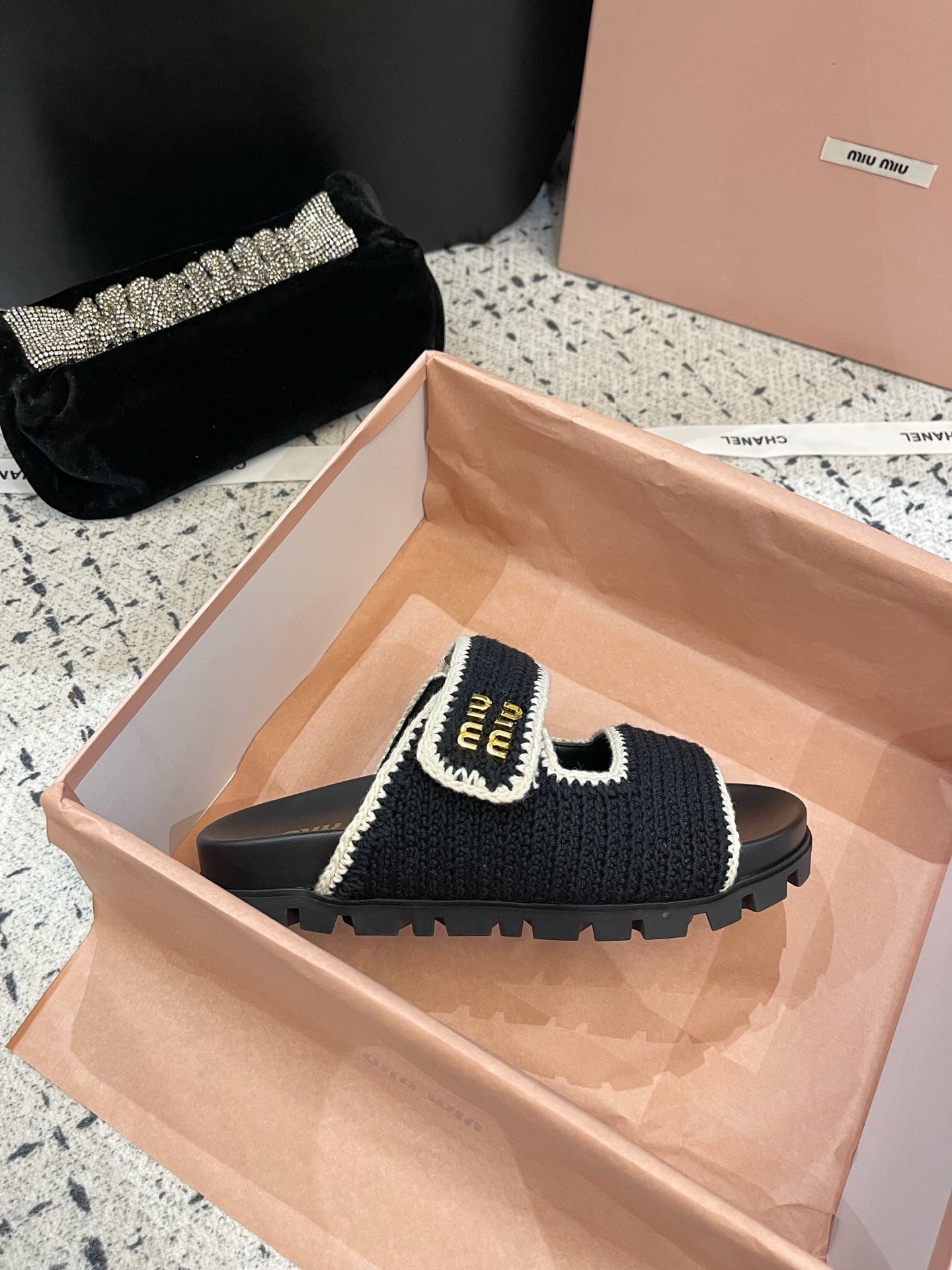 這款鞋子是AAAAA 1:1 質量(非常棒). 使用了和原版一模一樣的材料. 商標部分也保持了和繆繆/Miu Miu一樣. 圖片拍攝是實物鞋子拍攝, 您所收到的實物保證和我們圖片一模一樣.