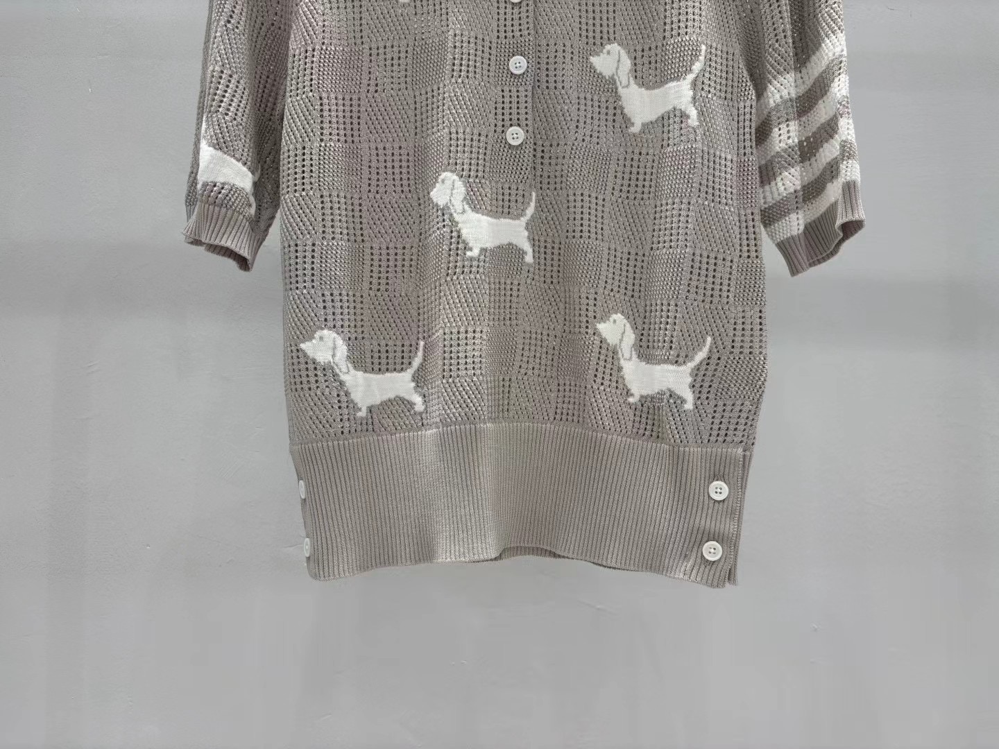 這款衣服是AAAAA 1:1 質量(非常棒). 使用了和原版一模一樣的材料. 商標部分也保持了和湯姆布朗/Thom Browne一樣. 圖片拍攝是實物衣服拍攝, 您所收到的實物保證和我們圖片一模一樣.