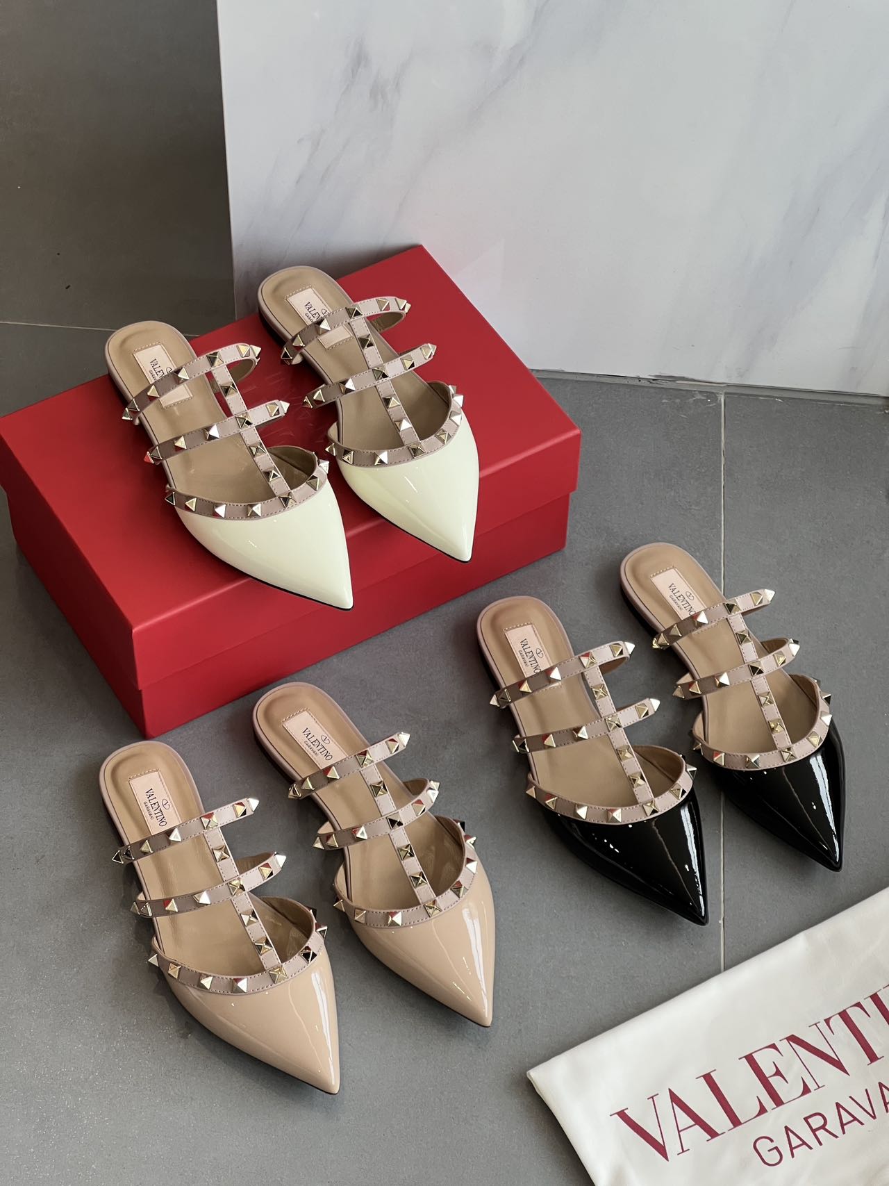這款鞋子是AAAAA 1:1 質量(非常棒). 使用了和原版一模一樣的材料. 商標部分也保持了和瓦倫蒂諾/Valentino一樣. 圖片拍攝是實物鞋子拍攝, 您所收到的實物保證和我們圖片一模一樣.