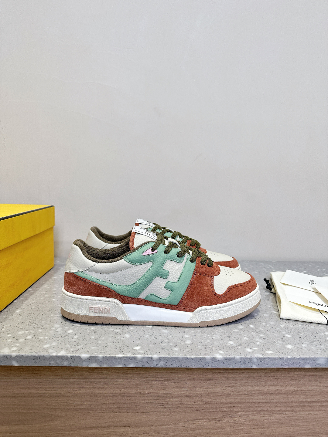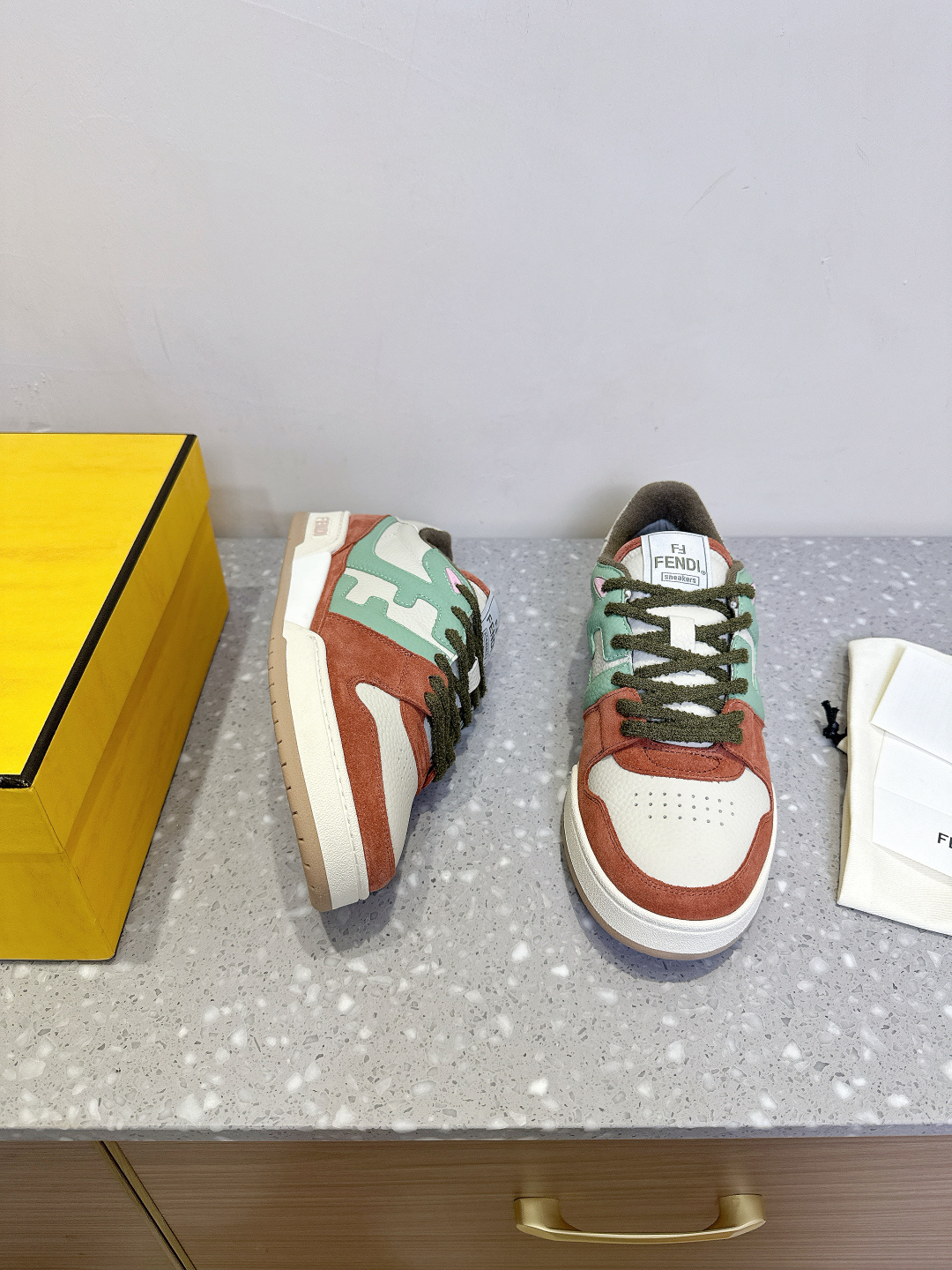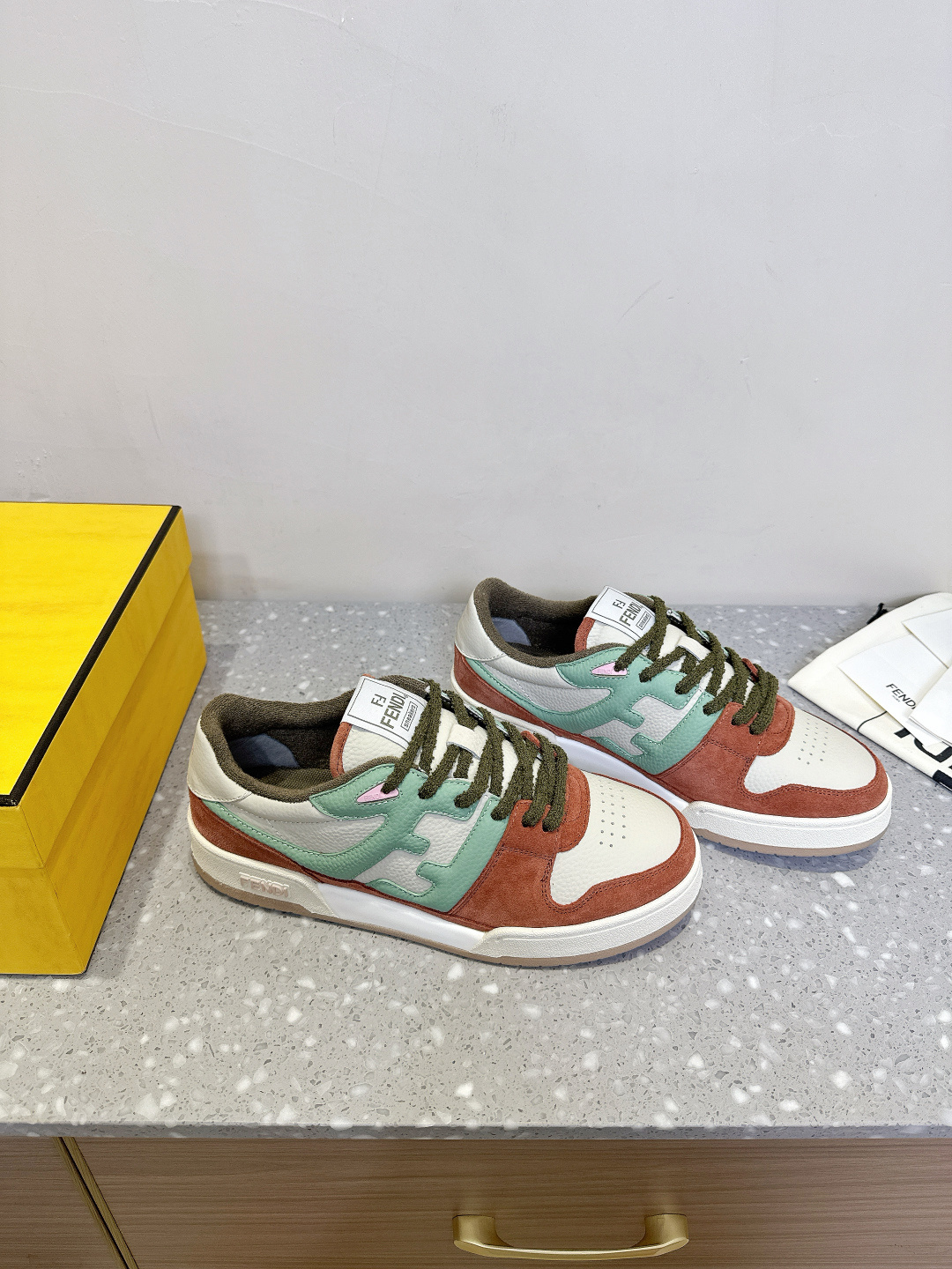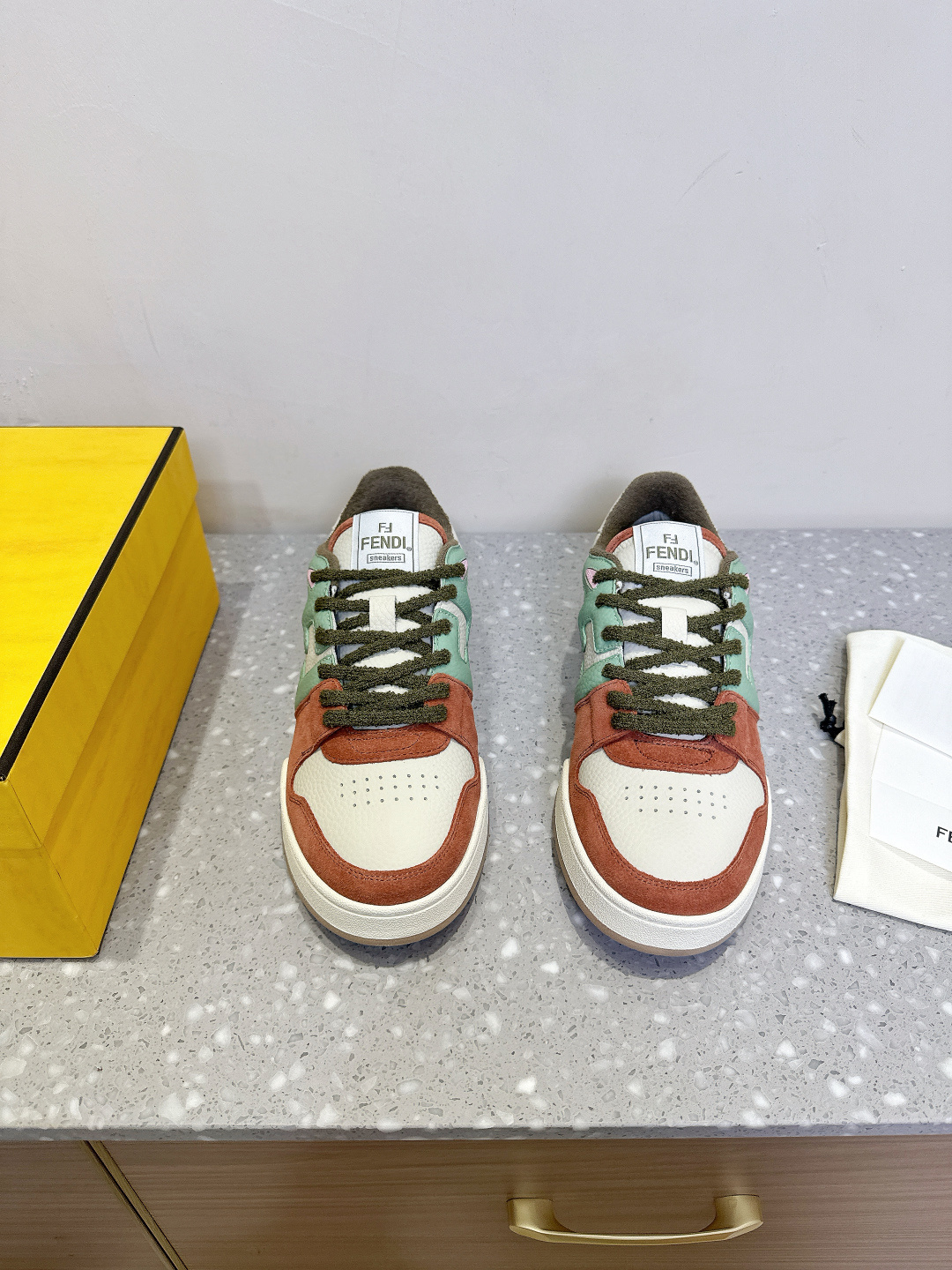這款鞋子是AAAAA 1:1 質量(非常棒). 使用了和原版一模一樣的材料. 商標部分也保持了和芬迪/Fendi一樣. 圖片拍攝是實物鞋子拍攝, 您所收到的實物保證和我們圖片一模一樣.