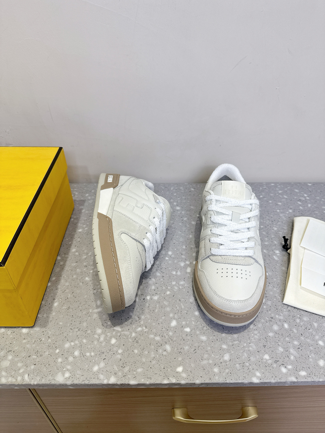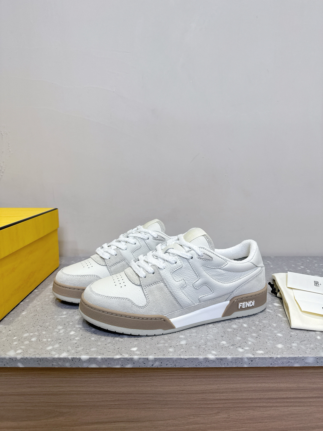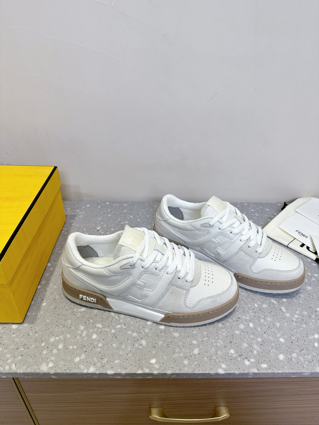 這款鞋子是AAAAA 1:1 質量(非常棒). 使用了和原版一模一樣的材料. 商標部分也保持了和芬迪/Fendi一樣. 圖片拍攝是實物鞋子拍攝, 您所收到的實物保證和我們圖片一模一樣.