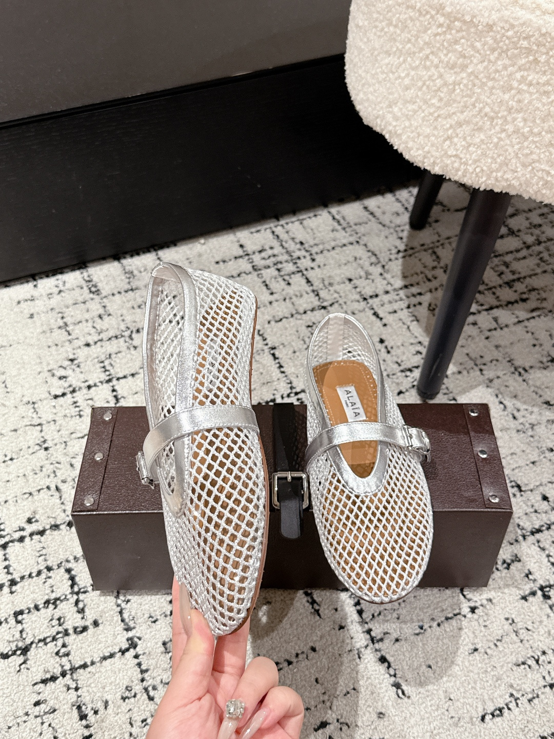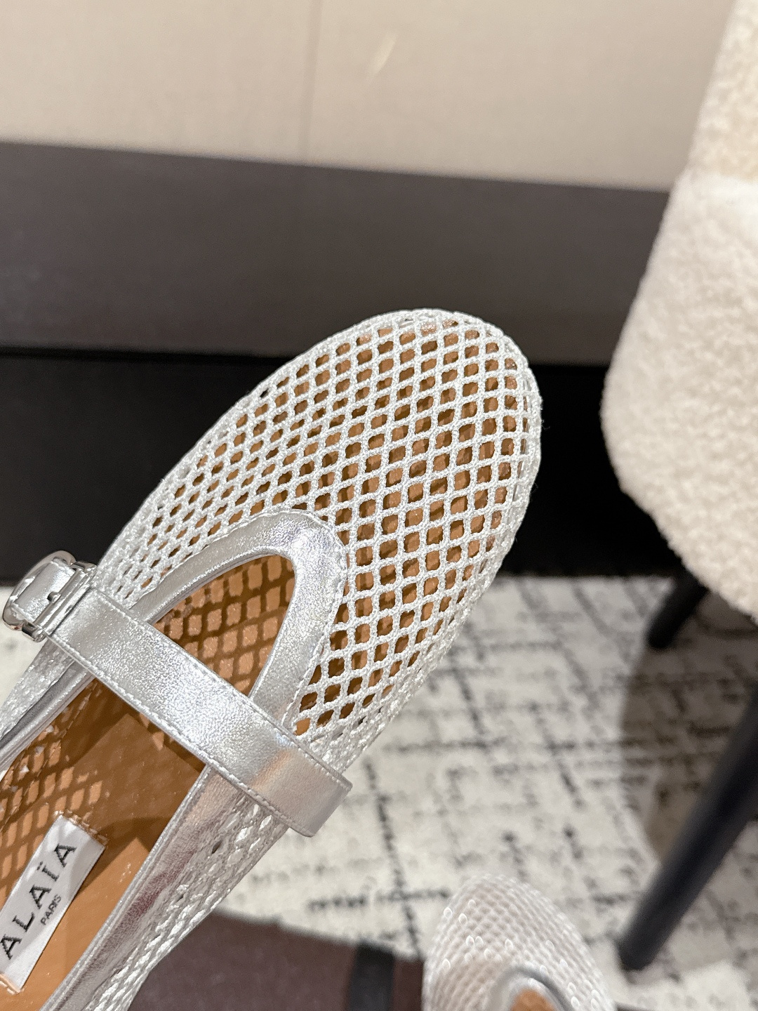 這款鞋子是AAAAA 1:1 質量(非常棒). 使用了和原版一模一樣的材料. 商標部分也保持了和Alaia一樣. 圖片拍攝是實物鞋子拍攝, 您所收到的實物保證和我們圖片一模一樣.