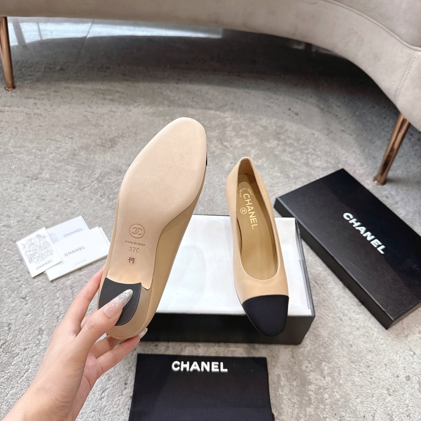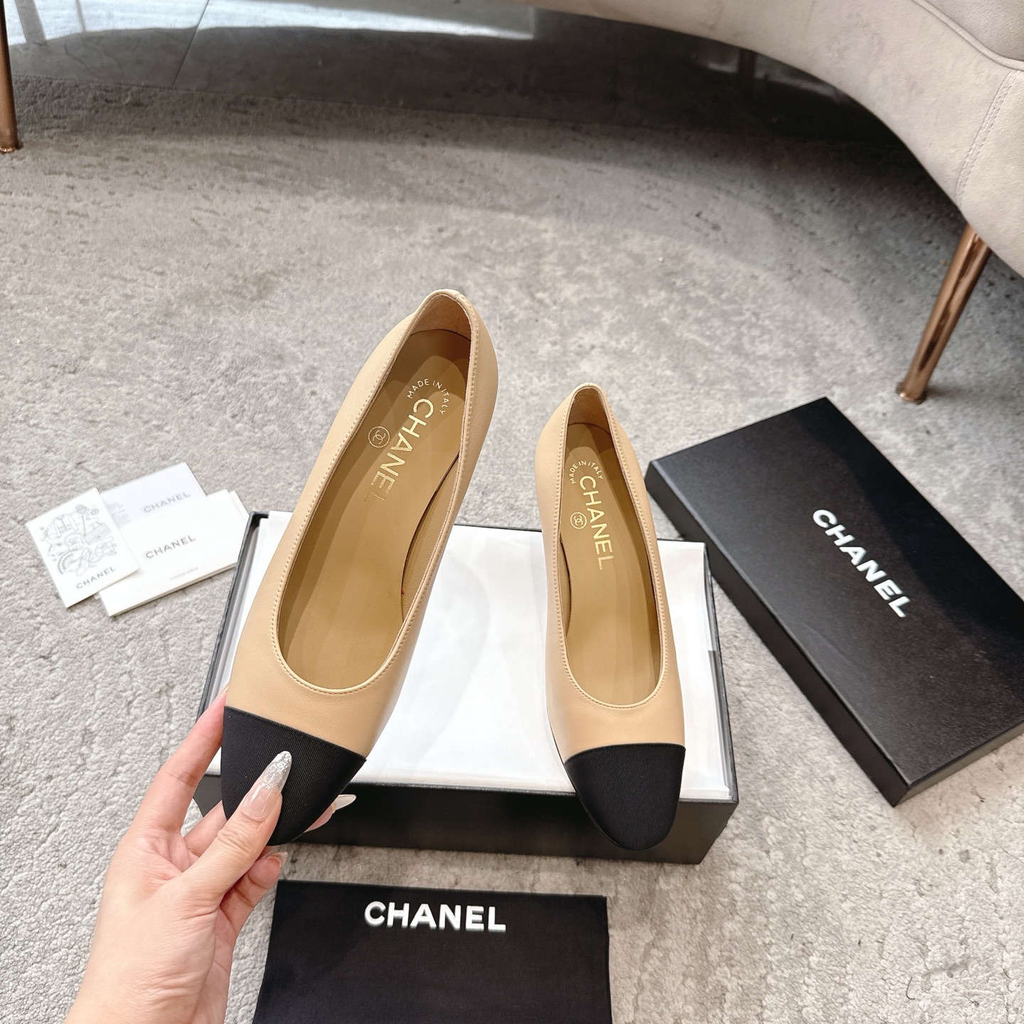 這款鞋子是AAAAA 1:1 質量(非常棒). 使用了和原版一模一樣的材料. 商標部分也保持了和香奈兒/Chanel一樣. 圖片拍攝是實物鞋子拍攝, 您所收到的實物保證和我們圖片一模一樣.