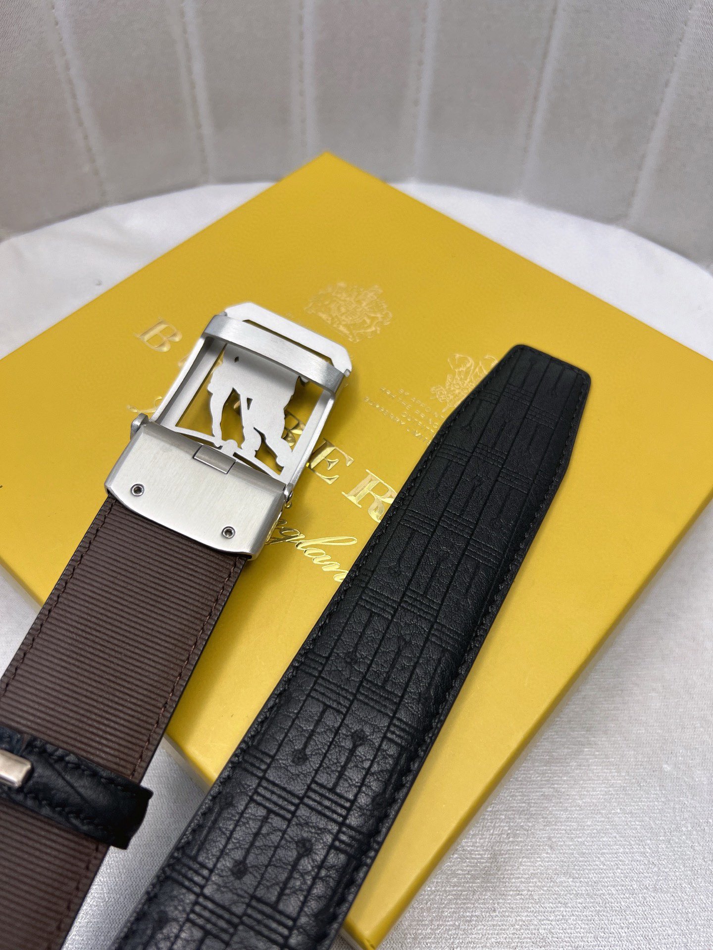 這款皮帶是AAAAA 1:1 質量(非常棒). 使用了和原版一模一樣的材料. 商標部分也保持了和巴寶莉/Burberry一樣. 圖片拍攝是實物皮帶拍攝, 您所收到的實物保證和我們圖片一模一樣.