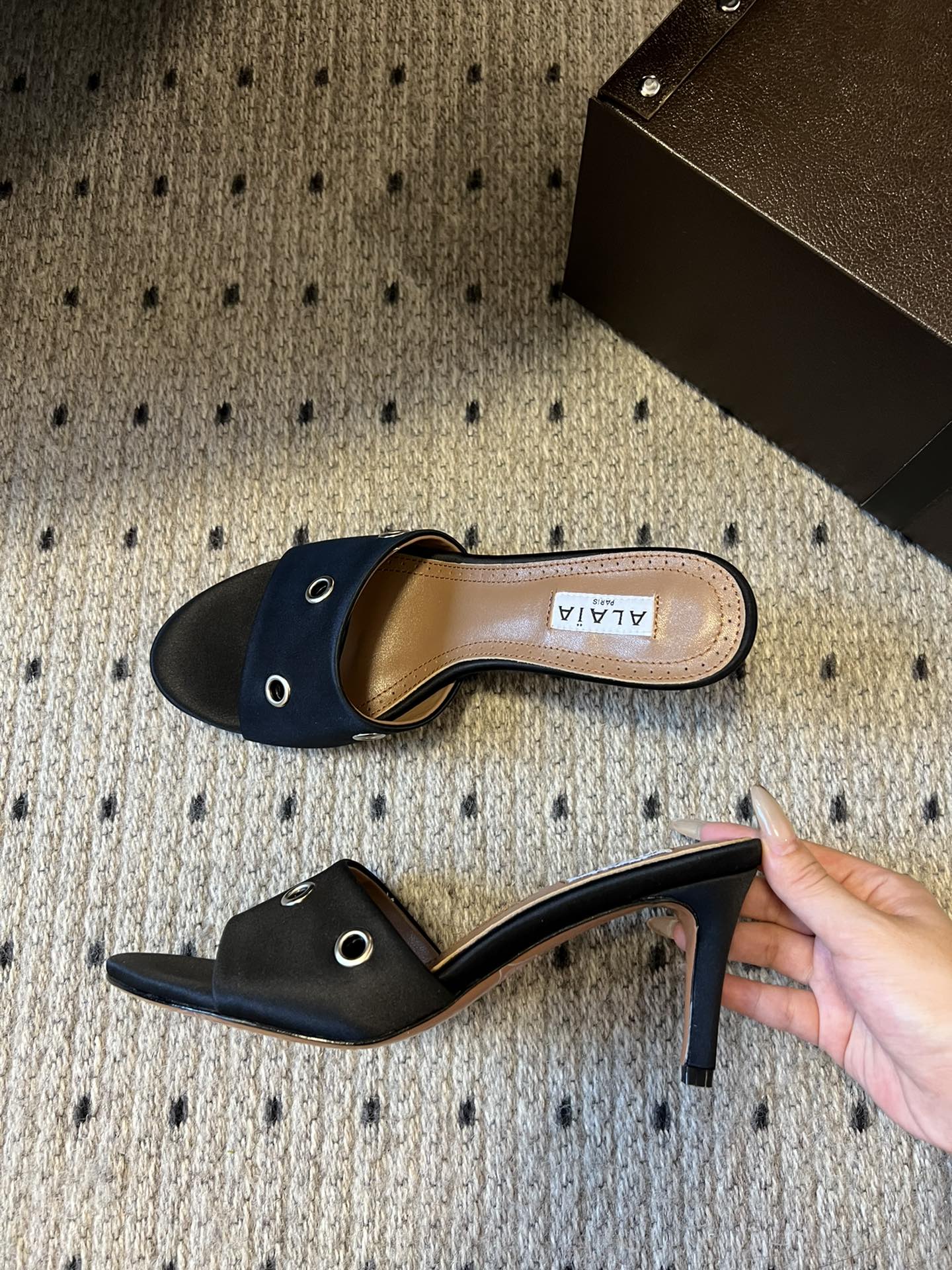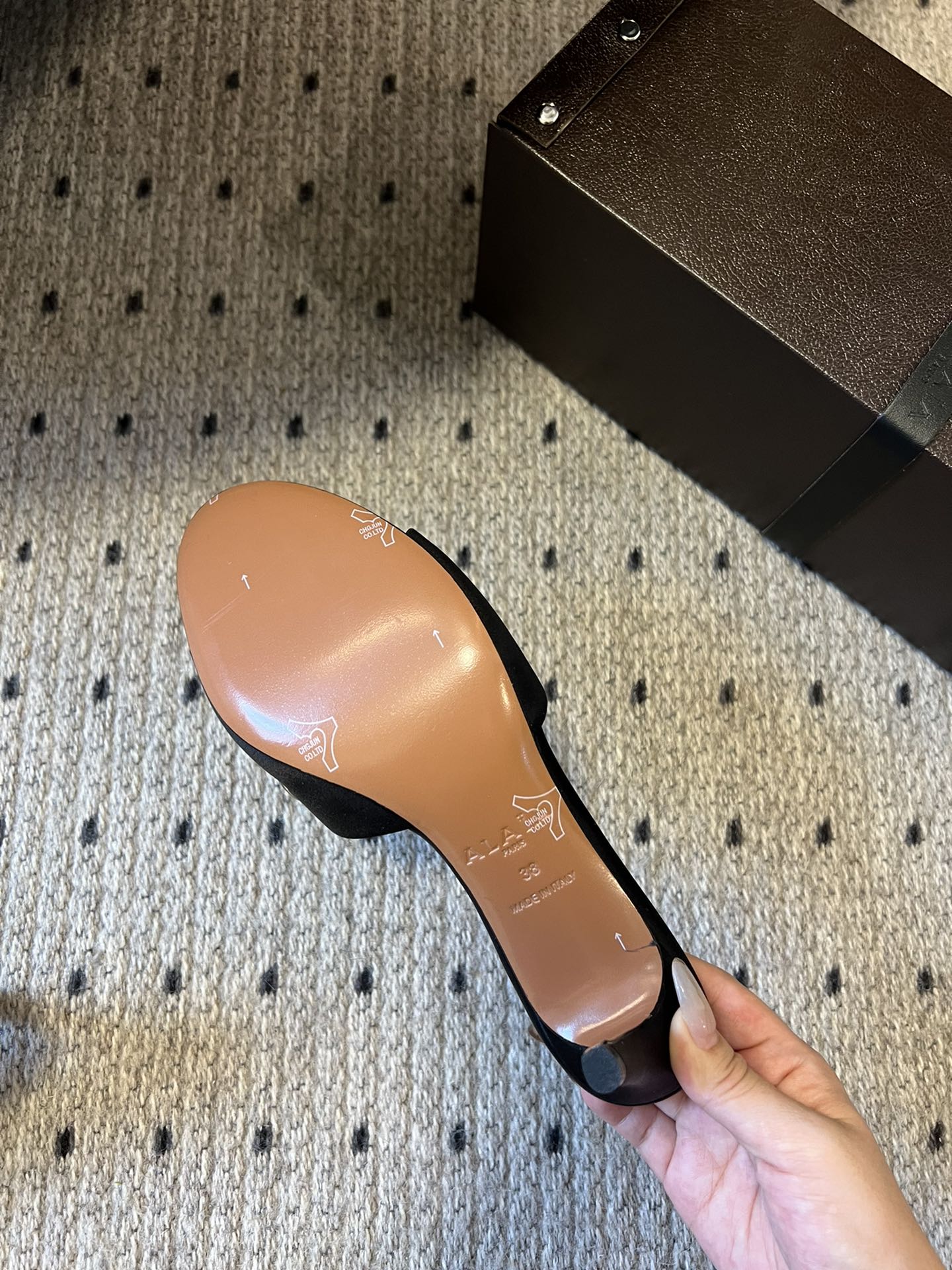 這款鞋子是AAAAA 1:1 質量(非常棒). 使用了和原版一模一樣的材料. 商標部分也保持了和Alaia一樣. 圖片拍攝是實物鞋子拍攝, 您所收到的實物保證和我們圖片一模一樣.