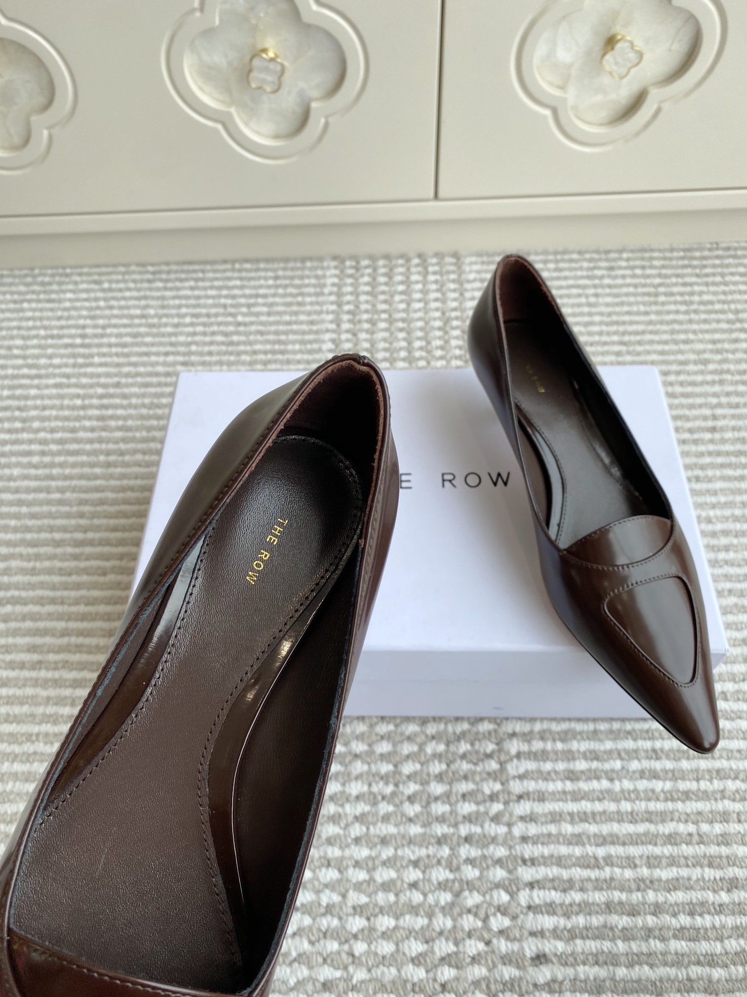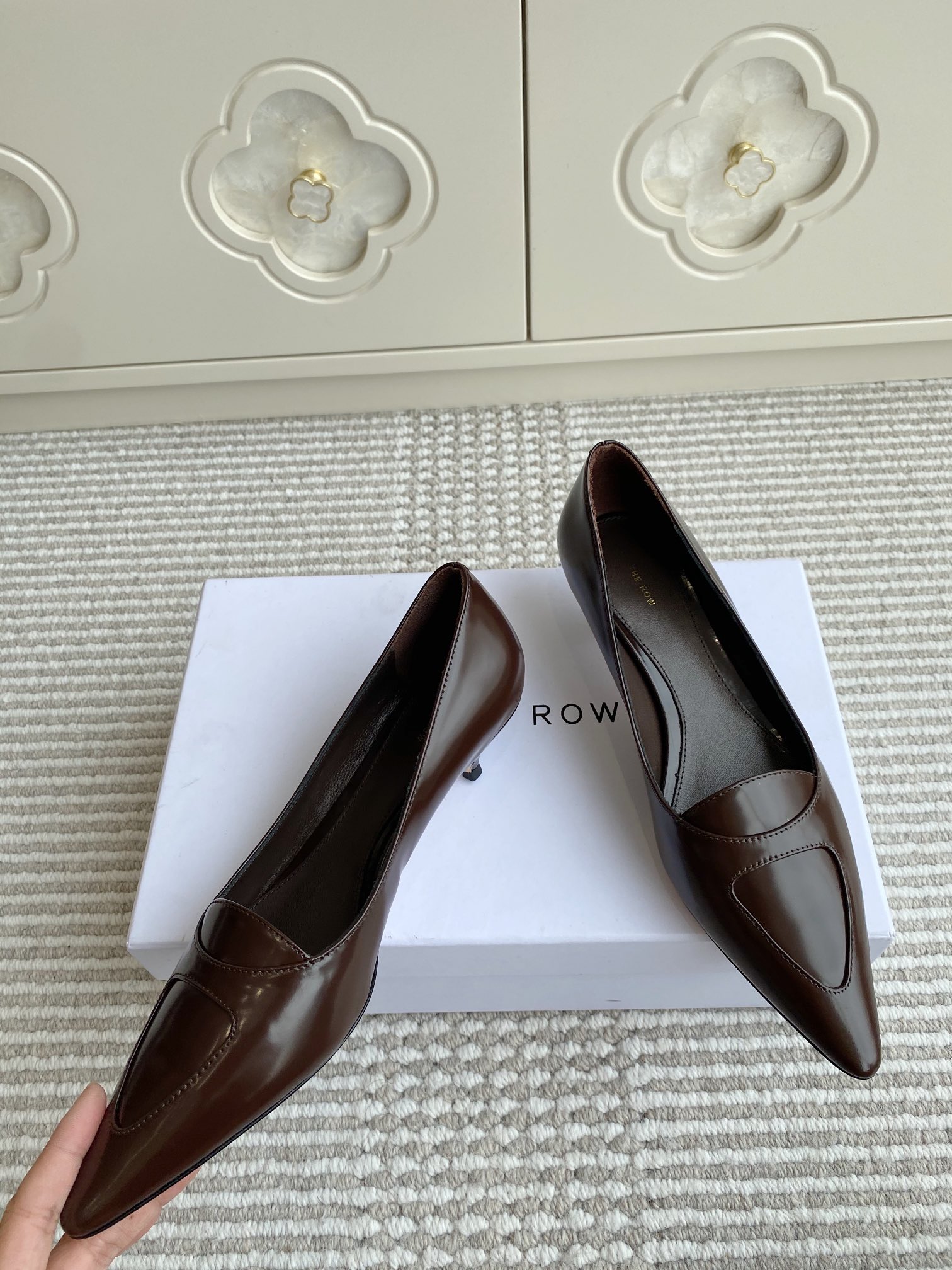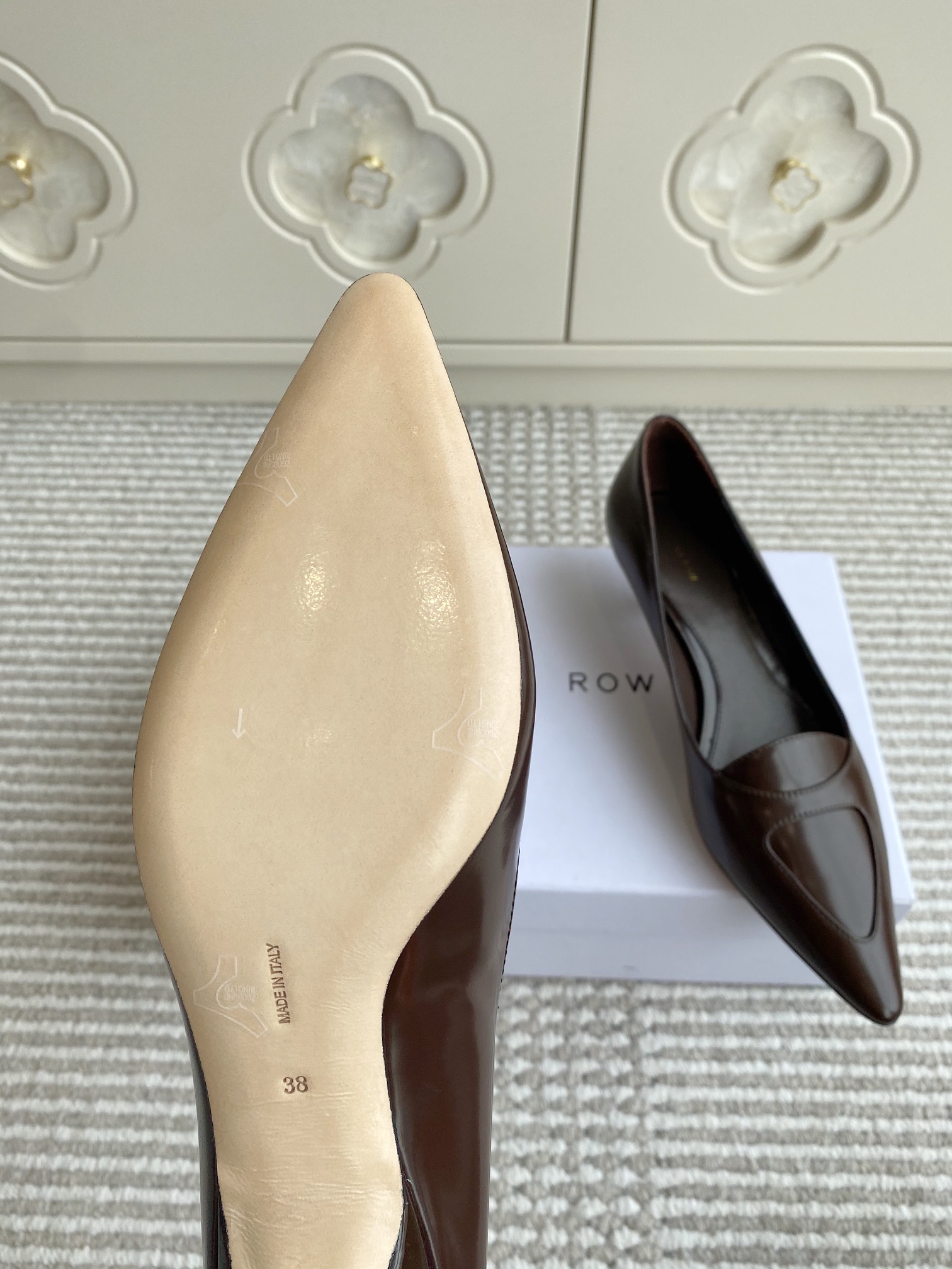 這款鞋子是AAAAA 1:1 質量(非常棒). 使用了和原版一模一樣的材料. 商標部分也保持了和The Row一樣. 圖片拍攝是實物鞋子拍攝, 您所收到的實物保證和我們圖片一模一樣.