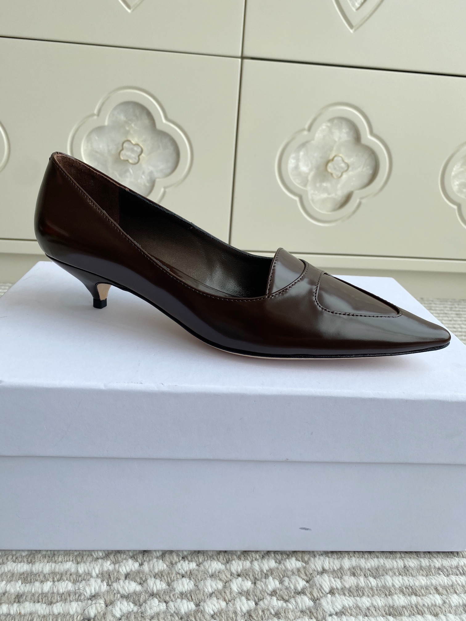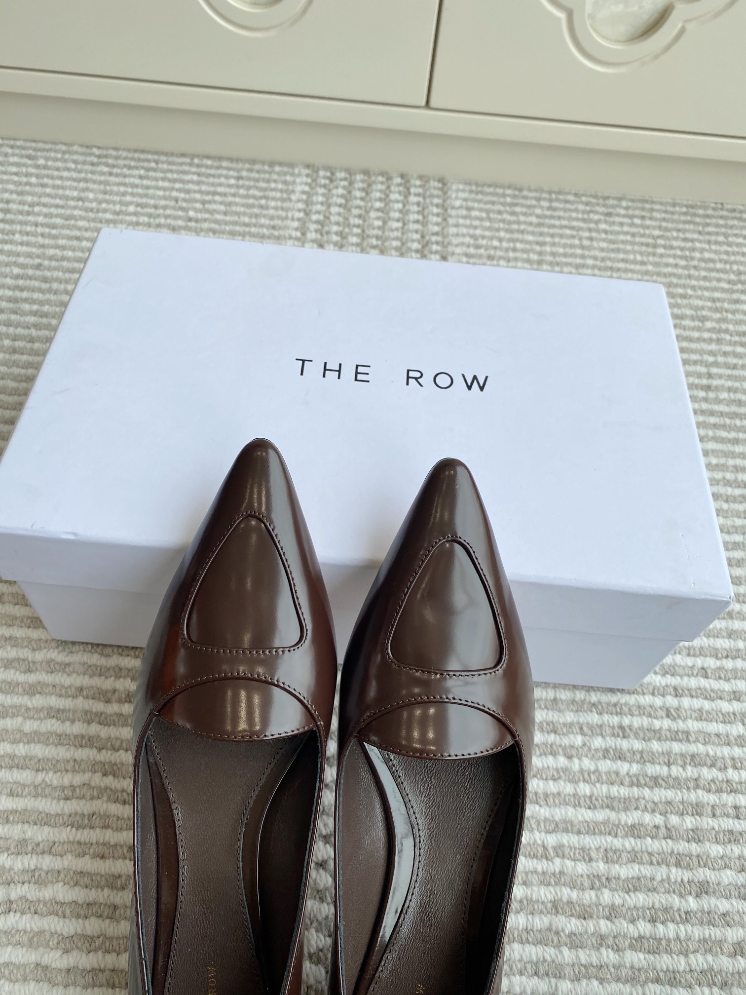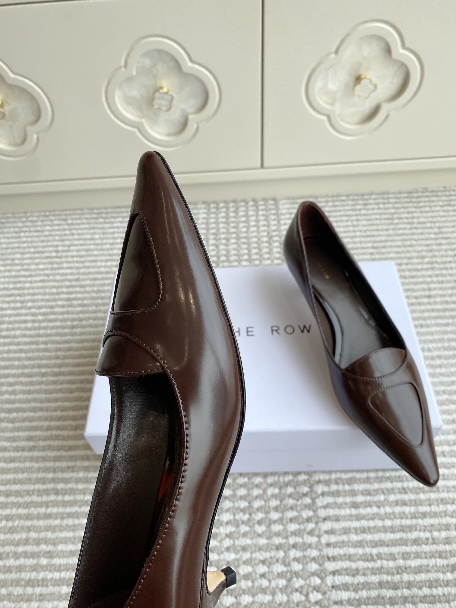 這款鞋子是AAAAA 1:1 質量(非常棒). 使用了和原版一模一樣的材料. 商標部分也保持了和The Row一樣. 圖片拍攝是實物鞋子拍攝, 您所收到的實物保證和我們圖片一模一樣.