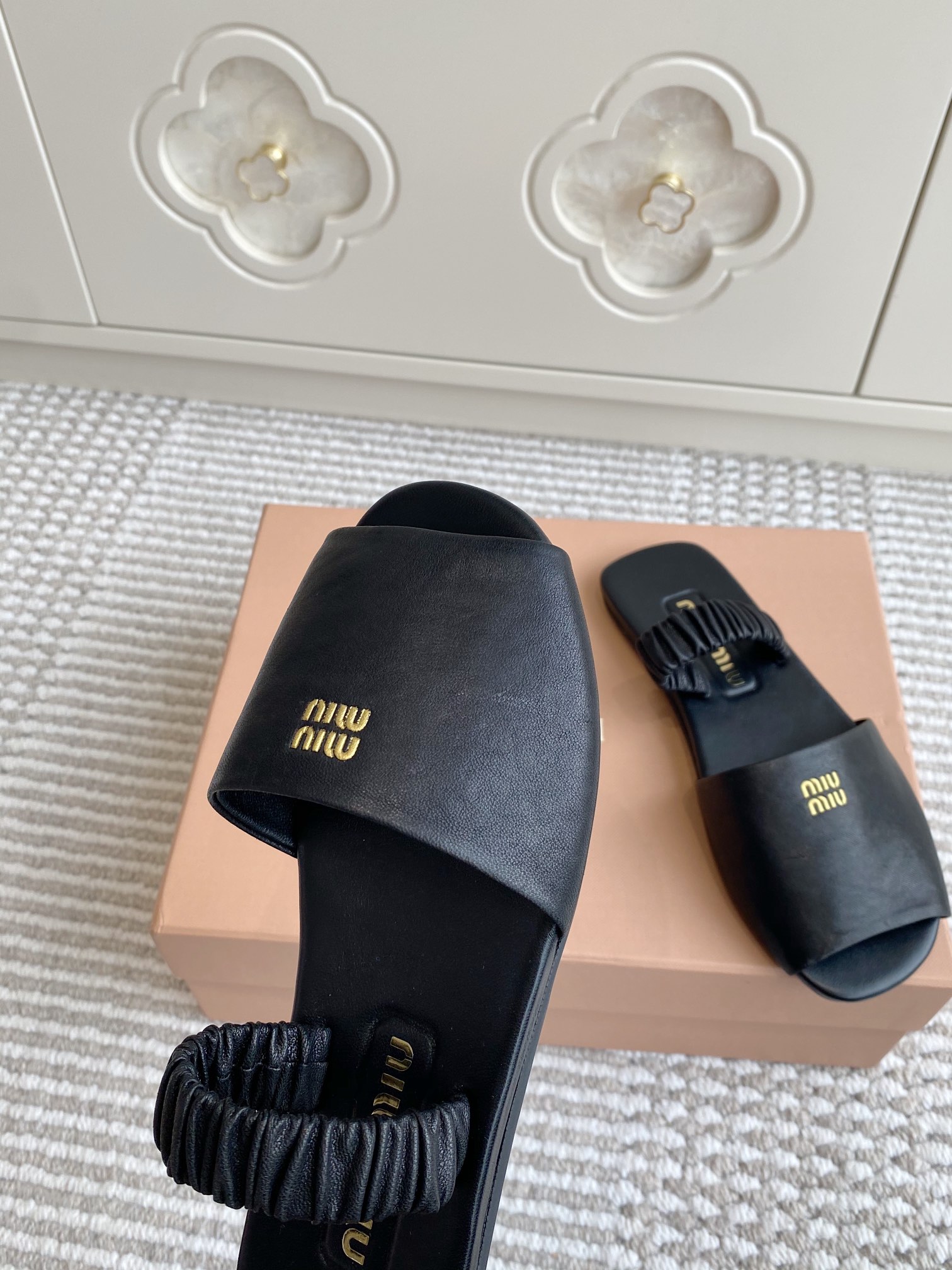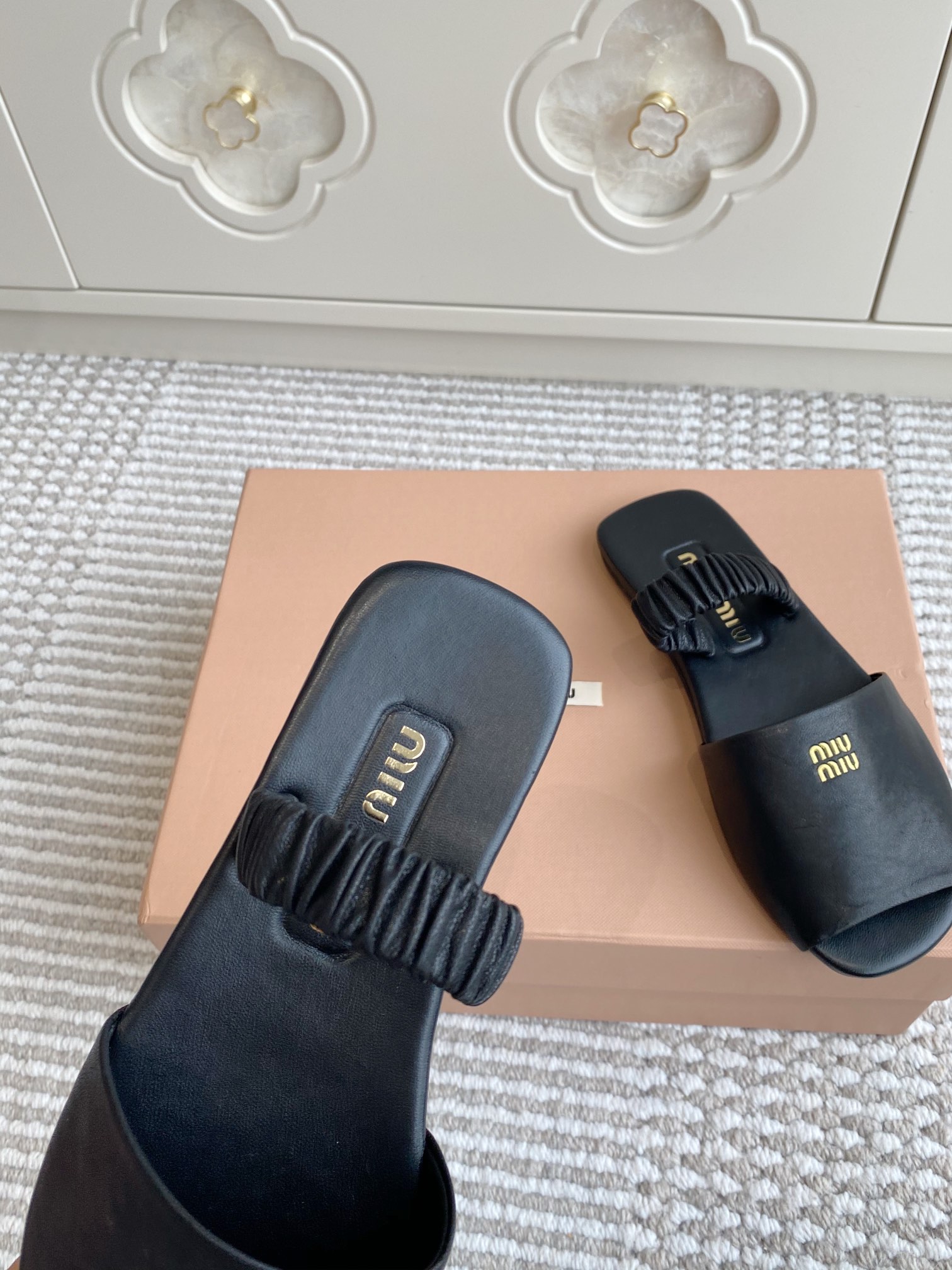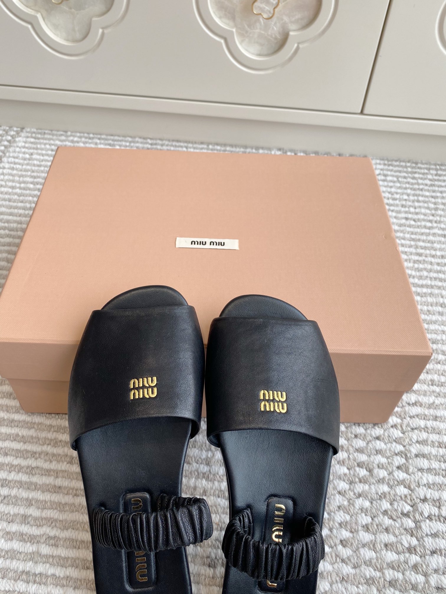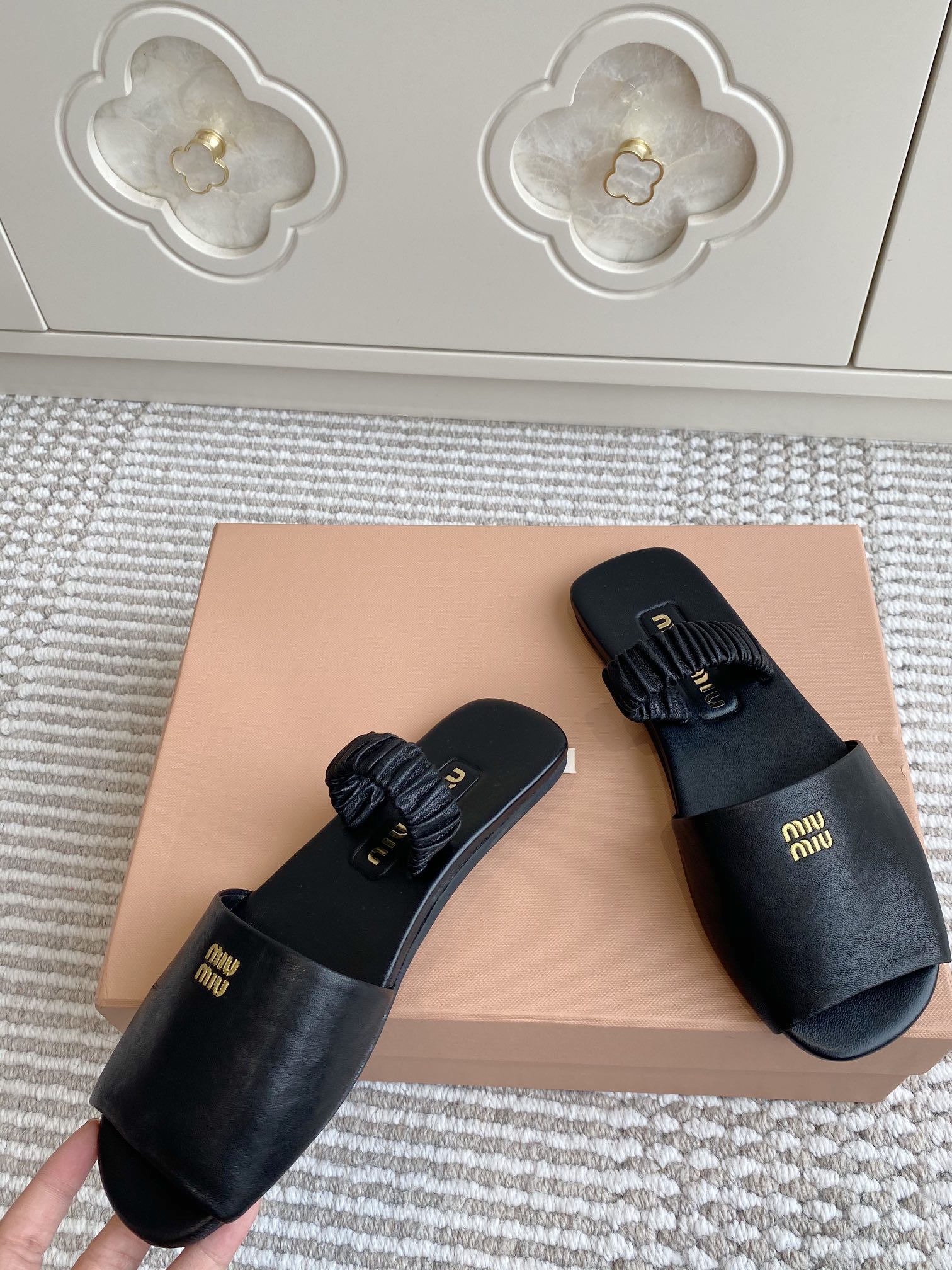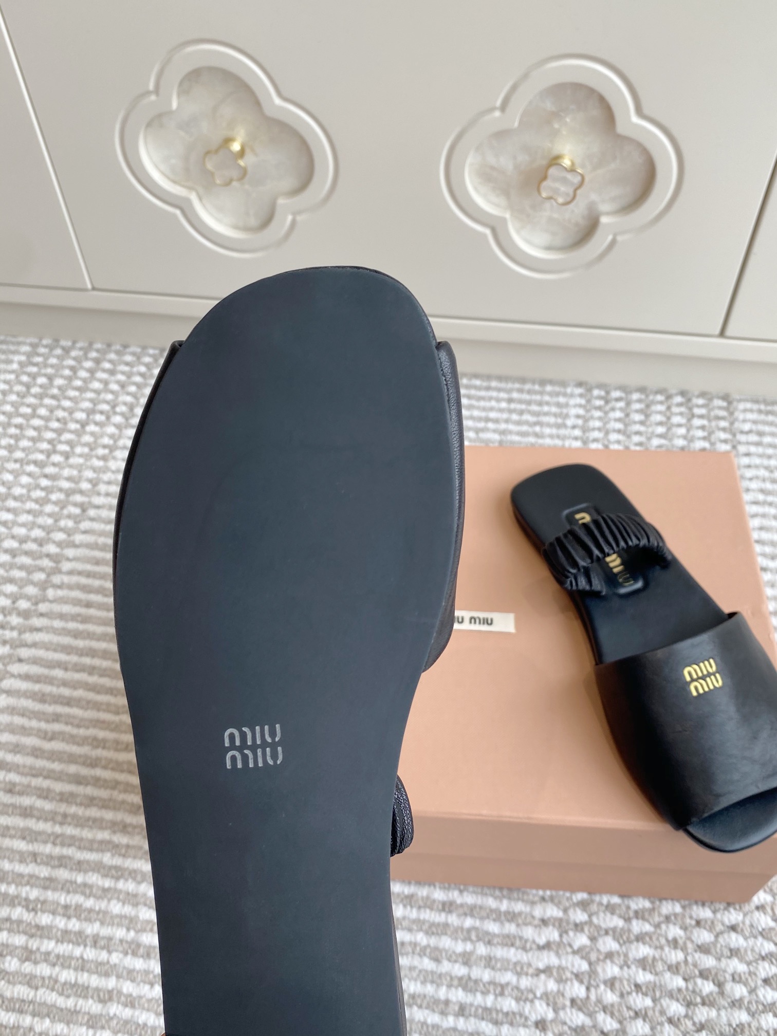 這款鞋子是AAAAA 1:1 質量(非常棒). 使用了和原版一模一樣的材料. 商標部分也保持了和繆繆/Miu Miu一樣. 圖片拍攝是實物鞋子拍攝, 您所收到的實物保證和我們圖片一模一樣.