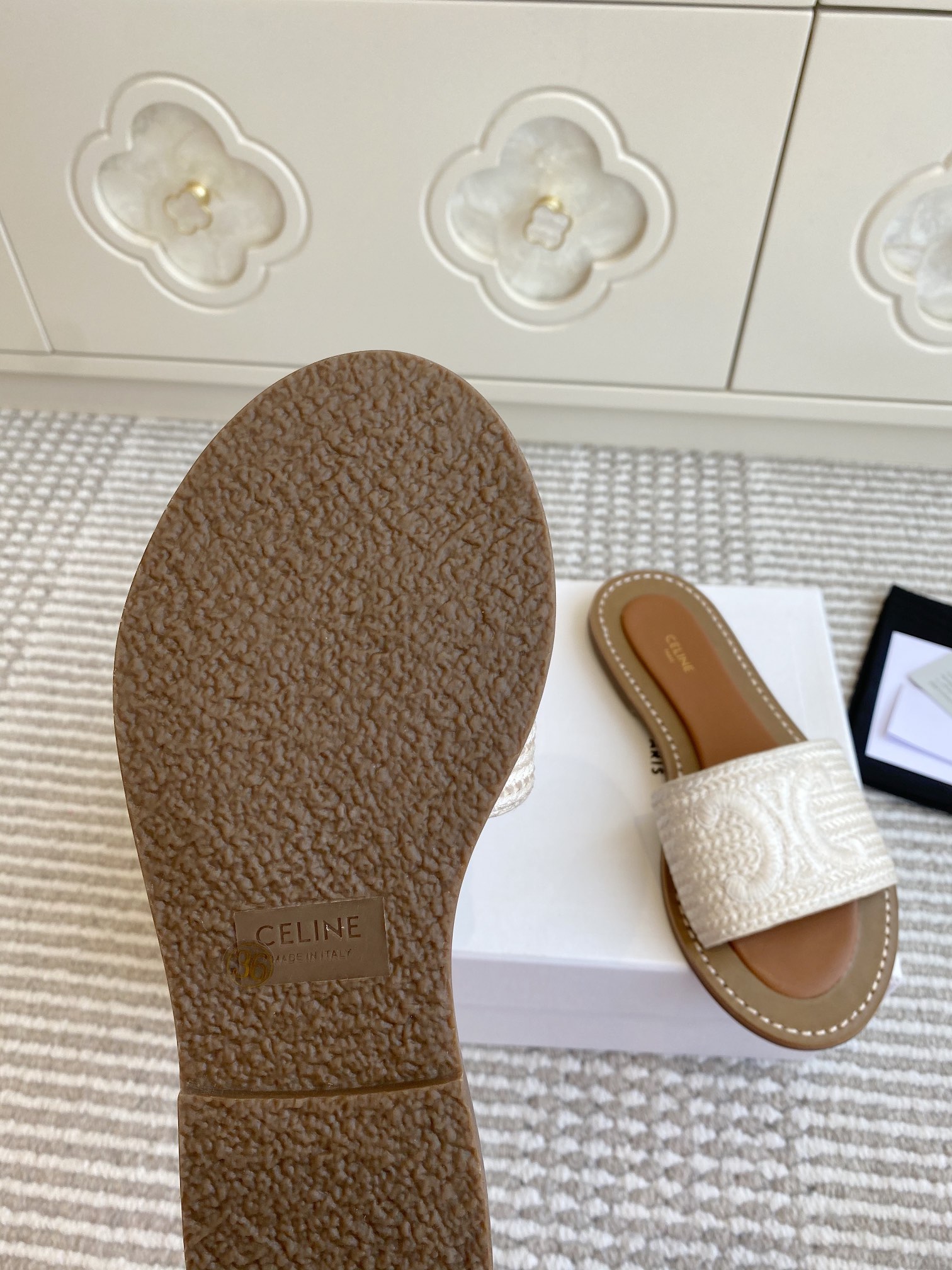 這款鞋子是AAAAA 1:1 質量(非常棒). 使用了和原版一模一樣的材料. 商標部分也保持了和思琳/赛琳/Celine一樣. 圖片拍攝是實物鞋子拍攝, 您所收到的實物保證和我們圖片一模一樣.