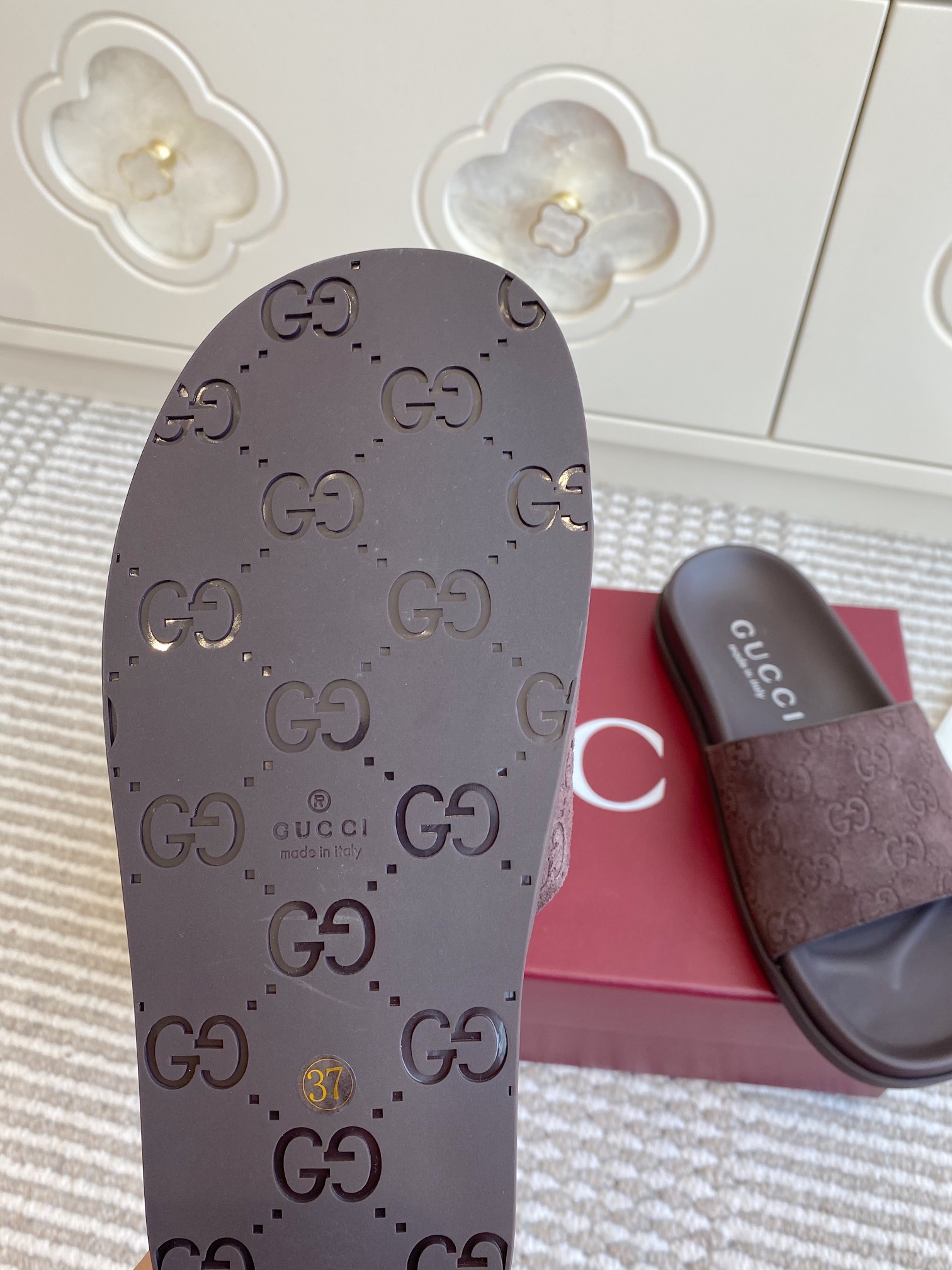 這款鞋子是AAAAA 1:1 質量(非常棒). 使用了和原版一模一樣的材料. 商標部分也保持了和古奇/Gucci一樣. 圖片拍攝是實物鞋子拍攝, 您所收到的實物保證和我們圖片一模一樣.