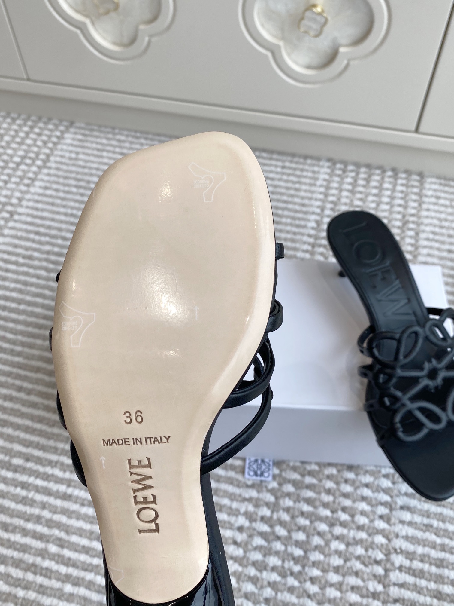 這款鞋子是AAAAA 1:1 質量(非常棒). 使用了和原版一模一樣的材料. 商標部分也保持了和Loewe一樣. 圖片拍攝是實物鞋子拍攝, 您所收到的實物保證和我們圖片一模一樣.