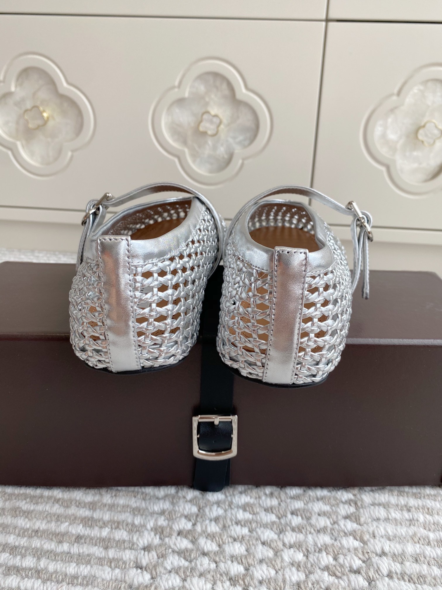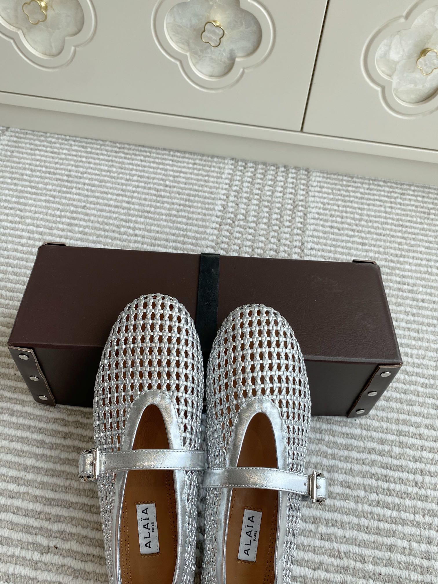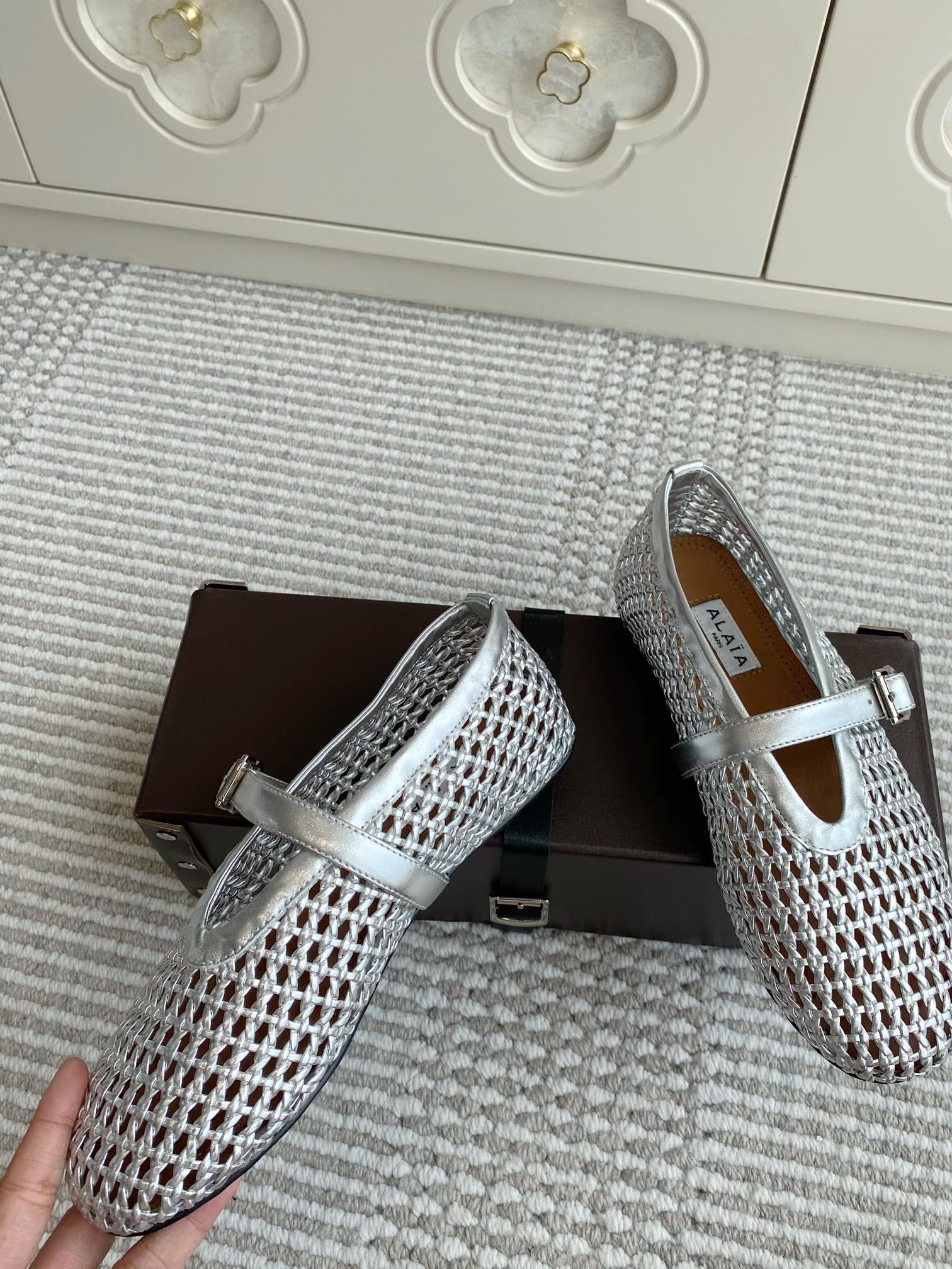 這款鞋子是AAAAA 1:1 質量(非常棒). 使用了和原版一模一樣的材料. 商標部分也保持了和Alaia一樣. 圖片拍攝是實物鞋子拍攝, 您所收到的實物保證和我們圖片一模一樣.