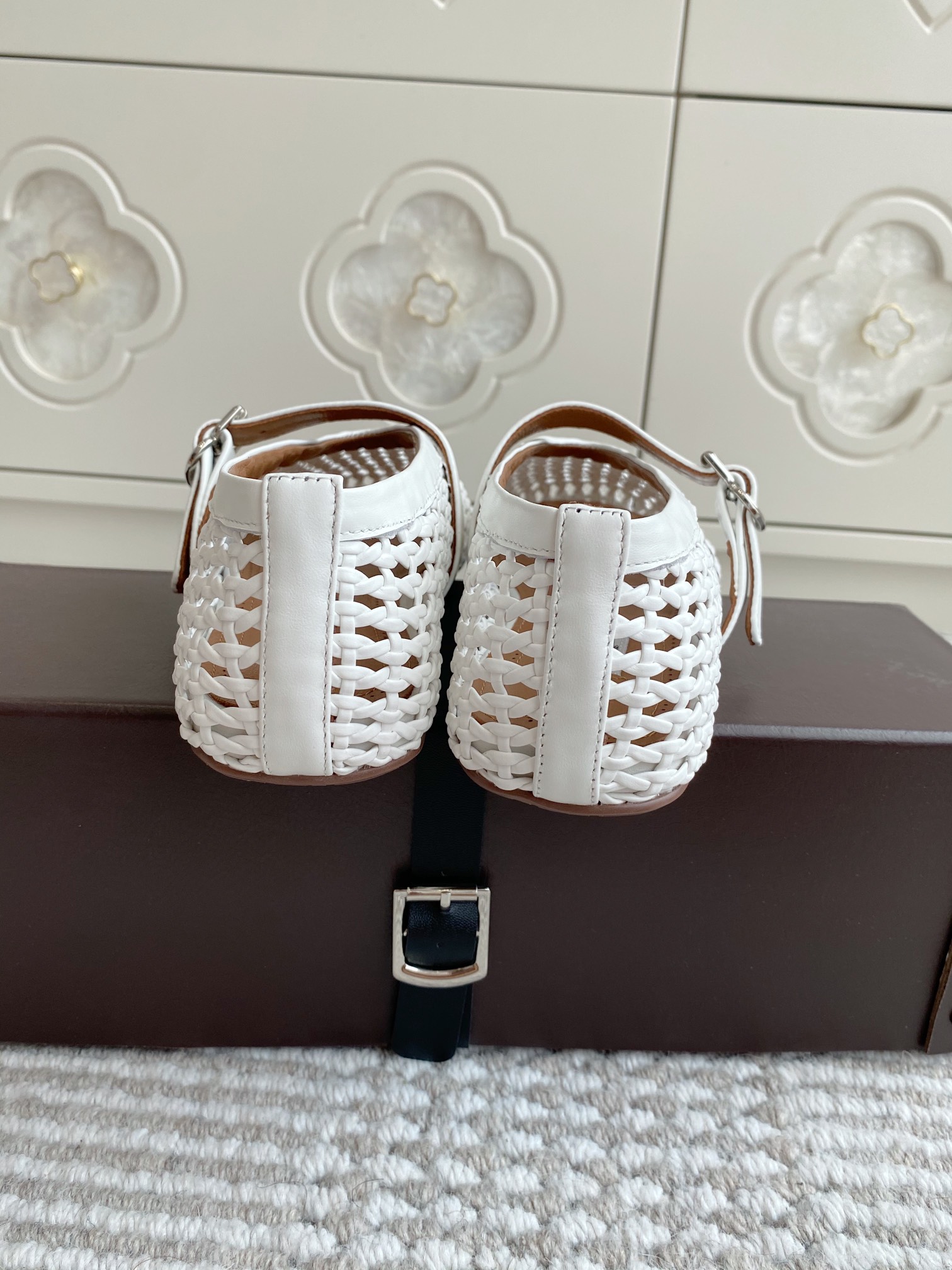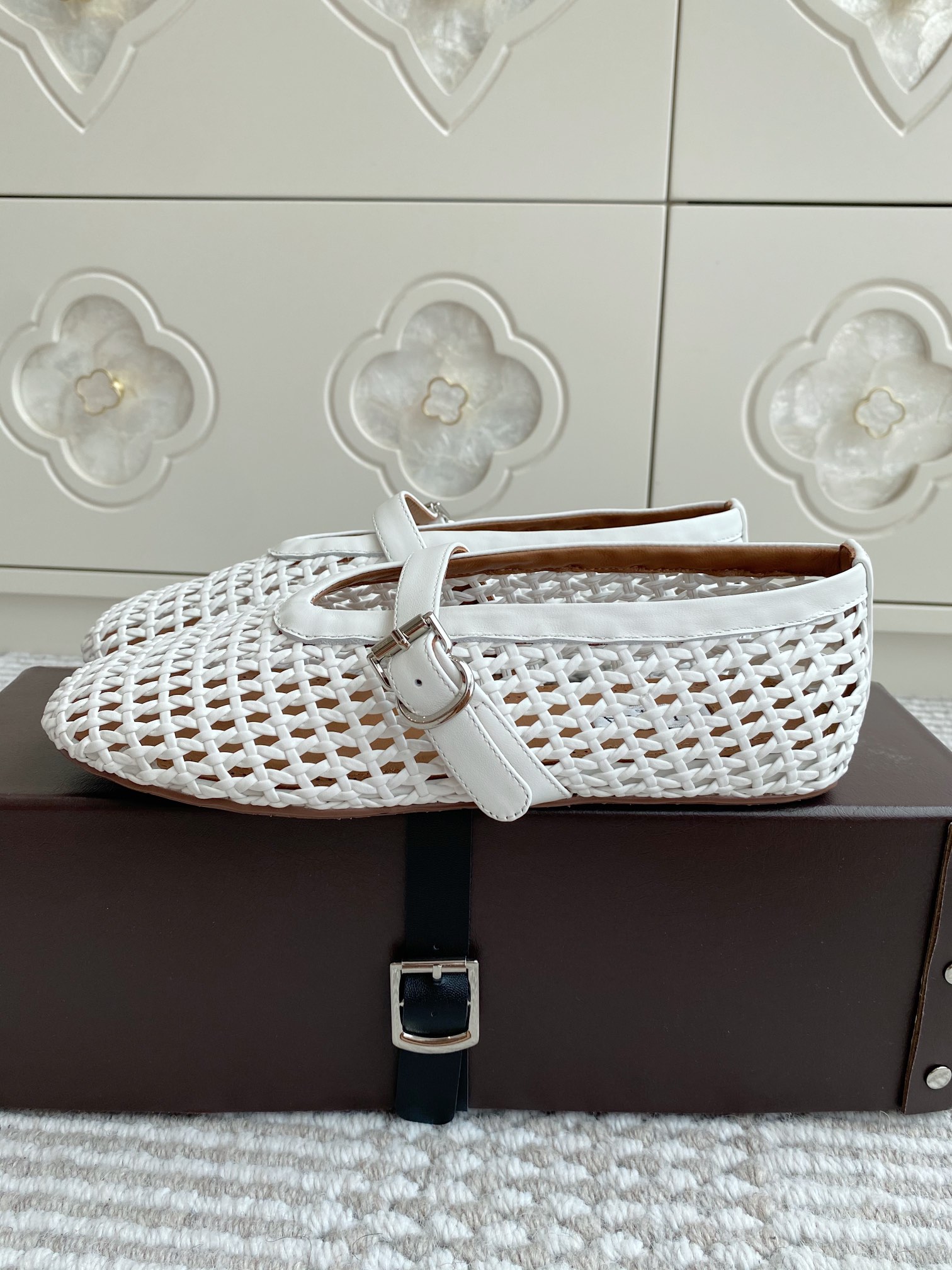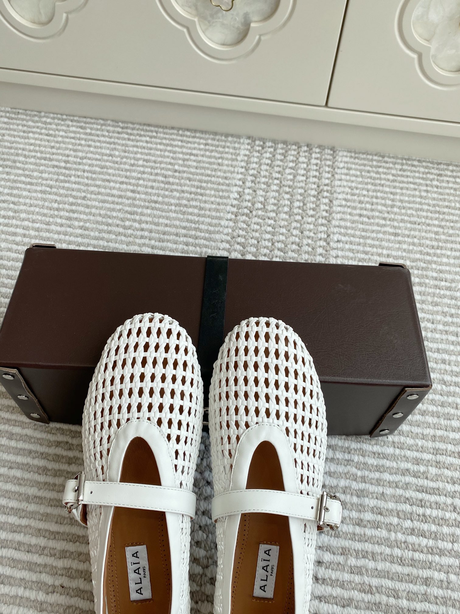 這款鞋子是AAAAA 1:1 質量(非常棒). 使用了和原版一模一樣的材料. 商標部分也保持了和Alaia一樣. 圖片拍攝是實物鞋子拍攝, 您所收到的實物保證和我們圖片一模一樣.