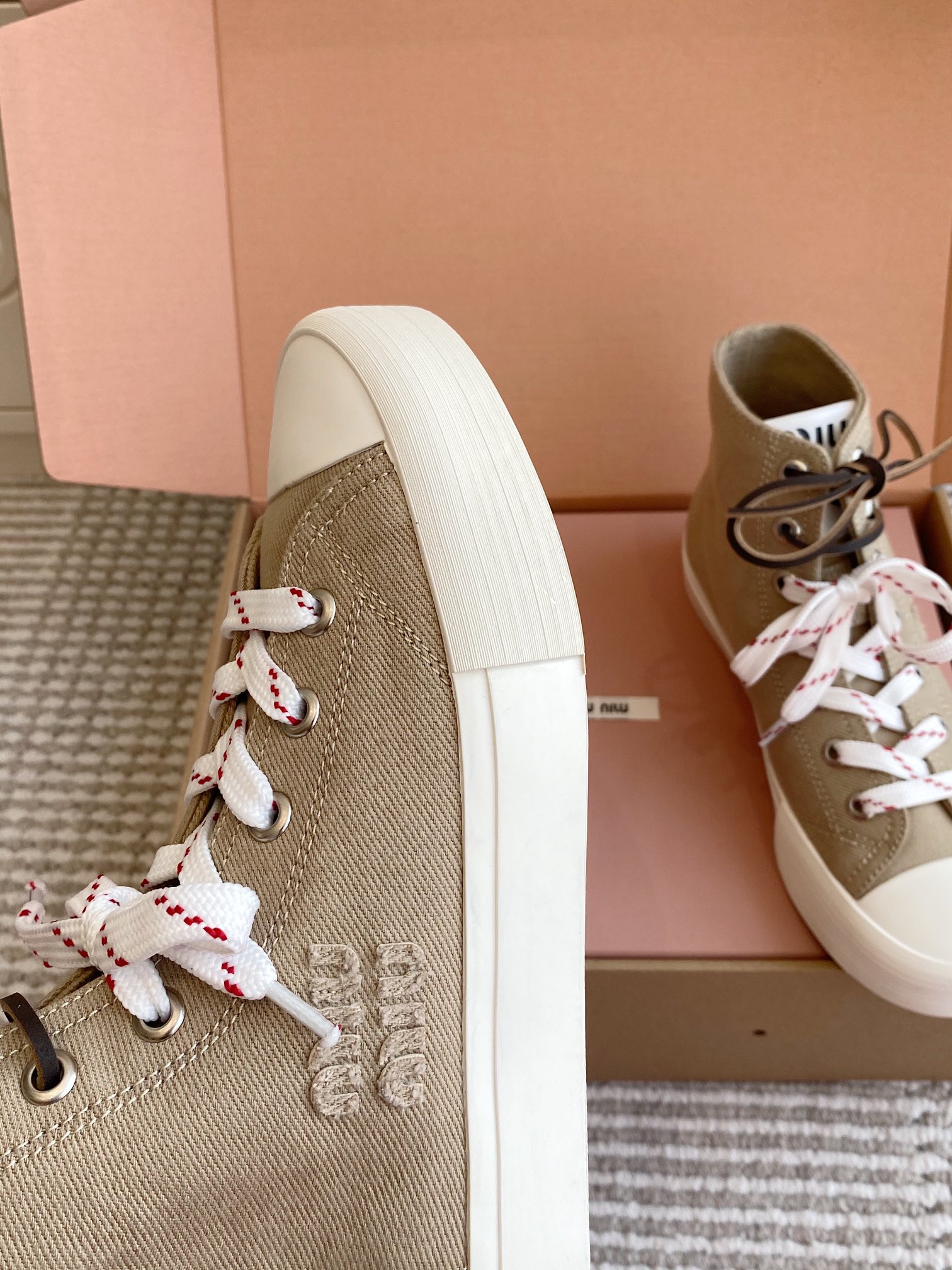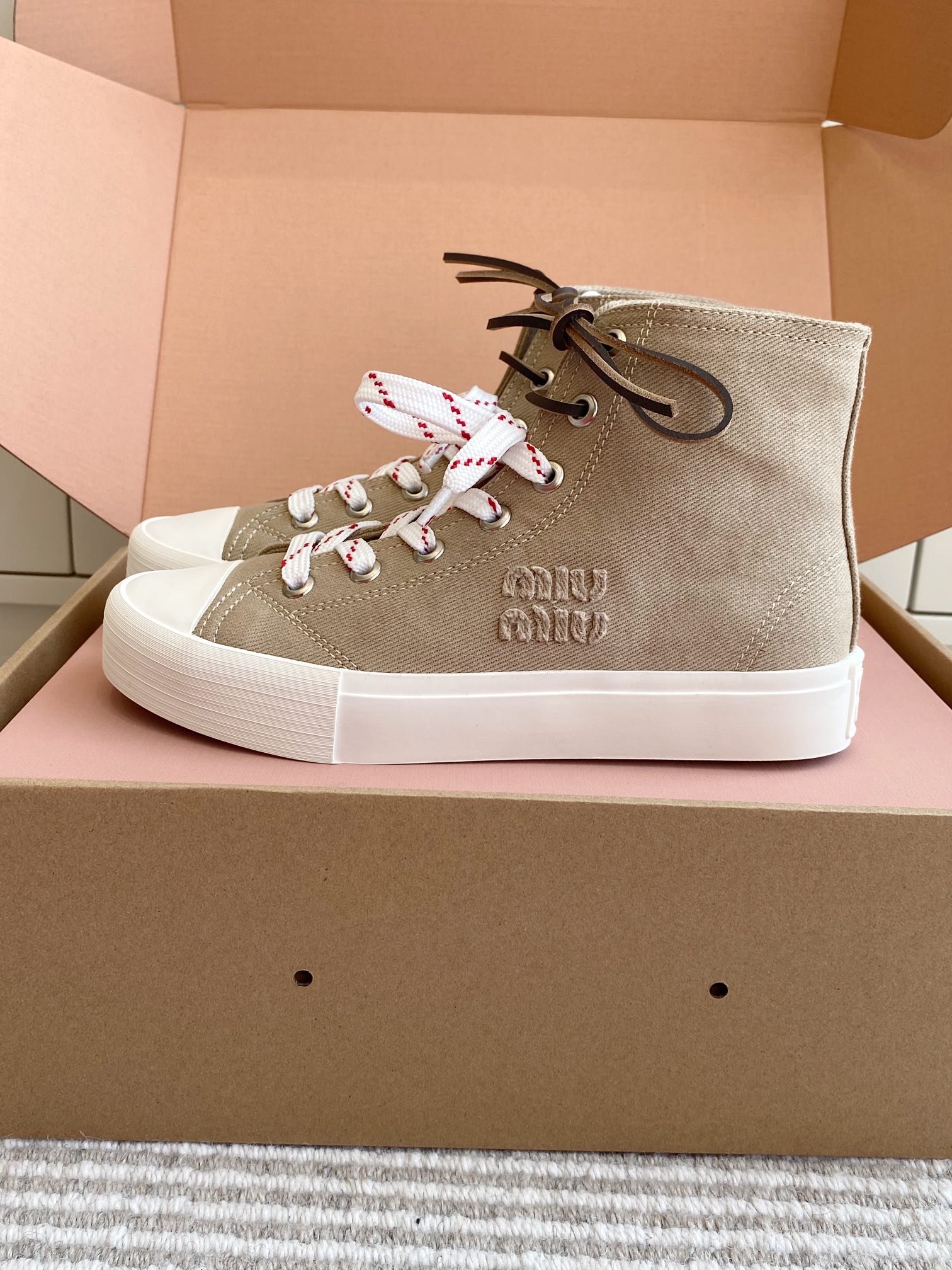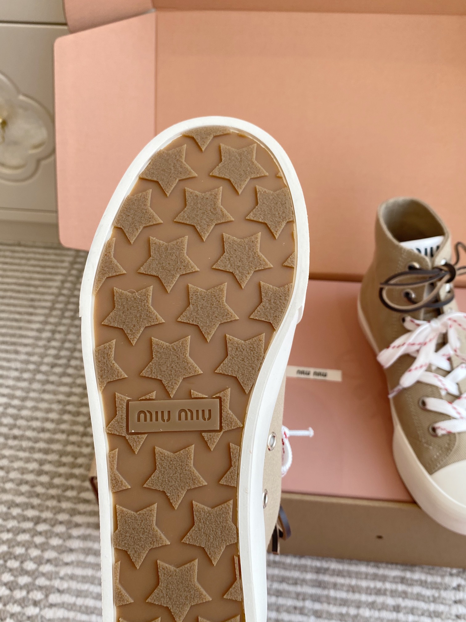 這款鞋子是AAAAA 1:1 質量(非常棒). 使用了和原版一模一樣的材料. 商標部分也保持了和繆繆/Miu Miu一樣. 圖片拍攝是實物鞋子拍攝, 您所收到的實物保證和我們圖片一模一樣.