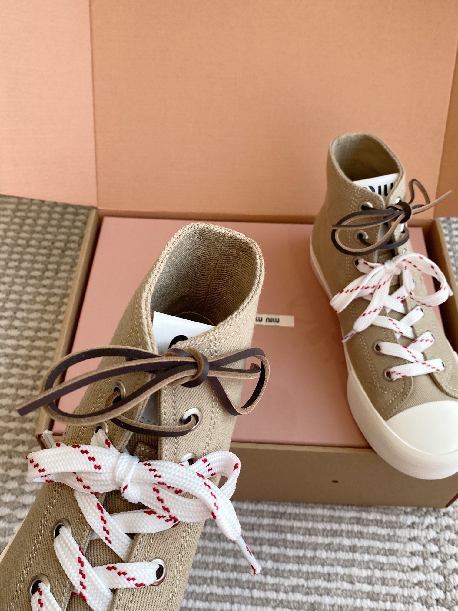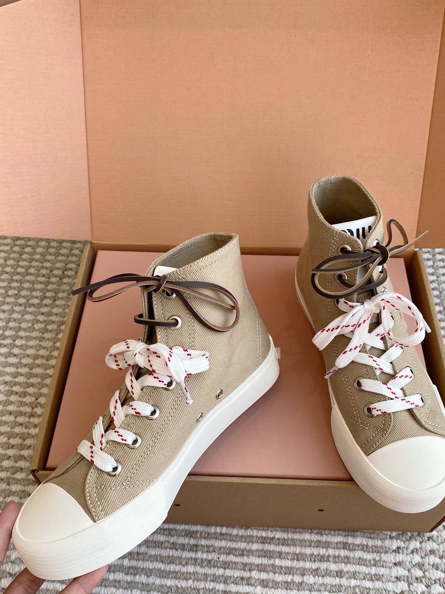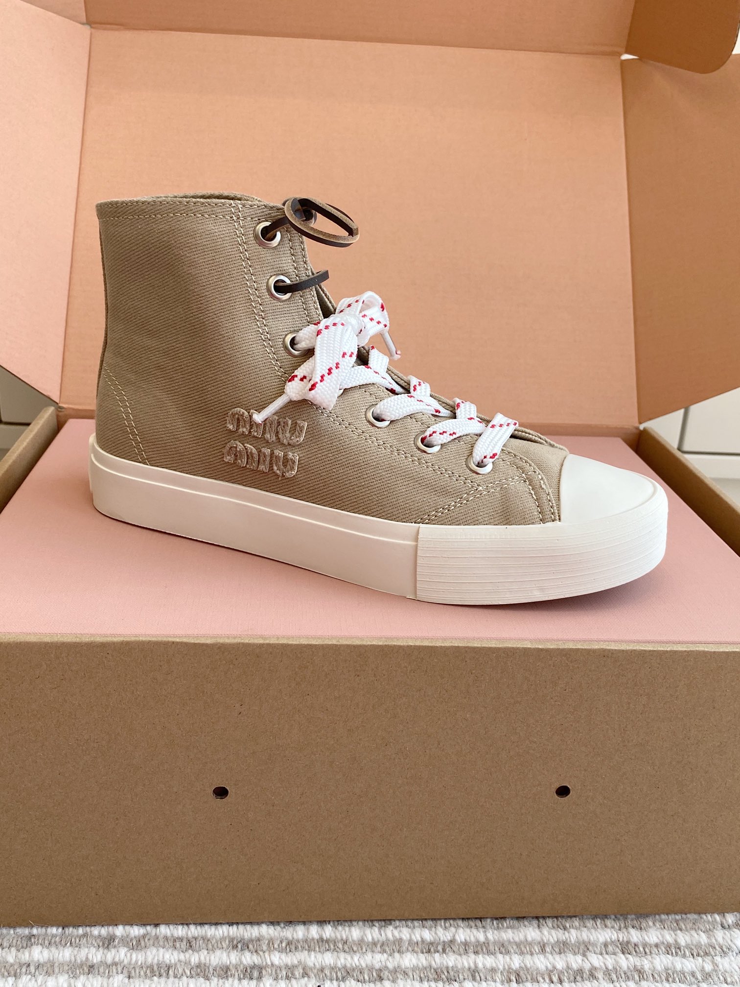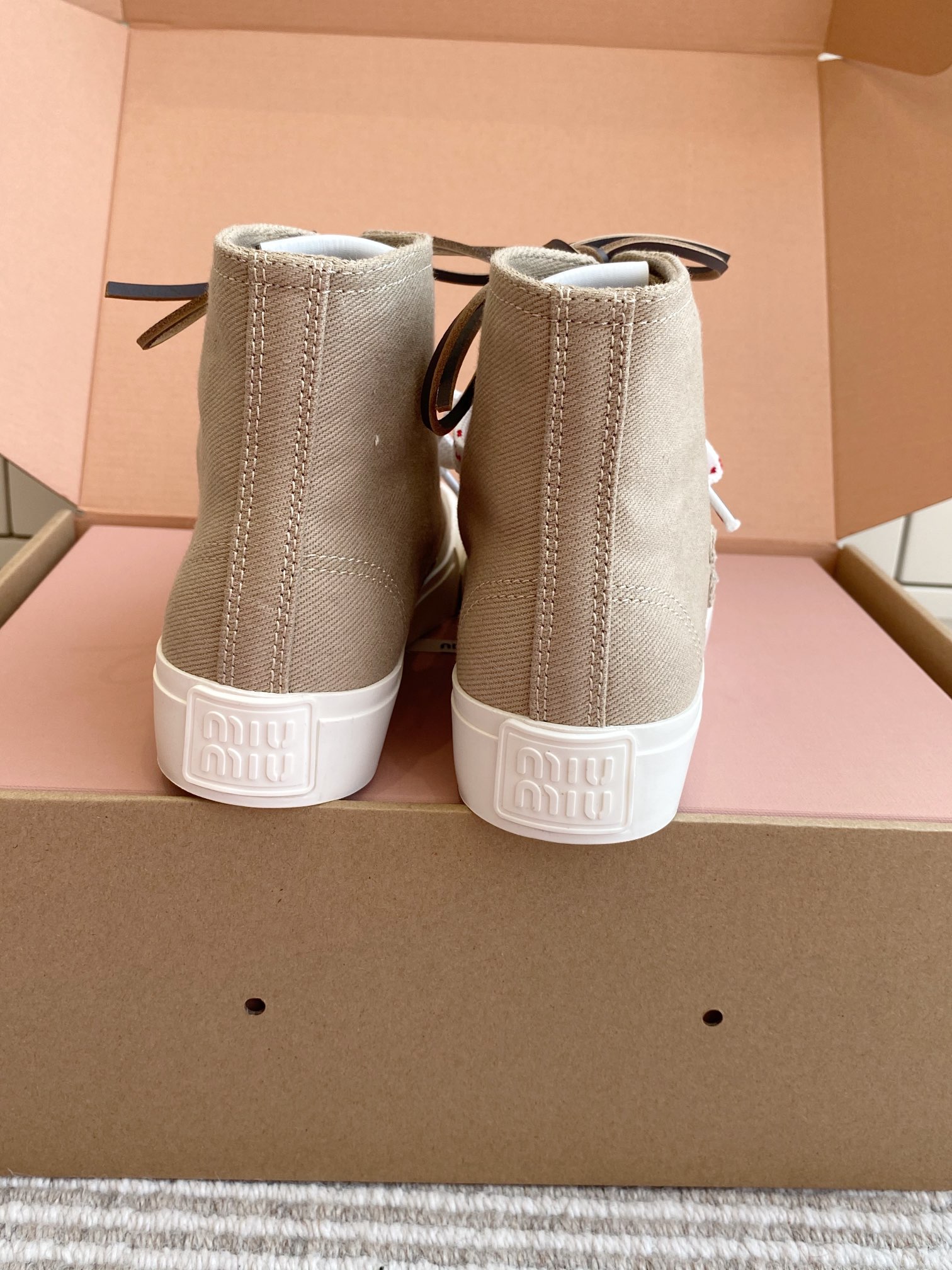 這款鞋子是AAAAA 1:1 質量(非常棒). 使用了和原版一模一樣的材料. 商標部分也保持了和繆繆/Miu Miu一樣. 圖片拍攝是實物鞋子拍攝, 您所收到的實物保證和我們圖片一模一樣.