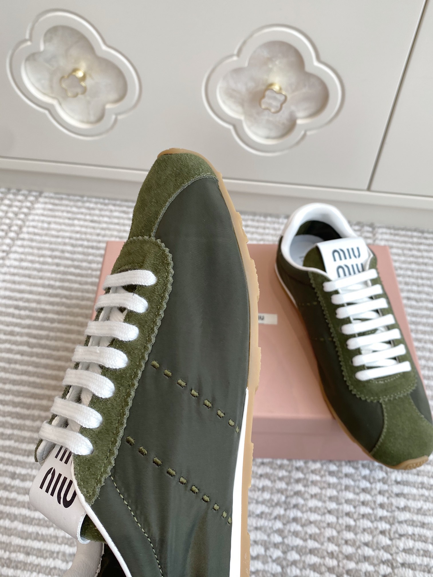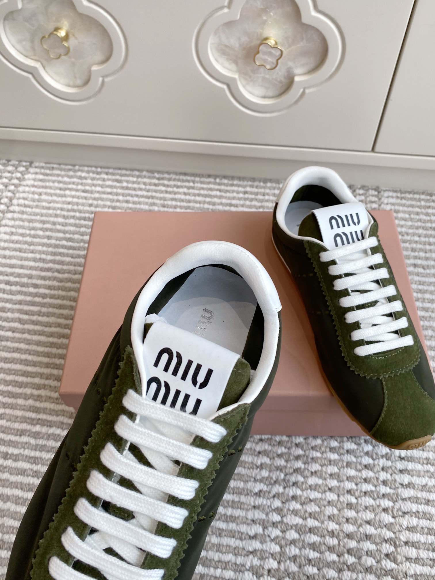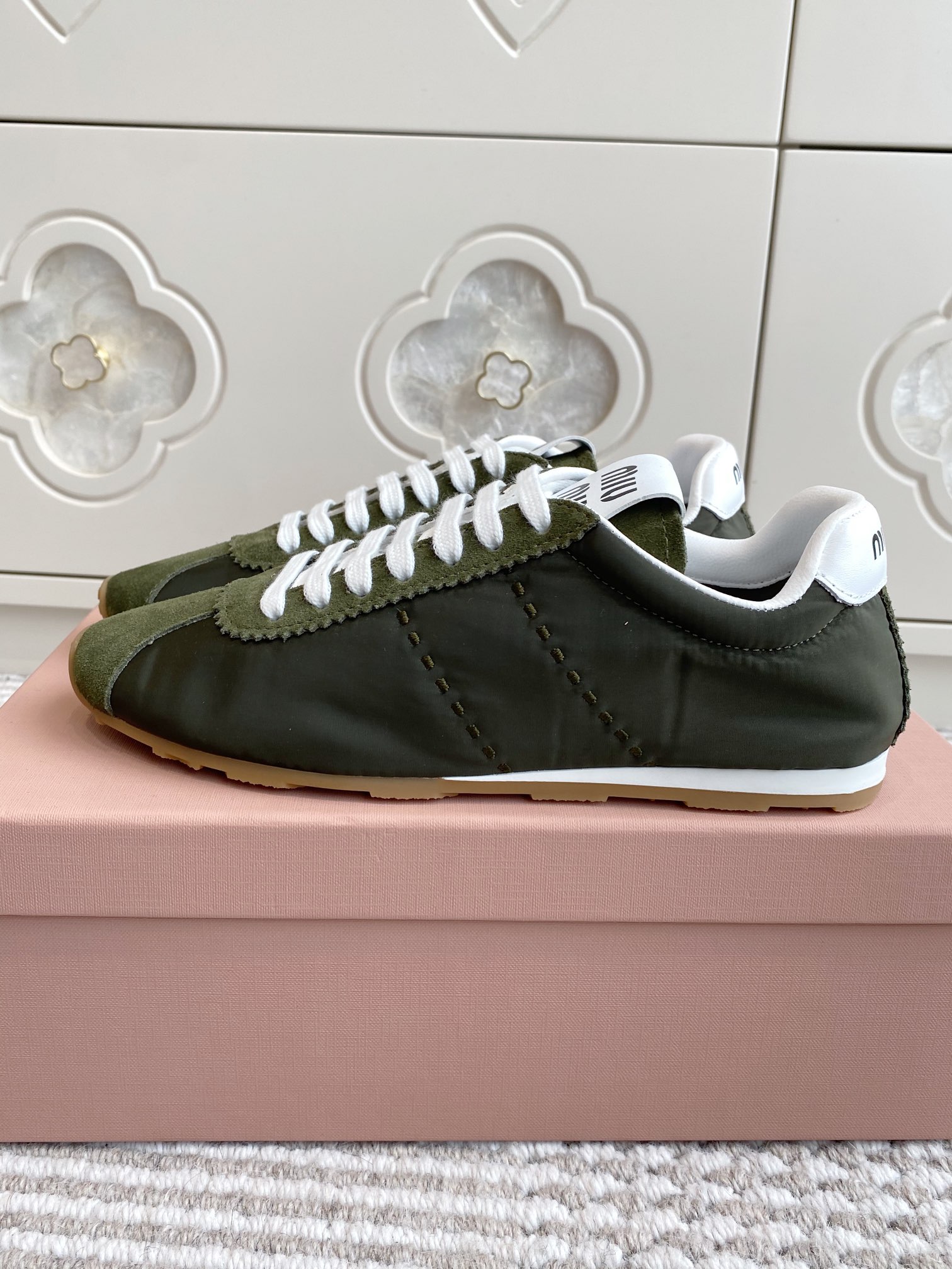 這款鞋子是AAAAA 1:1 質量(非常棒). 使用了和原版一模一樣的材料. 商標部分也保持了和繆繆/Miu Miu一樣. 圖片拍攝是實物鞋子拍攝, 您所收到的實物保證和我們圖片一模一樣.