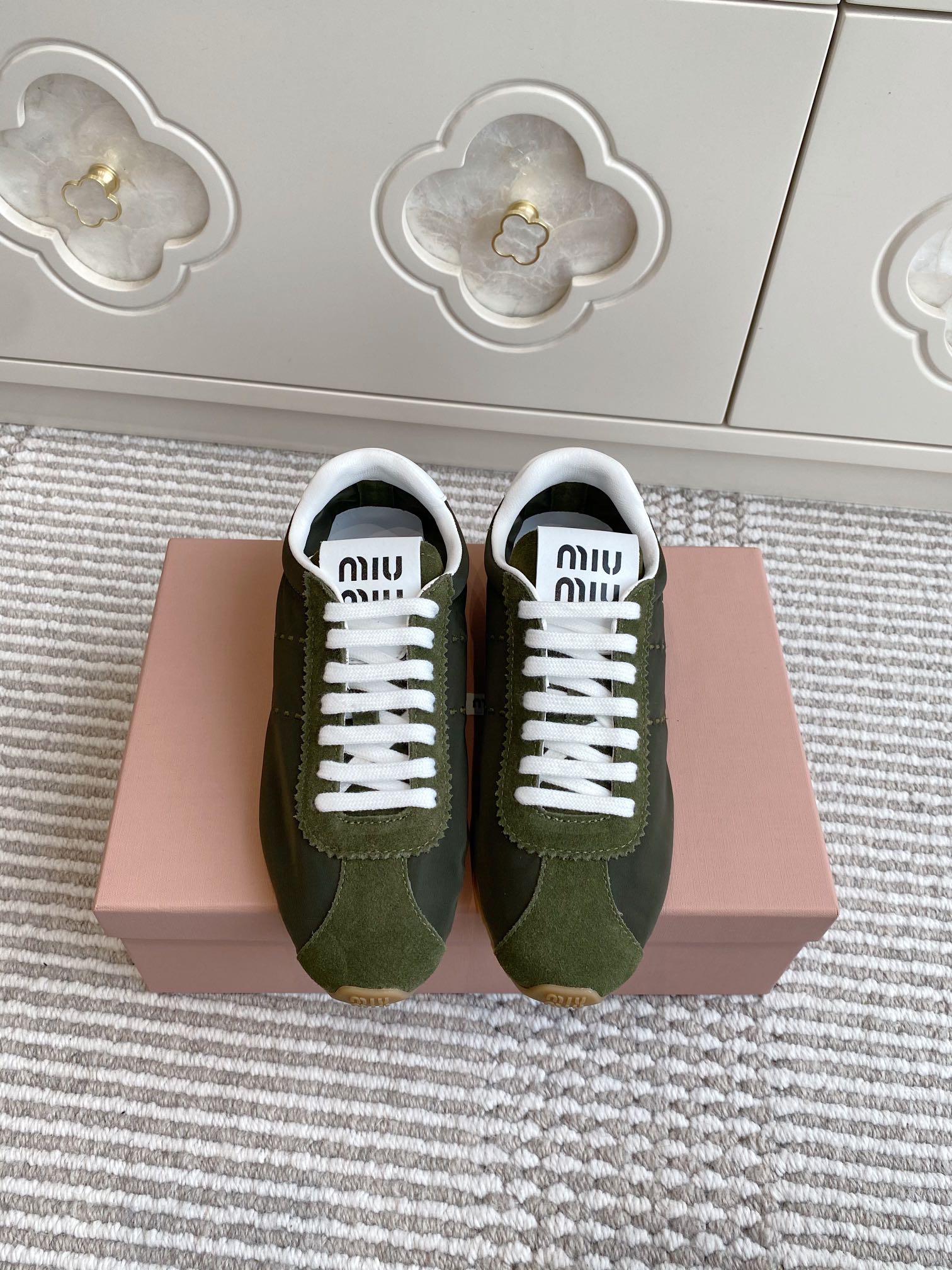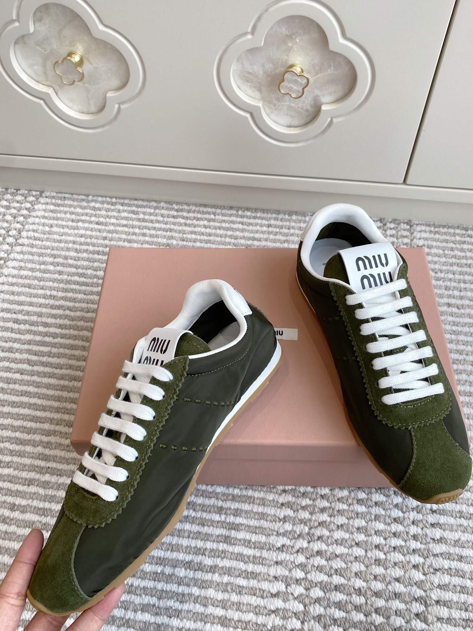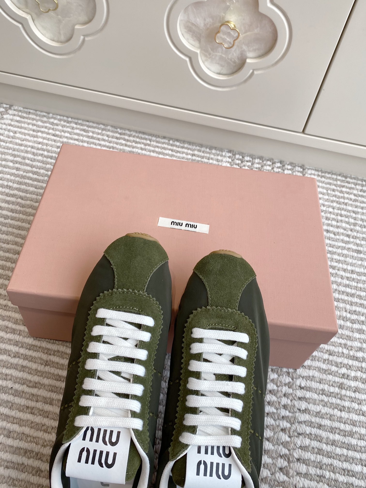 這款鞋子是AAAAA 1:1 質量(非常棒). 使用了和原版一模一樣的材料. 商標部分也保持了和繆繆/Miu Miu一樣. 圖片拍攝是實物鞋子拍攝, 您所收到的實物保證和我們圖片一模一樣.