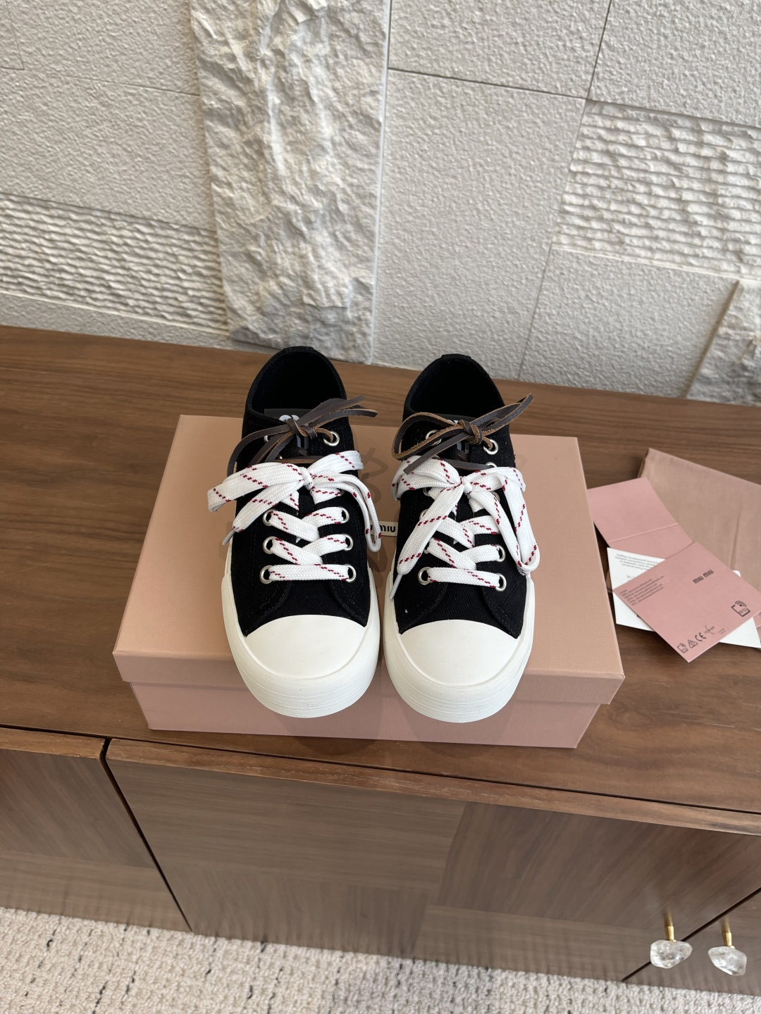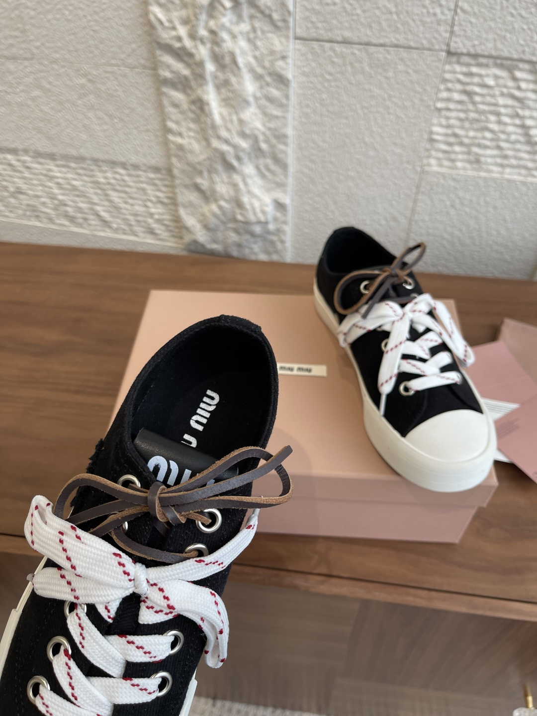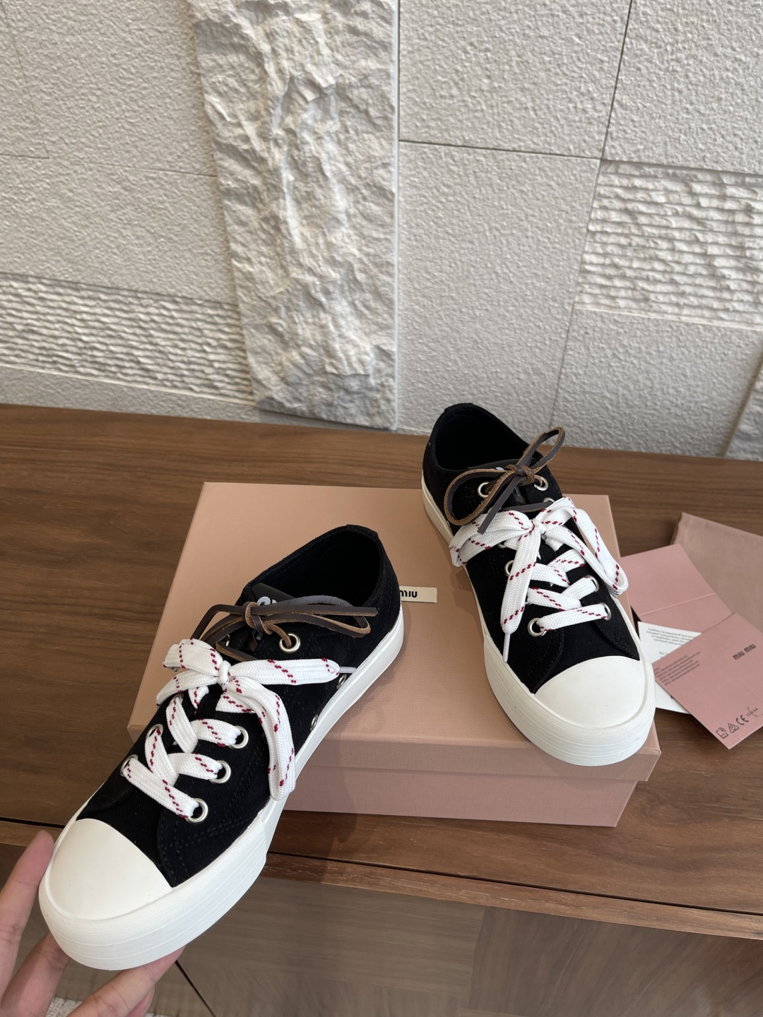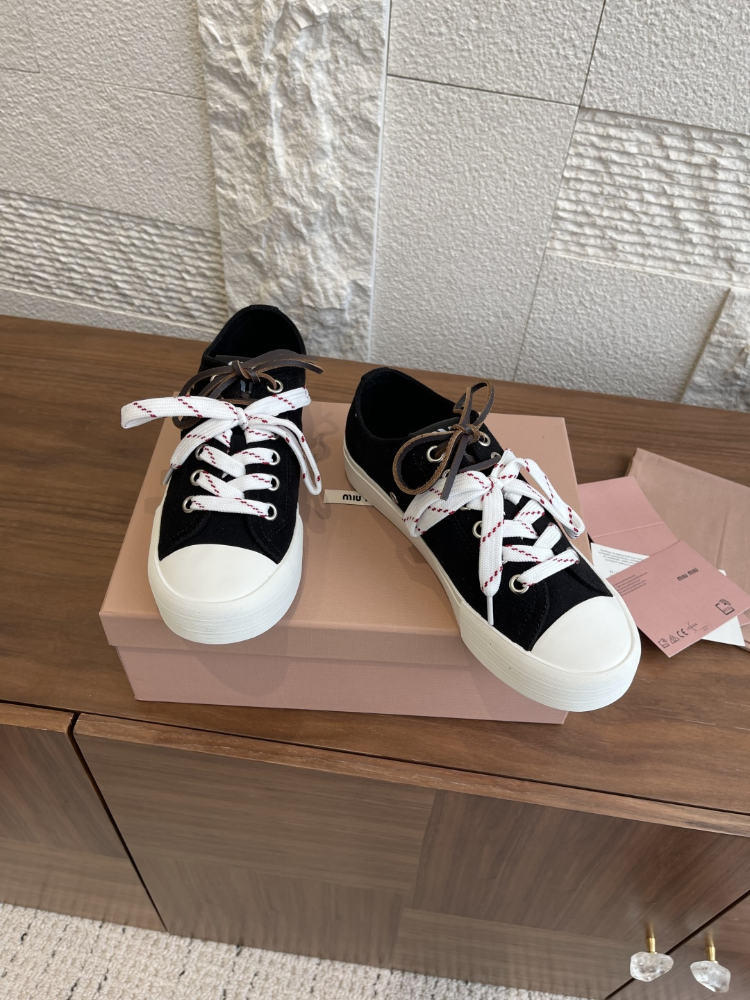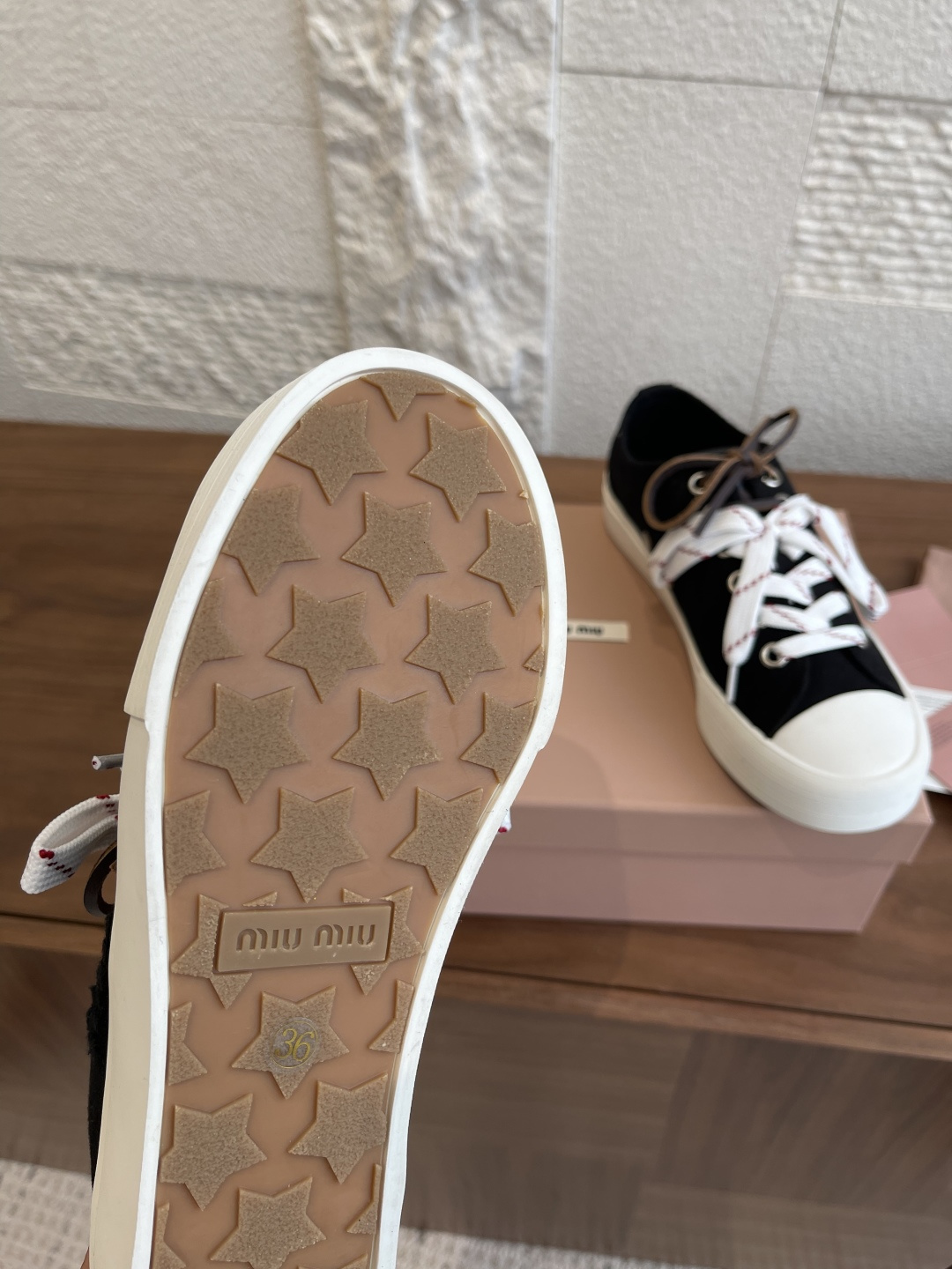 這款鞋子是AAAAA 1:1 質量(非常棒). 使用了和原版一模一樣的材料. 商標部分也保持了和繆繆/Miu Miu一樣. 圖片拍攝是實物鞋子拍攝, 您所收到的實物保證和我們圖片一模一樣.