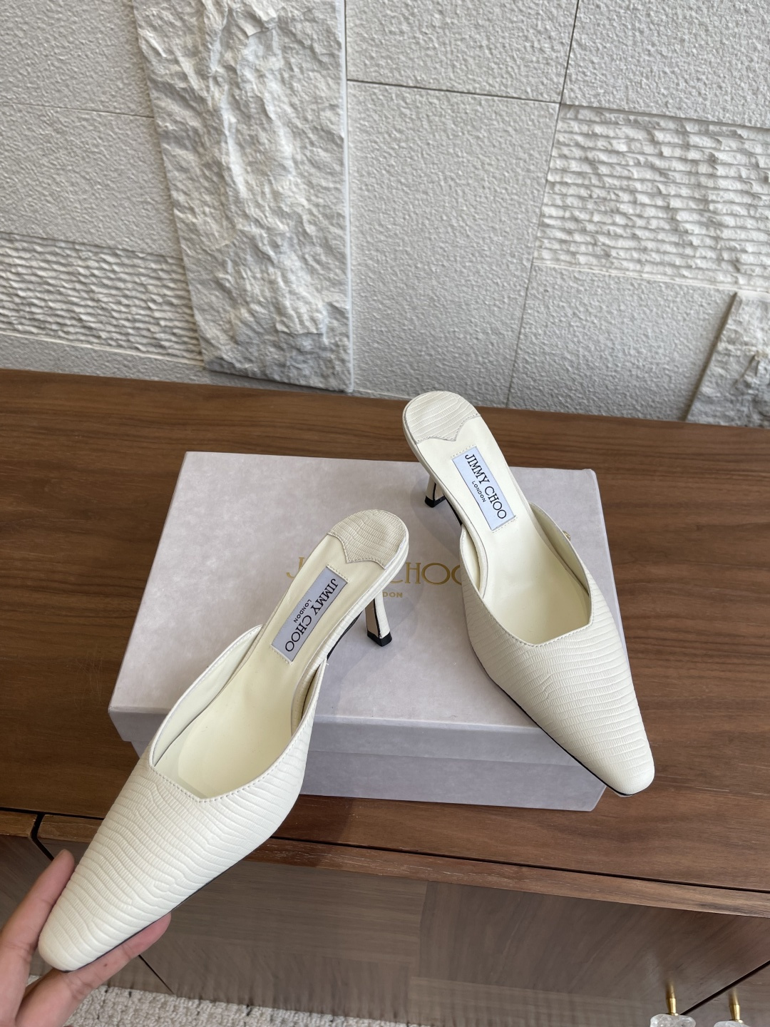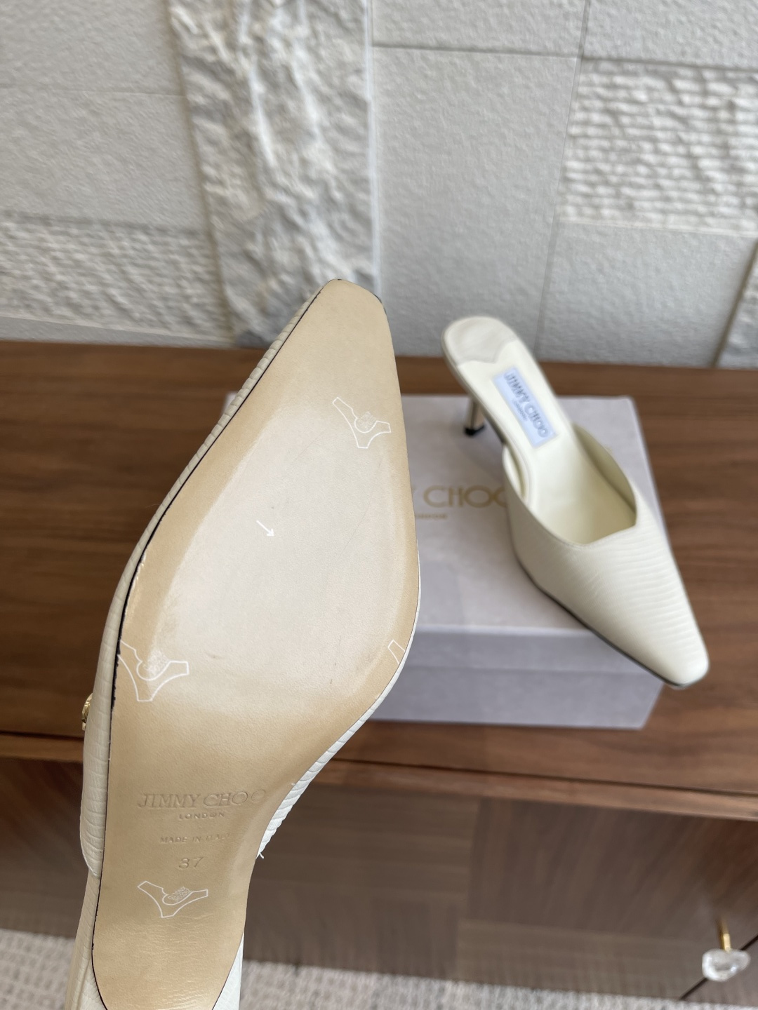 這款鞋子是AAAAA 1:1 質量(非常棒). 使用了和原版一模一樣的材料. 商標部分也保持了和吉米喬/JIMMY CHOO一樣. 圖片拍攝是實物鞋子拍攝, 您所收到的實物保證和我們圖片一模一樣.