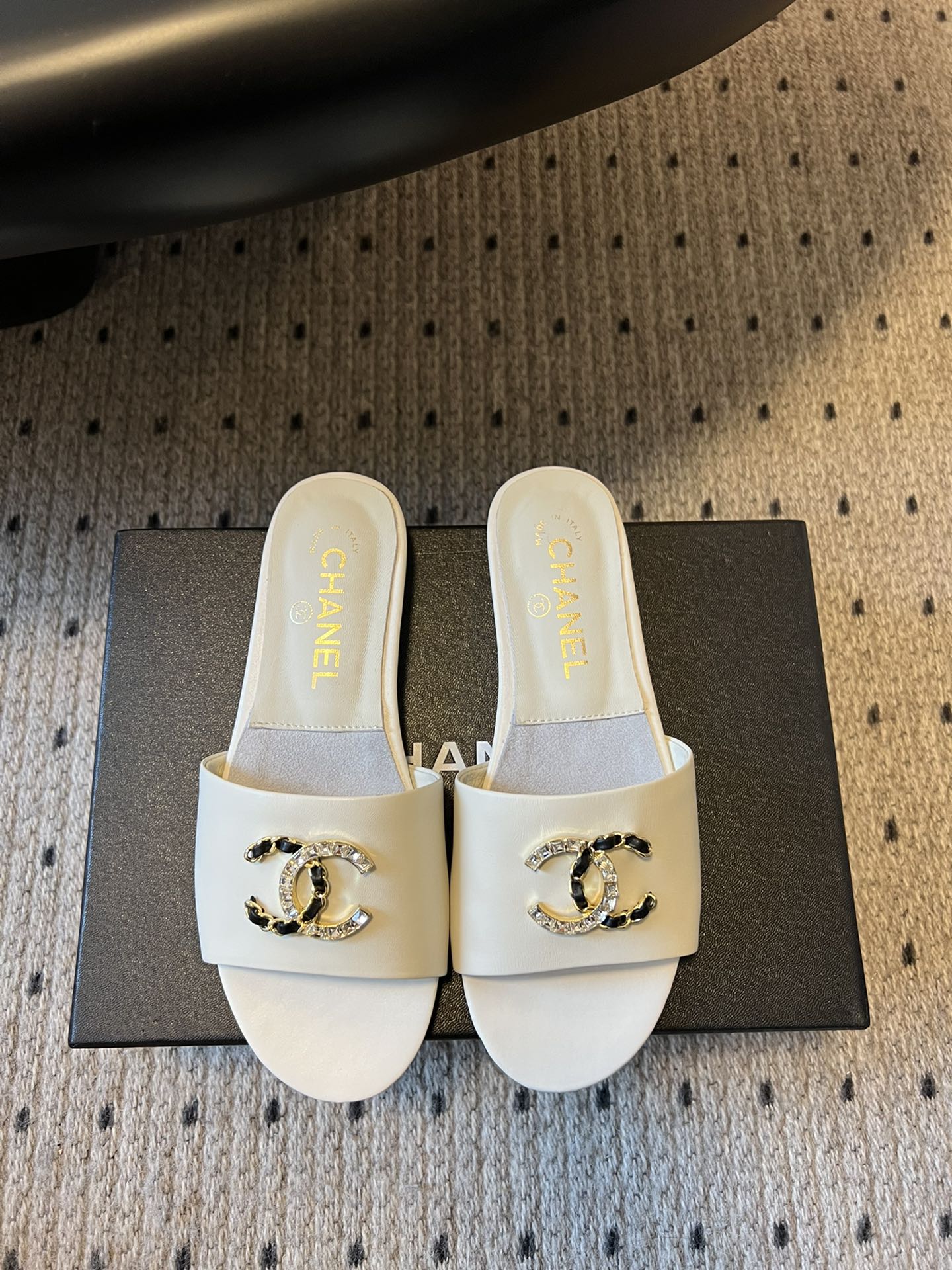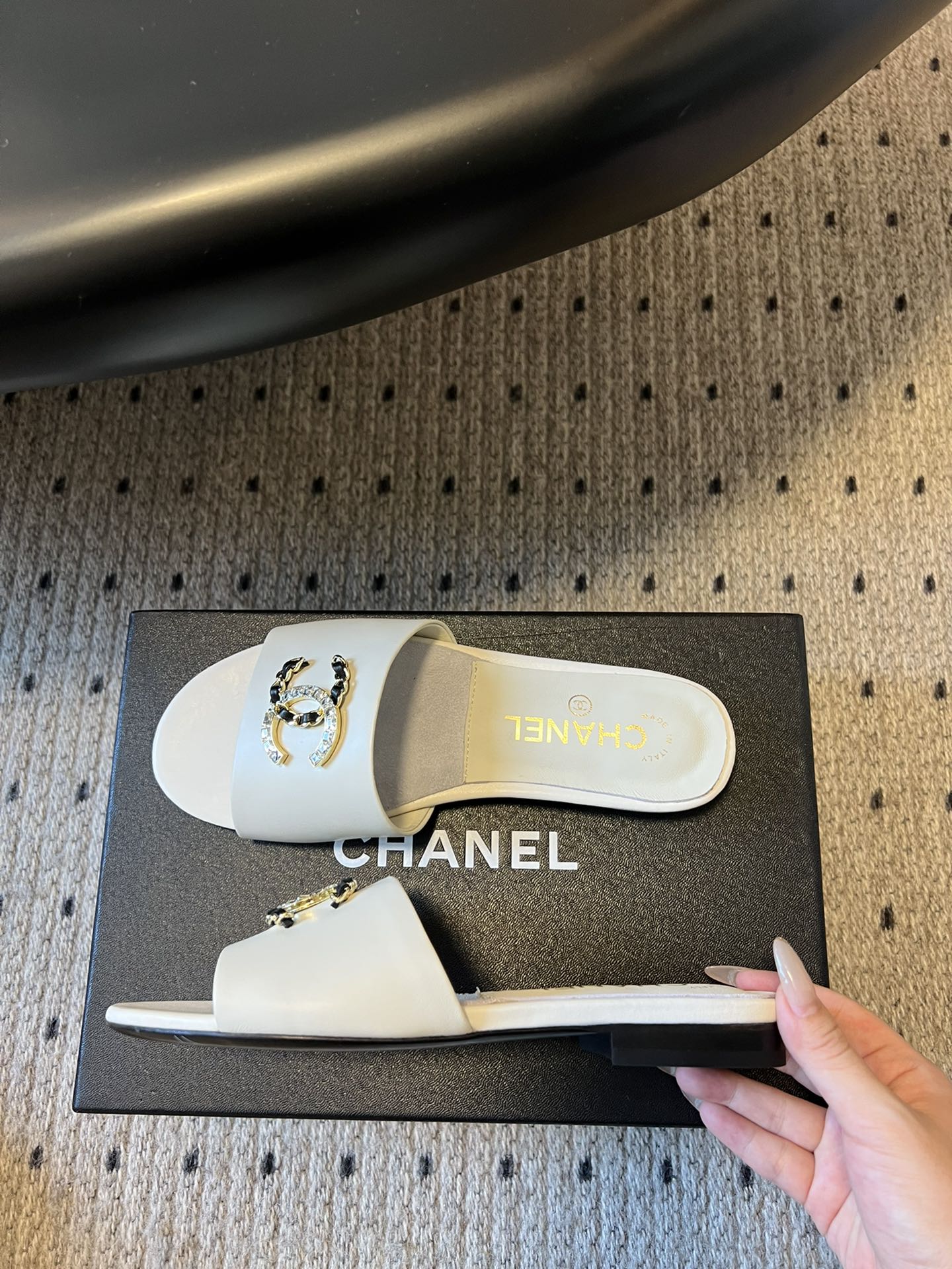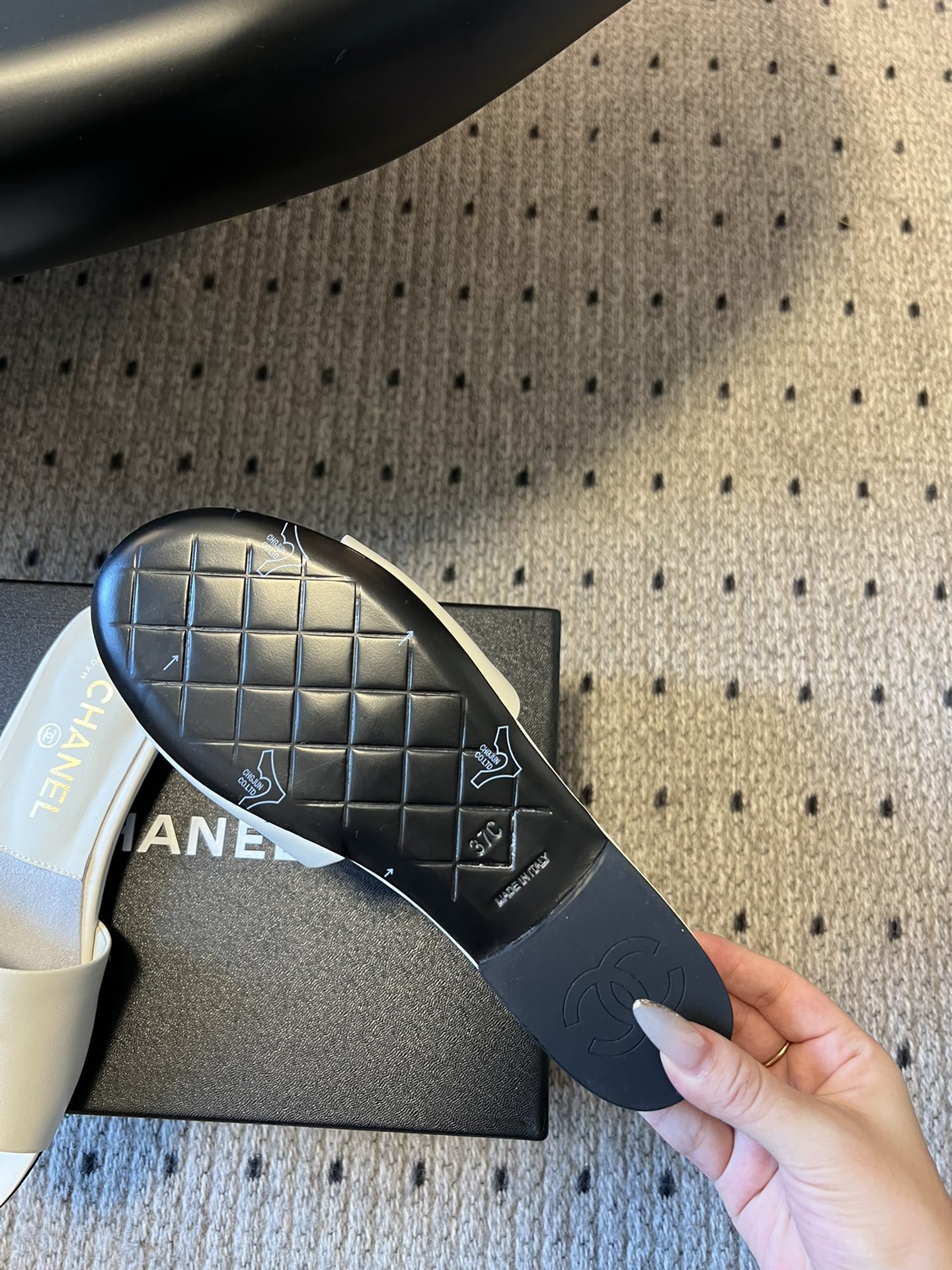 這款鞋子是AAAAA 1:1 質量(非常棒). 使用了和原版一模一樣的材料. 商標部分也保持了和香奈兒/Chanel一樣. 圖片拍攝是實物鞋子拍攝, 您所收到的實物保證和我們圖片一模一樣.