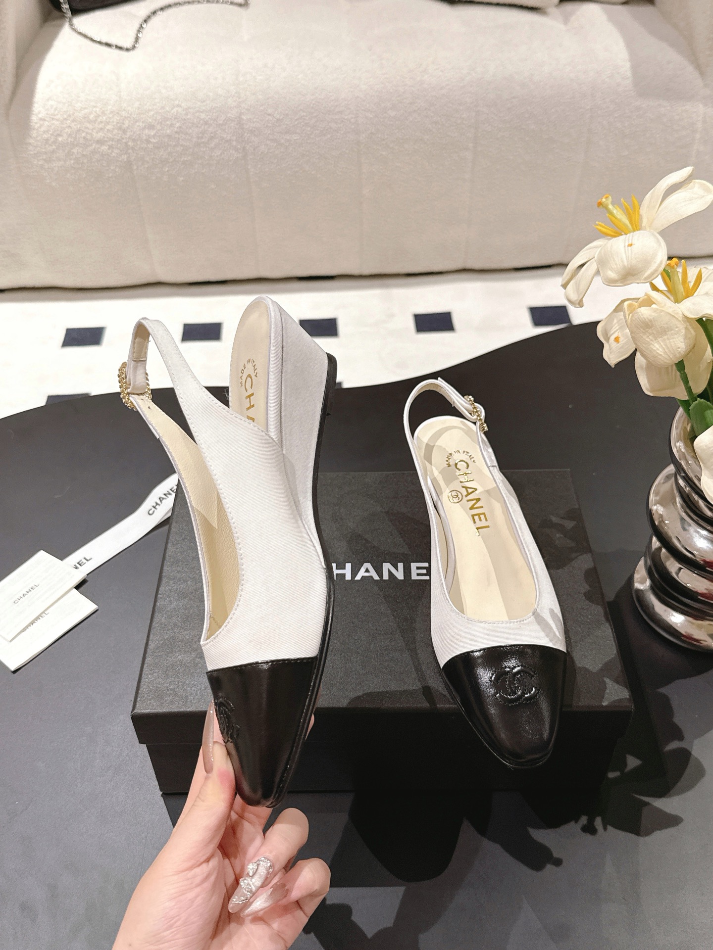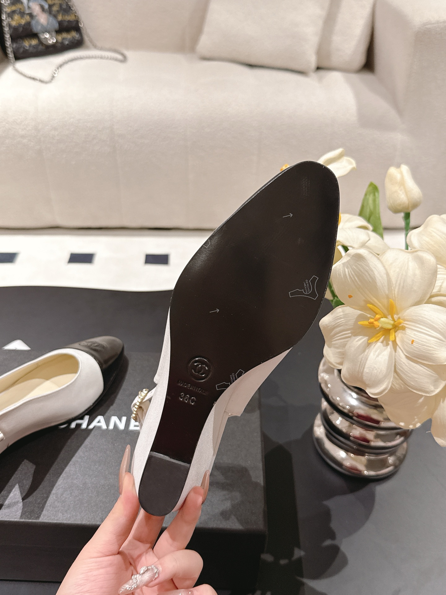 這款鞋子是AAAAA 1:1 質量(非常棒). 使用了和原版一模一樣的材料. 商標部分也保持了和香奈兒/Chanel一樣. 圖片拍攝是實物鞋子拍攝, 您所收到的實物保證和我們圖片一模一樣.