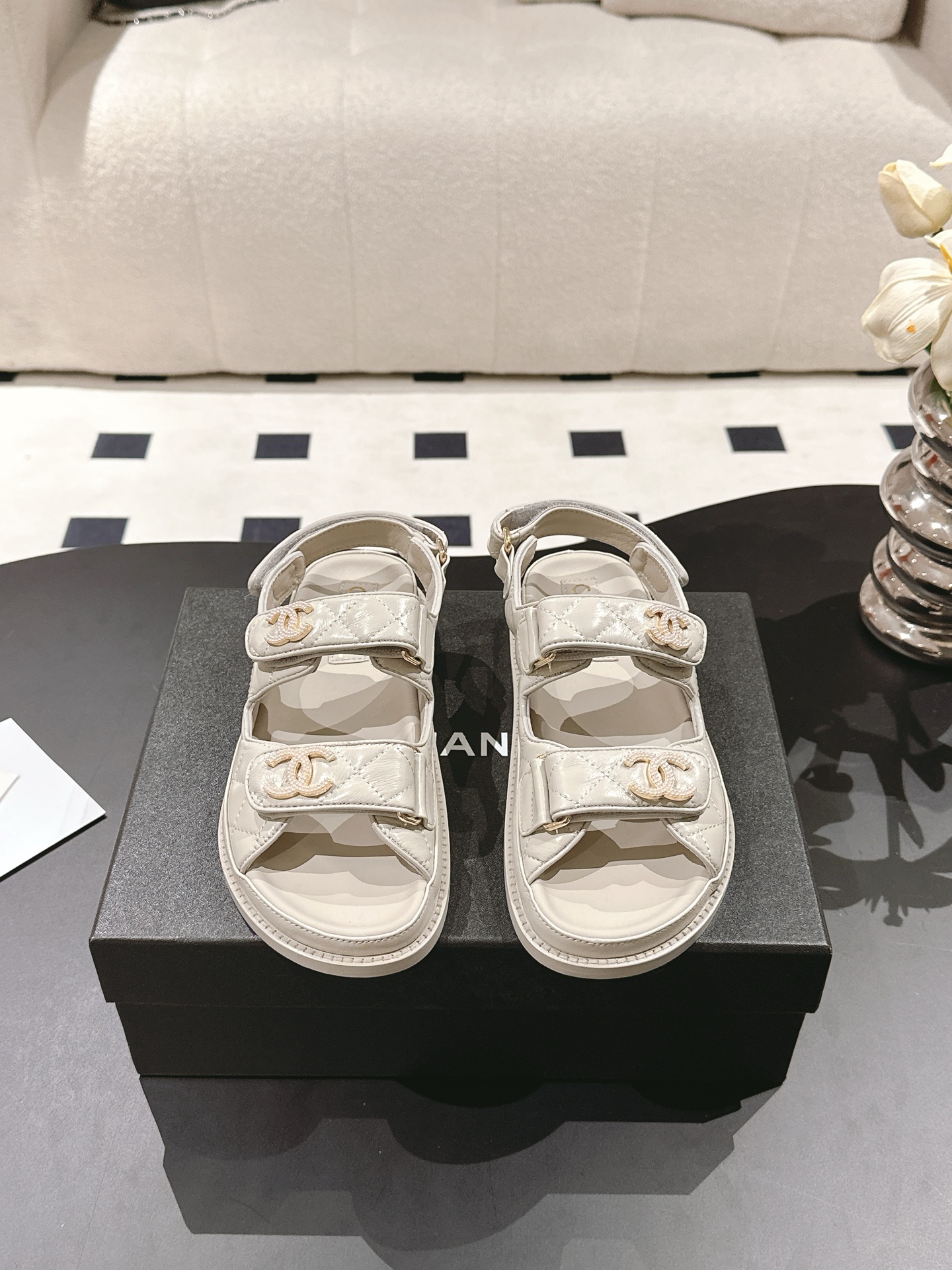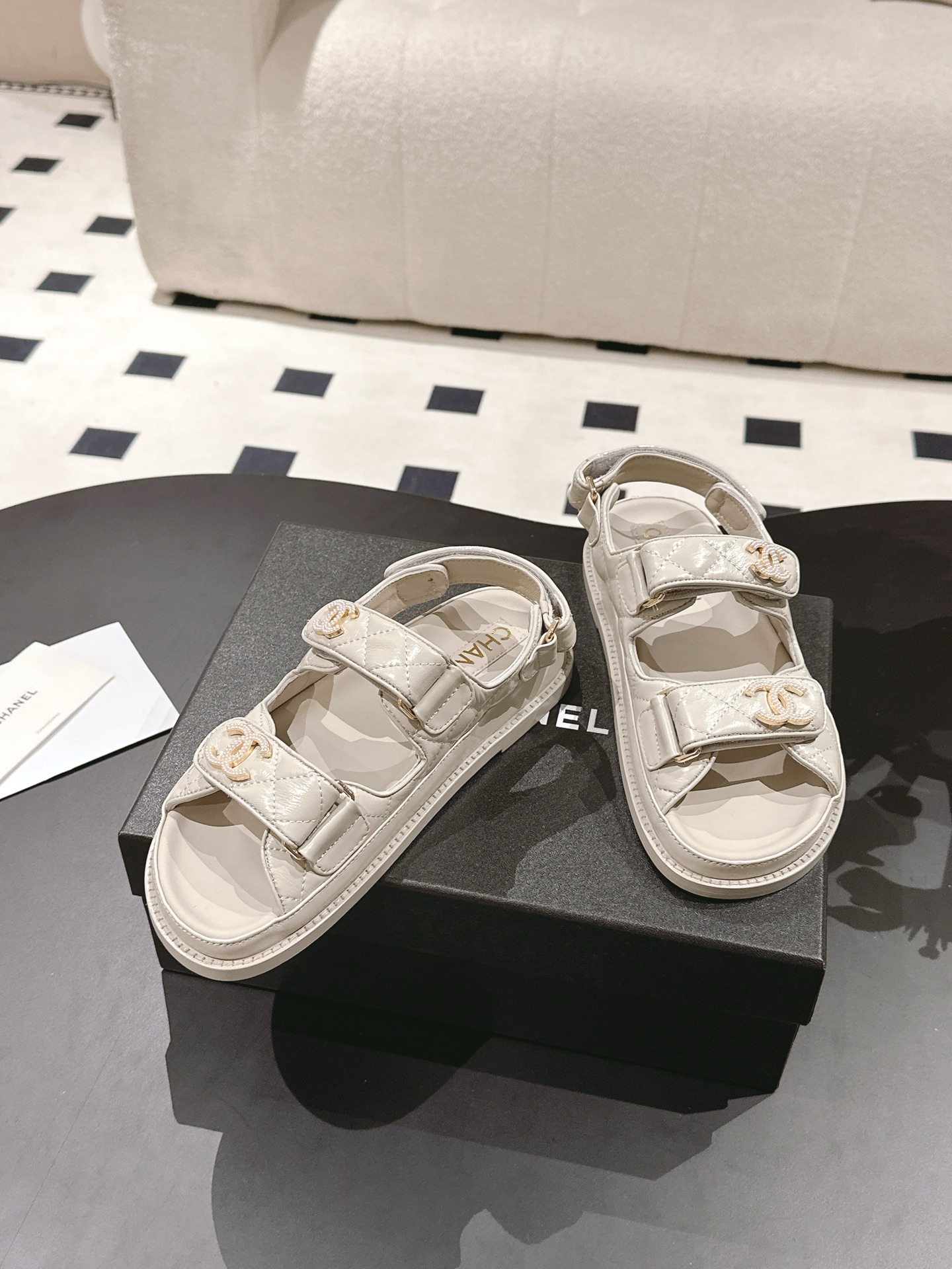 這款鞋子是AAAAA 1:1 質量(非常棒). 使用了和原版一模一樣的材料. 商標部分也保持了和香奈兒/Chanel一樣. 圖片拍攝是實物鞋子拍攝, 您所收到的實物保證和我們圖片一模一樣.