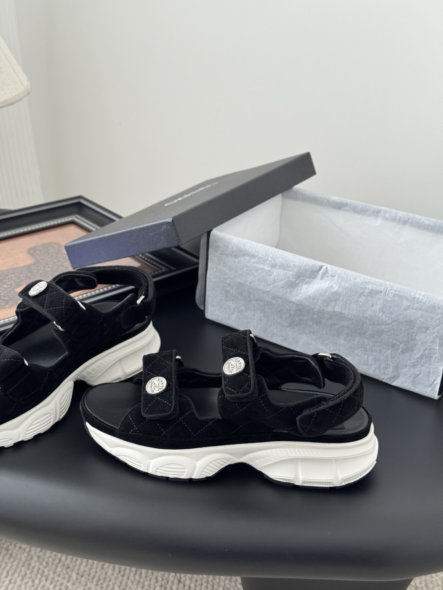 這款鞋子是AAAAA 1:1 質量(非常棒). 使用了和原版一模一樣的材料. 商標部分也保持了和香奈兒/Chanel一樣. 圖片拍攝是實物鞋子拍攝, 您所收到的實物保證和我們圖片一模一樣.
