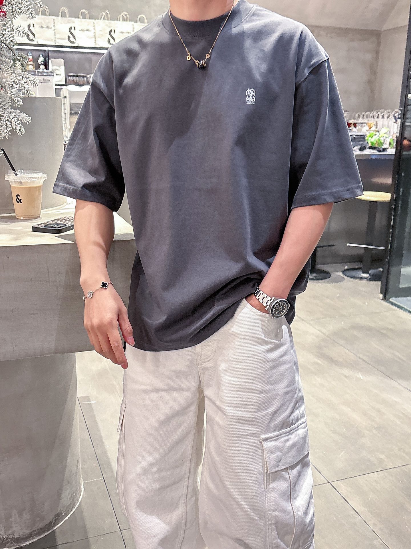 這款衣服是AAAAA 1:1 質量(非常棒). 使用了和原版一模一樣的材料. 商標部分也保持了和Brunello Cucinelli一樣. 圖片拍攝是實物衣服拍攝, 您所收到的實物保證和我們圖片一模一樣.