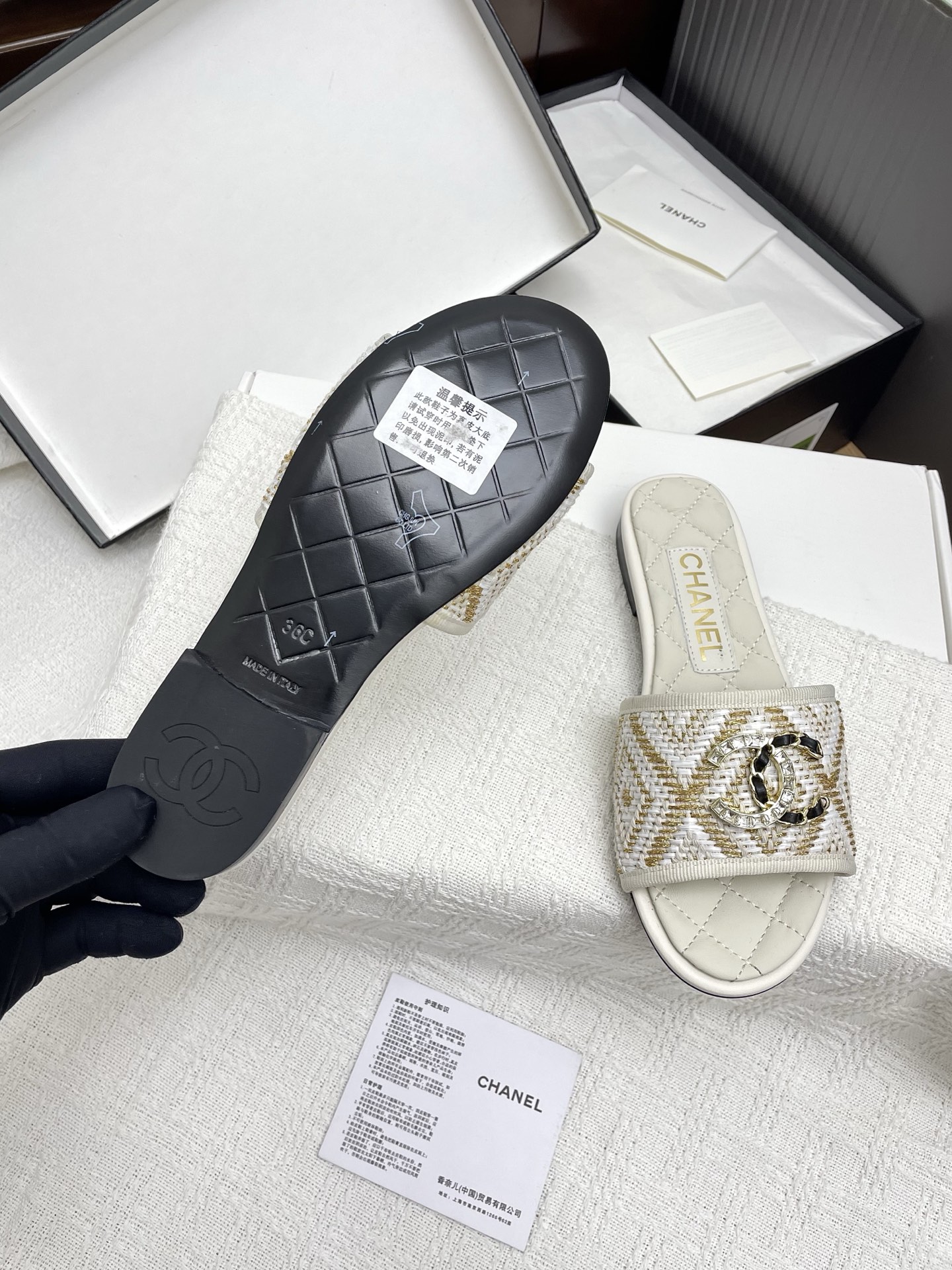 這款鞋子是AAAAA 1:1 質量(非常棒). 使用了和原版一模一樣的材料. 商標部分也保持了和香奈兒/Chanel一樣. 圖片拍攝是實物鞋子拍攝, 您所收到的實物保證和我們圖片一模一樣.