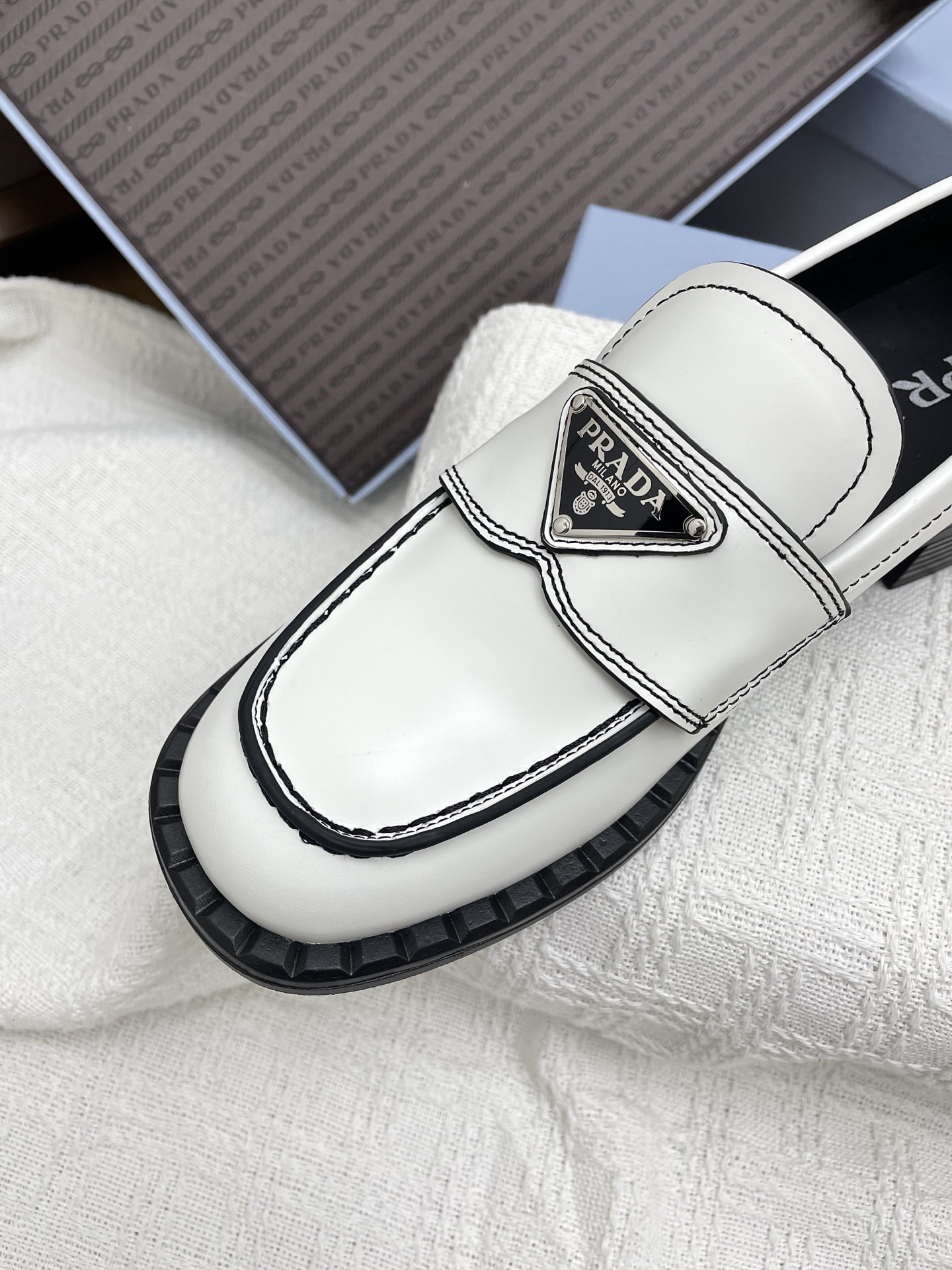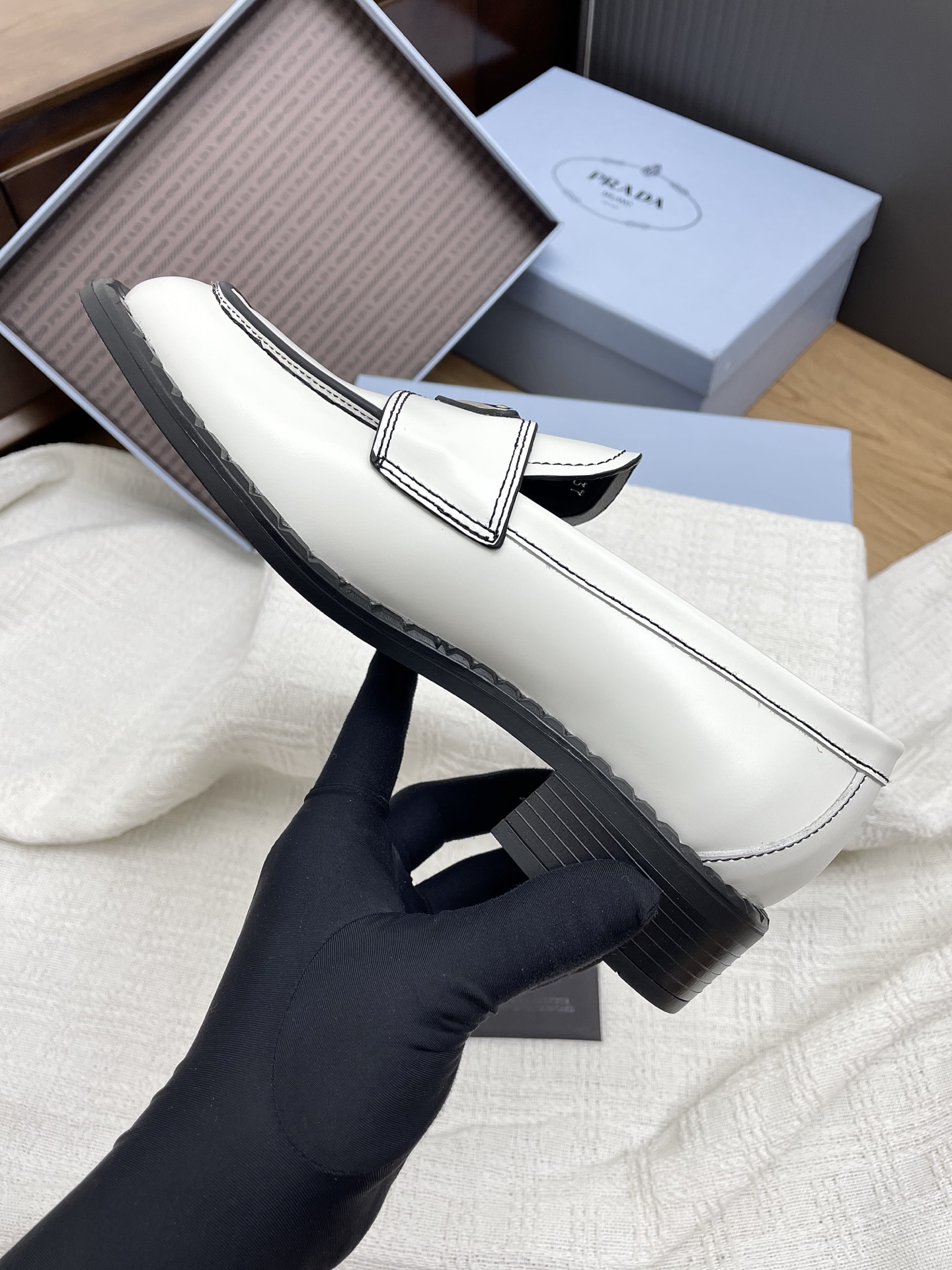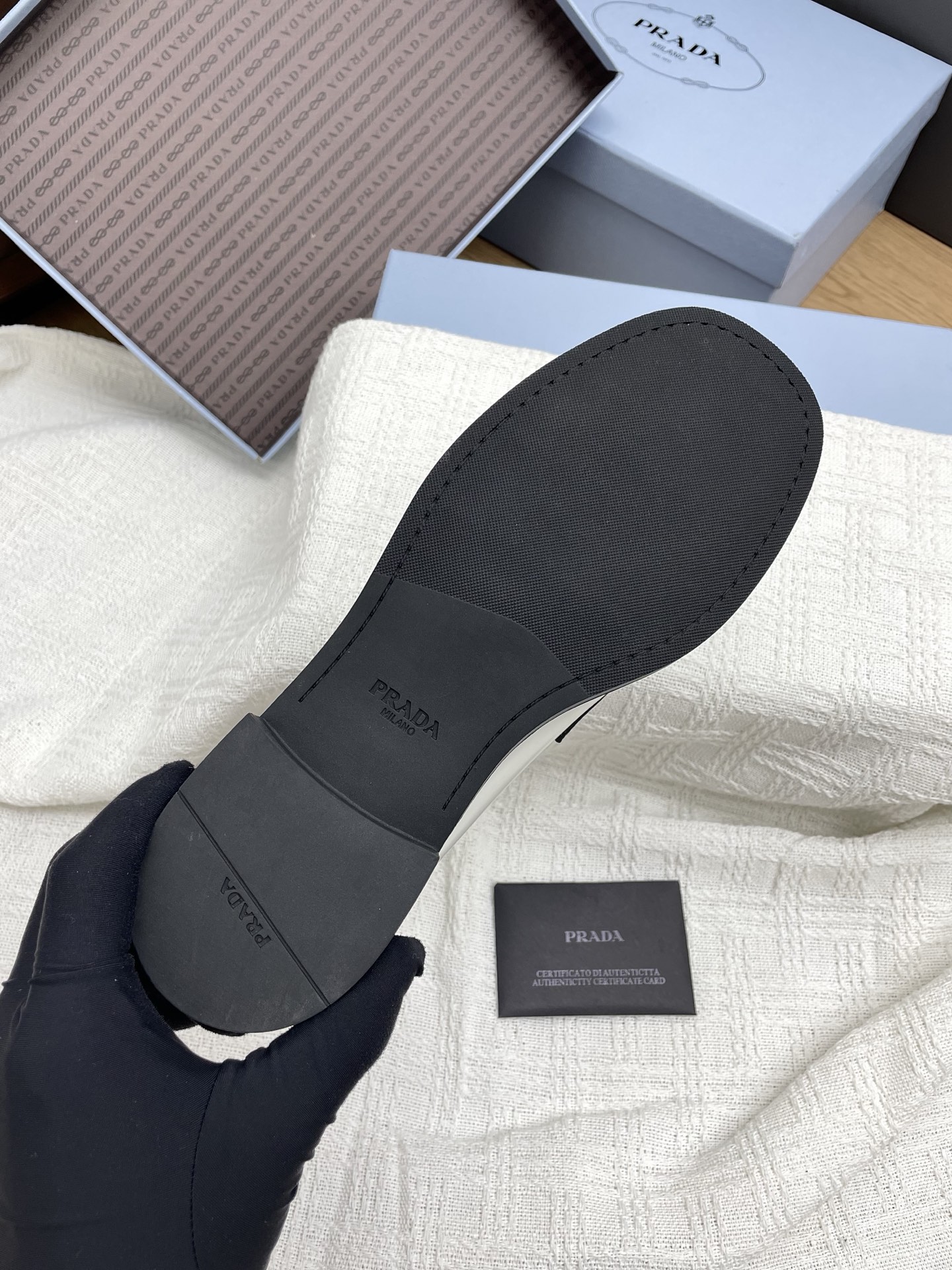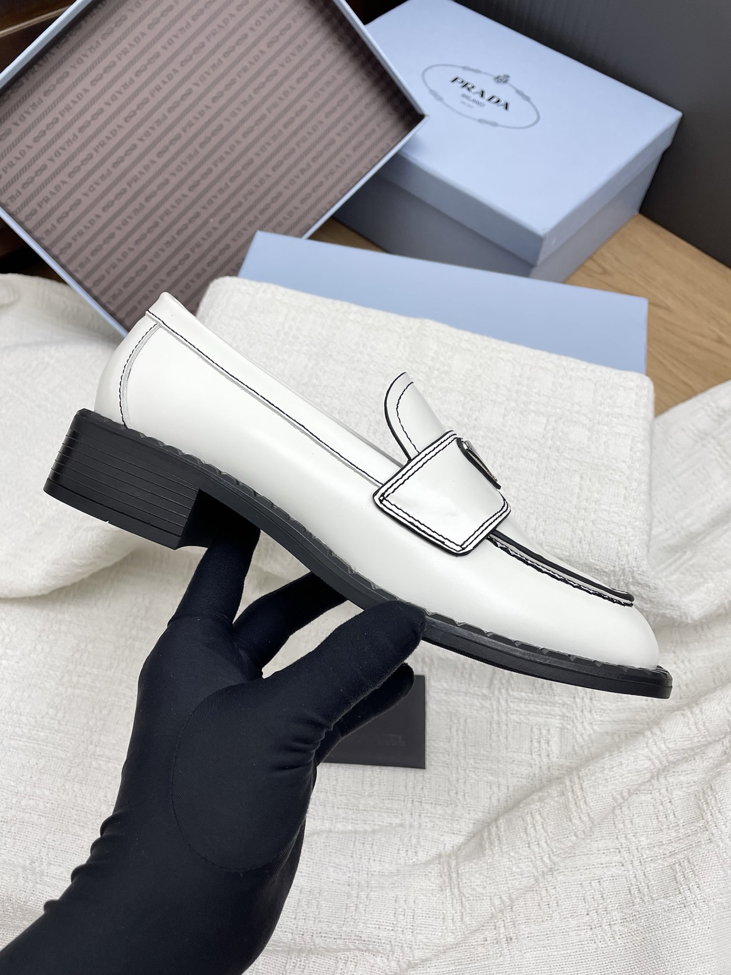 這款鞋子是AAAAA 1:1 質量(非常棒). 使用了和原版一模一樣的材料. 商標部分也保持了和普拉達/Prada一樣. 圖片拍攝是實物鞋子拍攝, 您所收到的實物保證和我們圖片一模一樣.