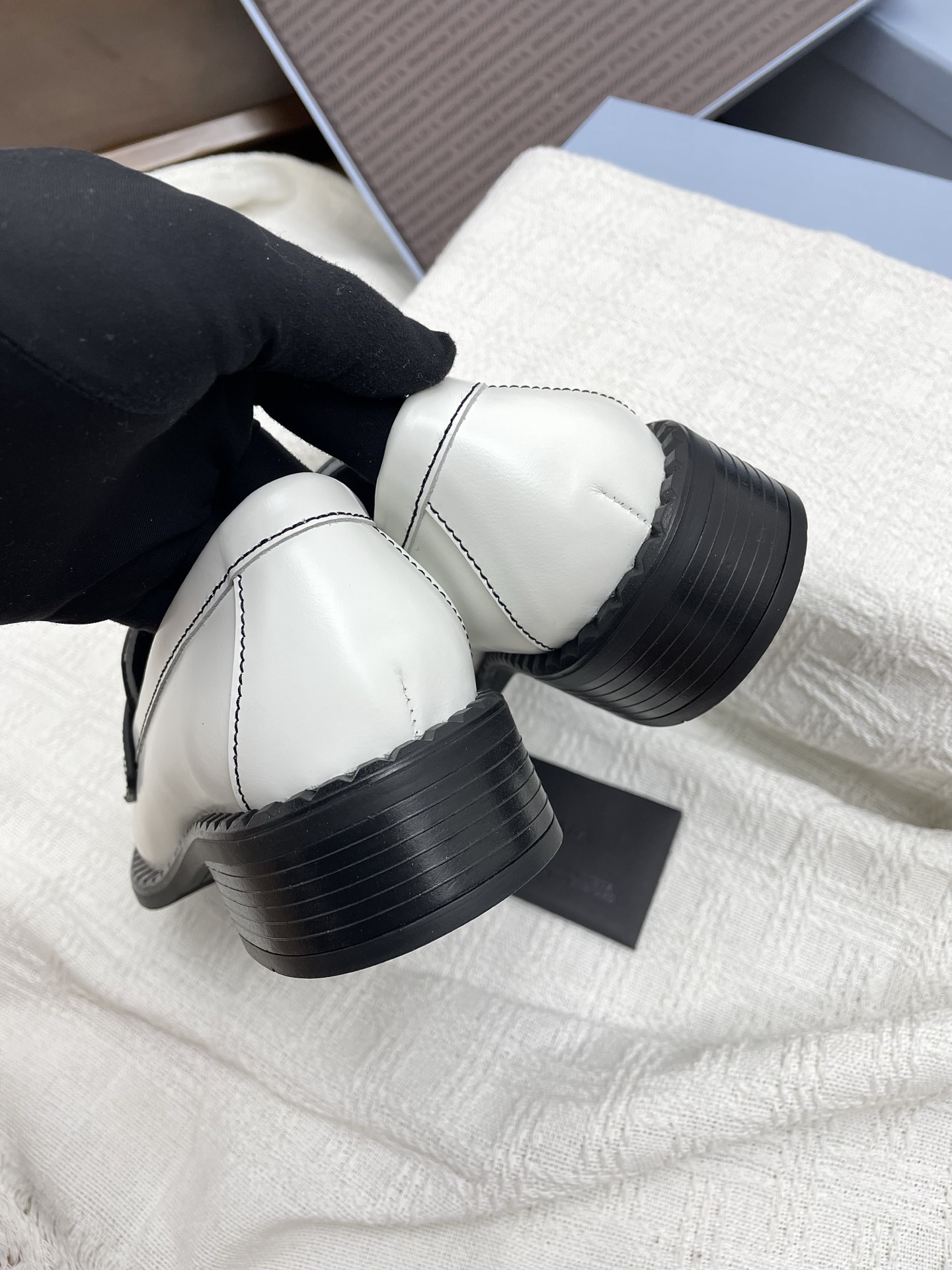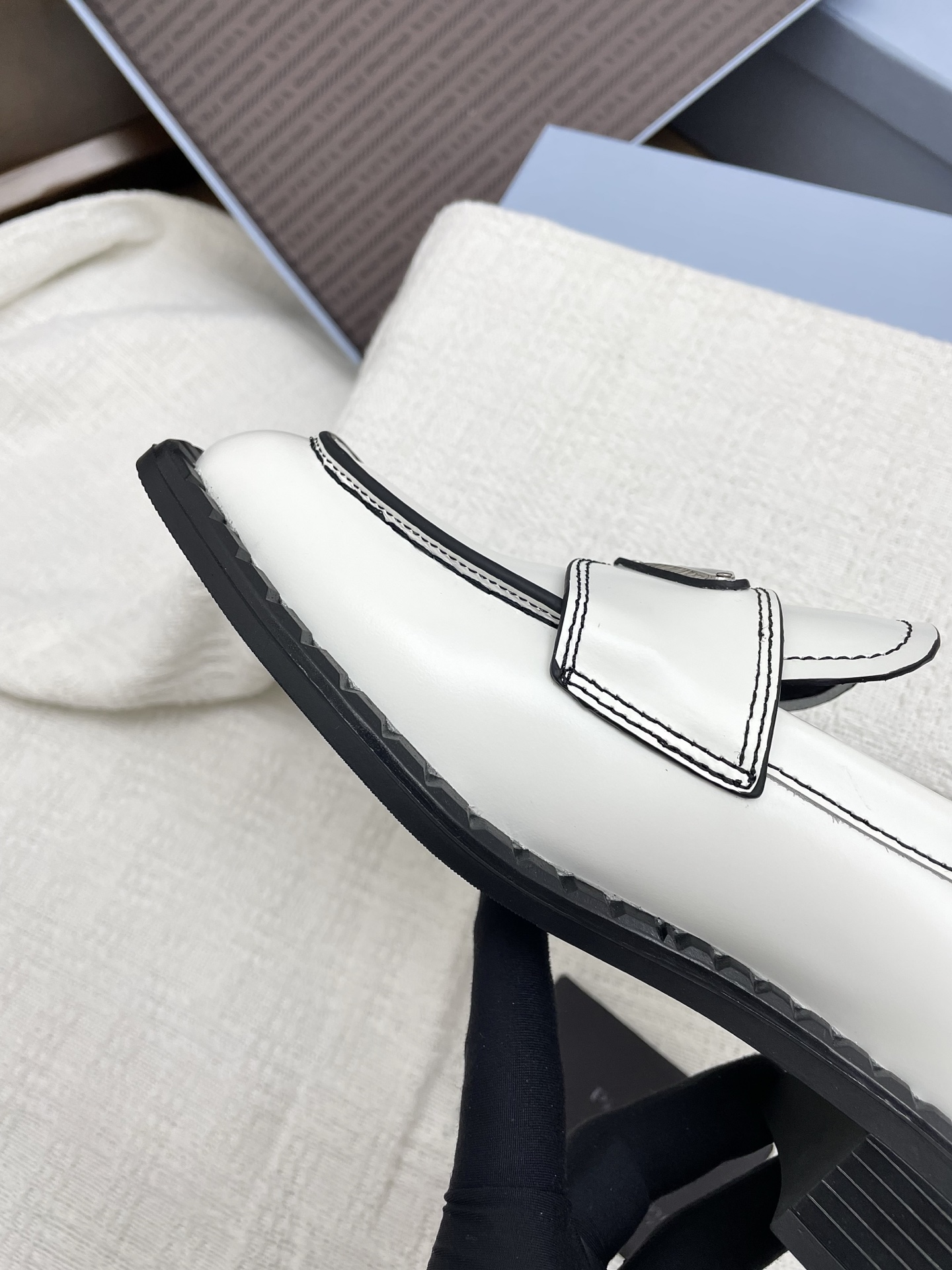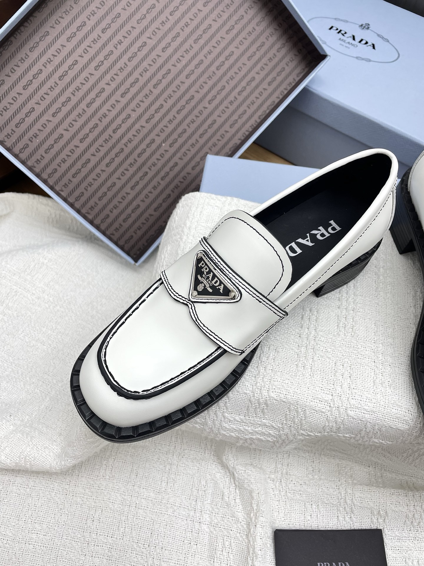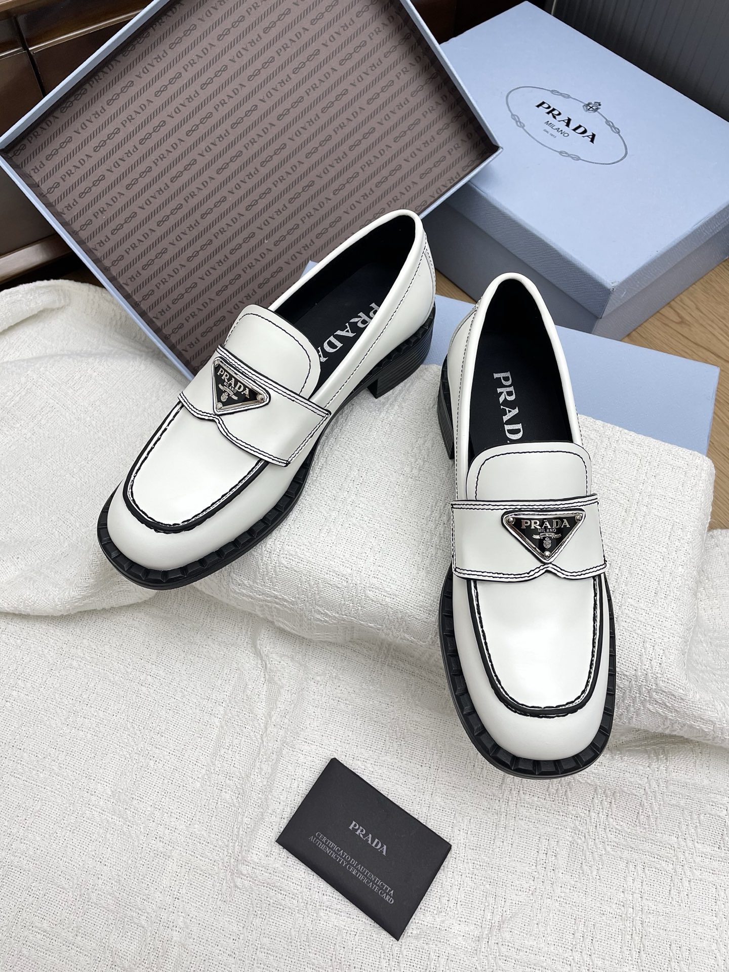 這款鞋子是AAAAA 1:1 質量(非常棒). 使用了和原版一模一樣的材料. 商標部分也保持了和普拉達/Prada一樣. 圖片拍攝是實物鞋子拍攝, 您所收到的實物保證和我們圖片一模一樣.