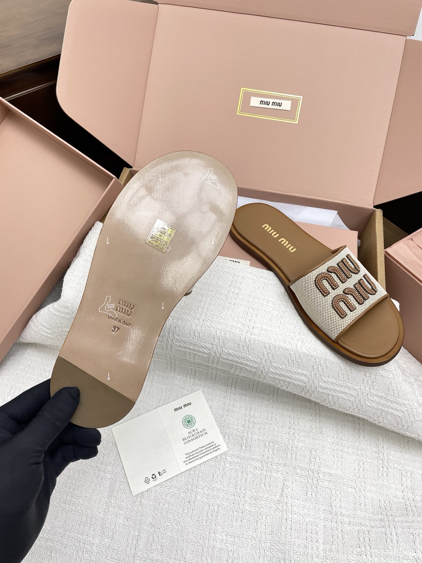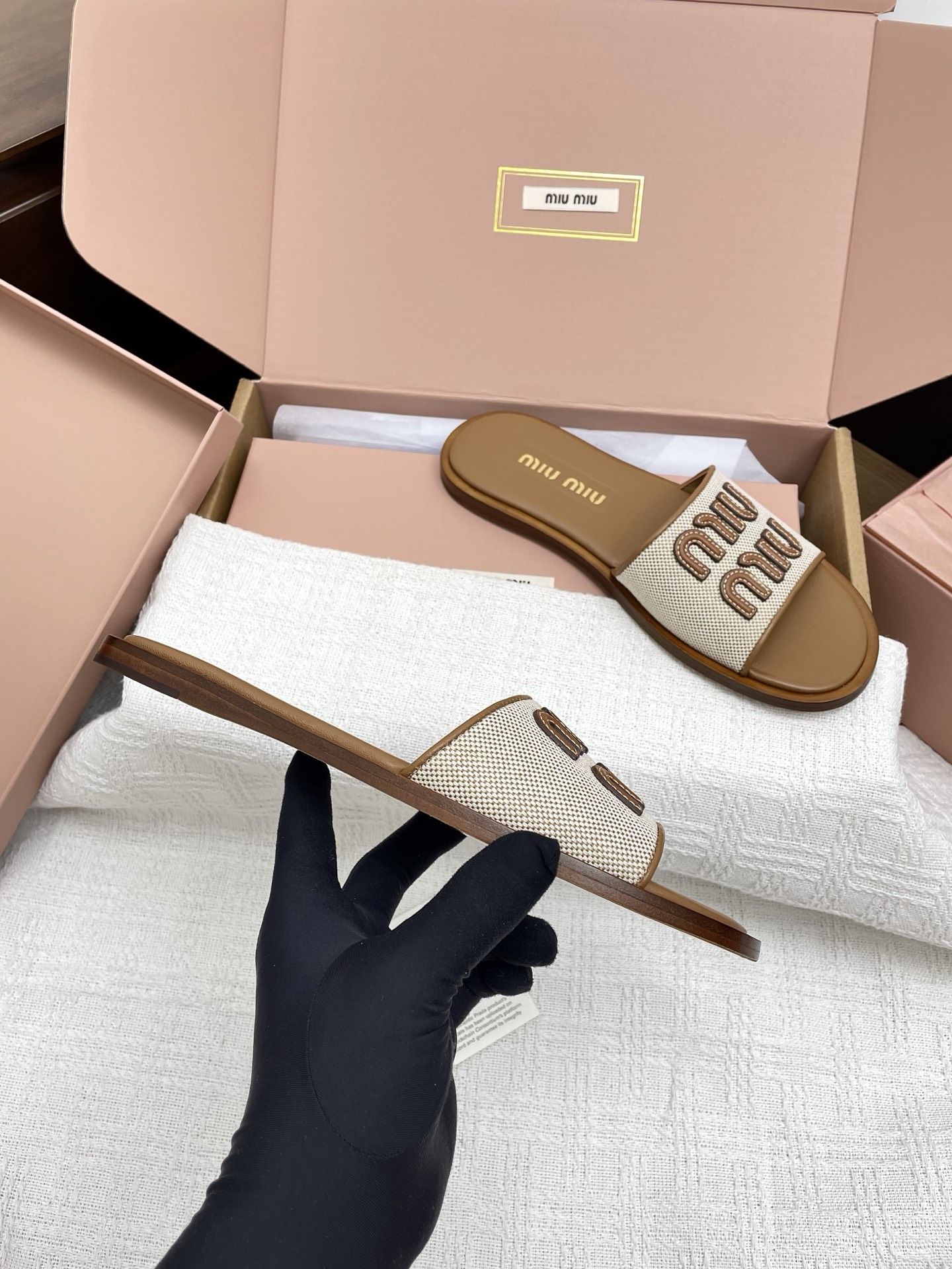 這款鞋子是AAAAA 1:1 質量(非常棒). 使用了和原版一模一樣的材料. 商標部分也保持了和繆繆/Miu Miu一樣. 圖片拍攝是實物鞋子拍攝, 您所收到的實物保證和我們圖片一模一樣.