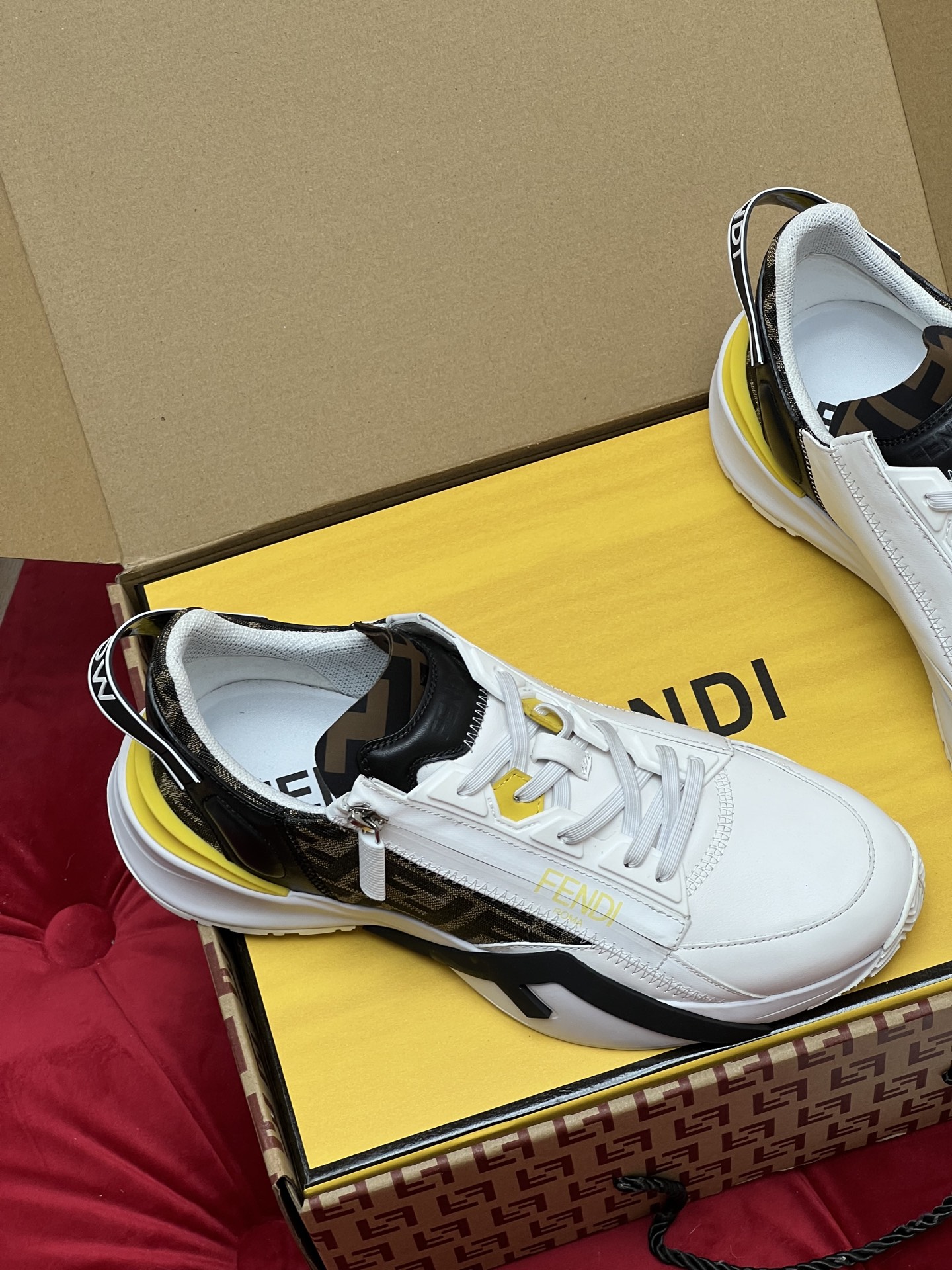 這款鞋子是AAAAA 1:1 質量(非常棒). 使用了和原版一模一樣的材料. 商標部分也保持了和芬迪/Fendi一樣. 圖片拍攝是實物鞋子拍攝, 您所收到的實物保證和我們圖片一模一樣.