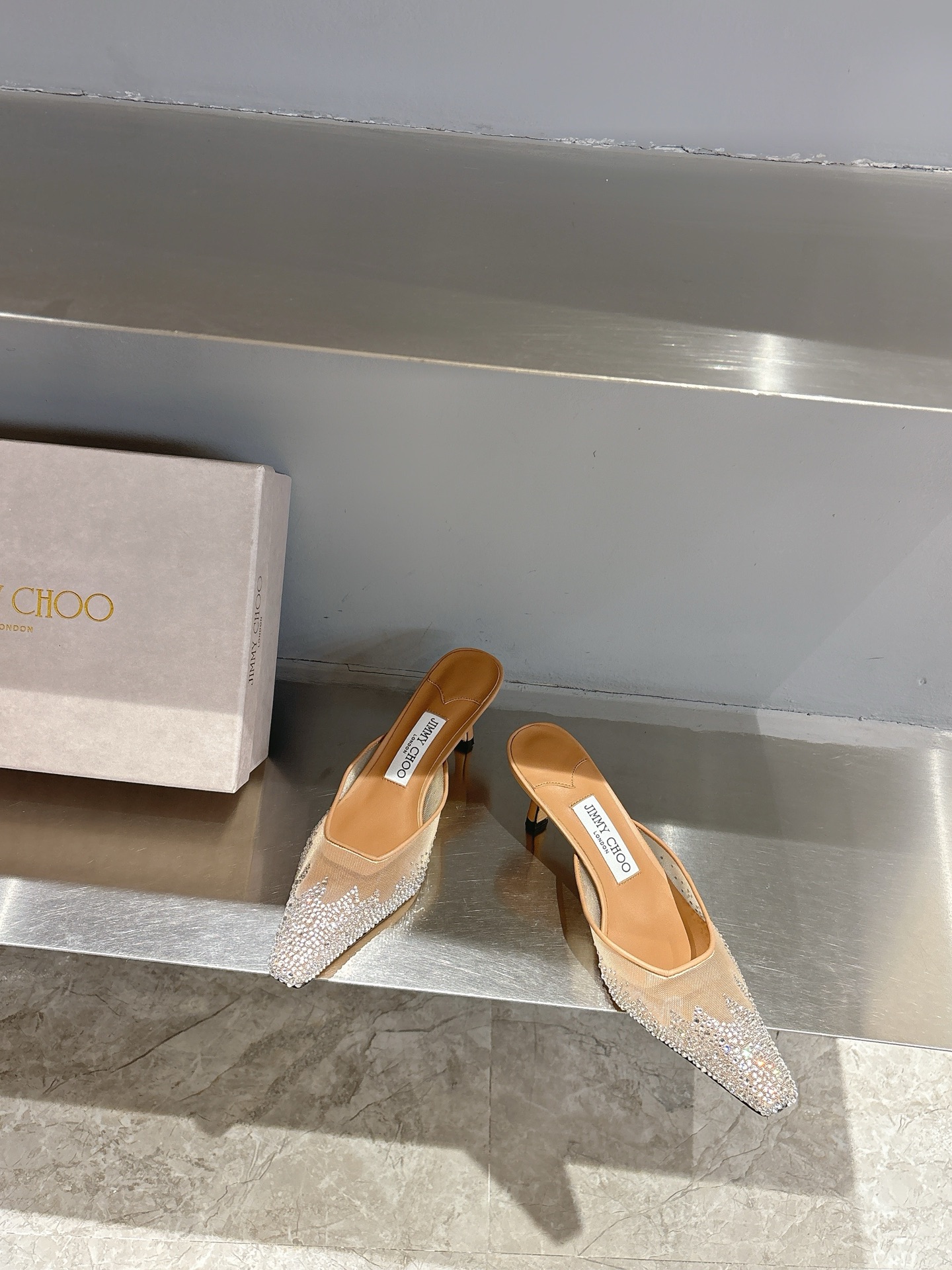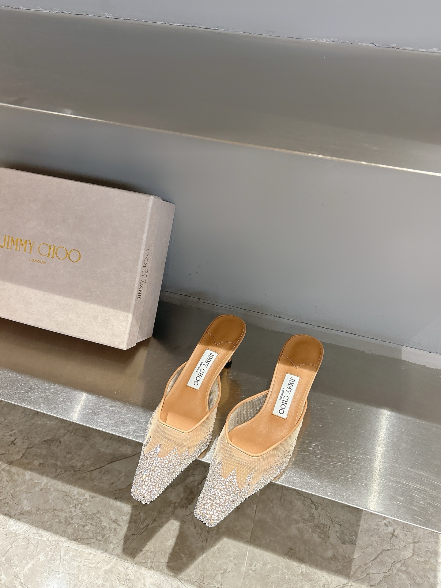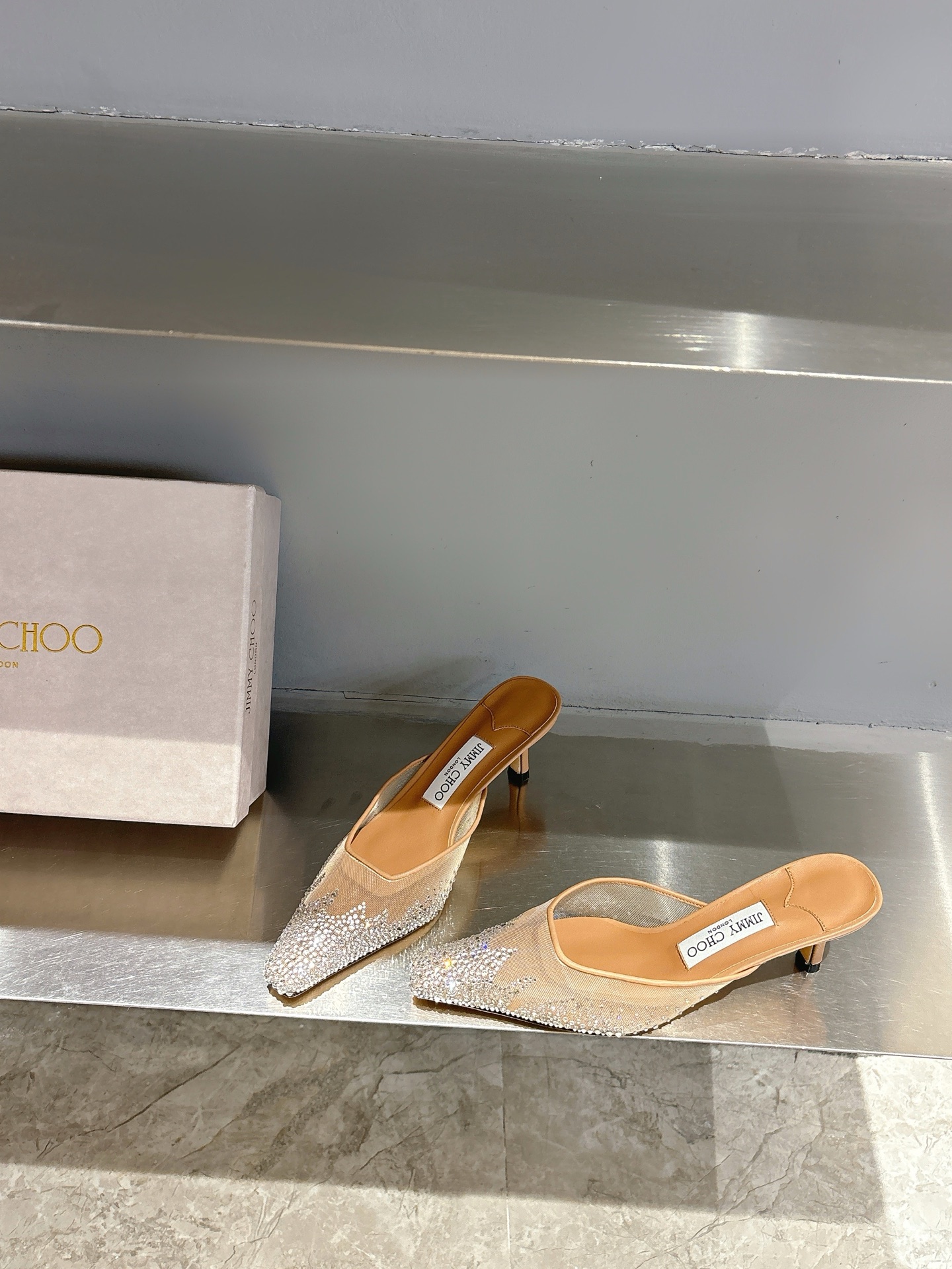 這款鞋子是AAAAA 1:1 質量(非常棒). 使用了和原版一模一樣的材料. 商標部分也保持了和吉米喬/JIMMY CHOO一樣. 圖片拍攝是實物鞋子拍攝, 您所收到的實物保證和我們圖片一模一樣.
