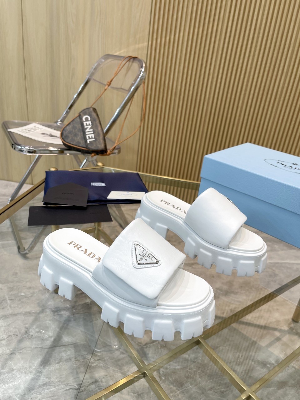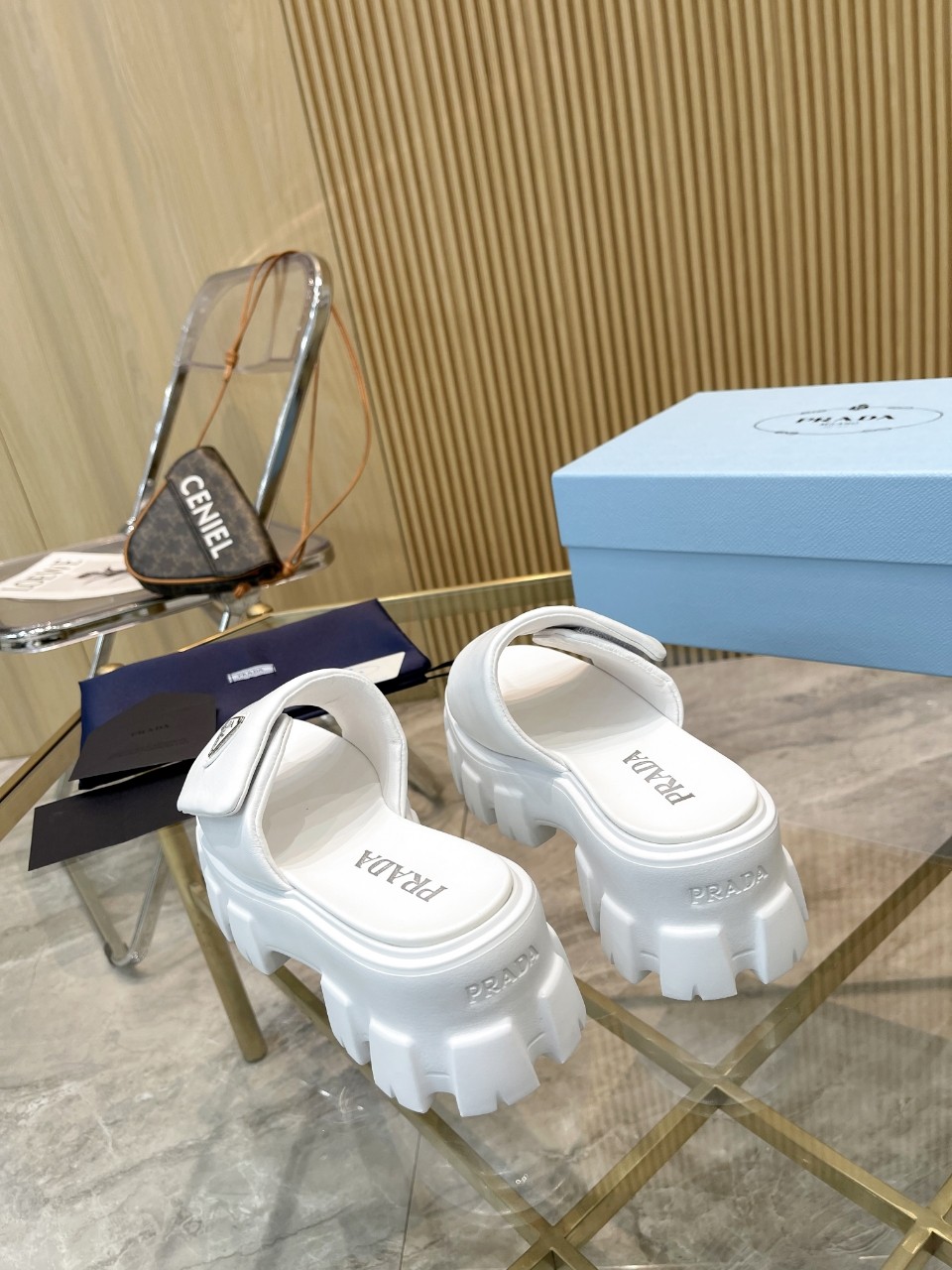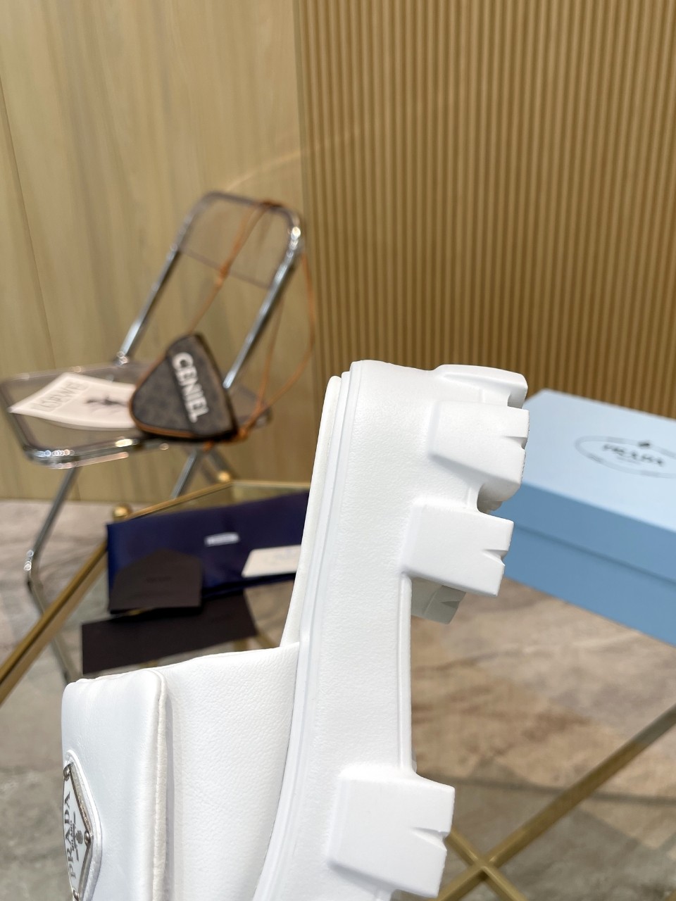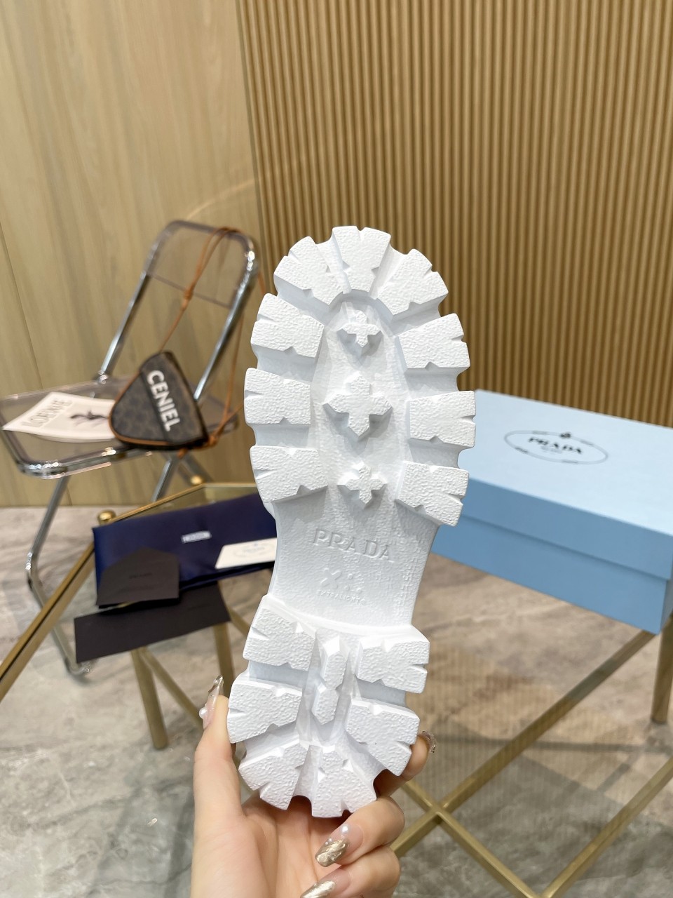這款鞋子是AAAAA 1:1 質量(非常棒). 使用了和原版一模一樣的材料. 商標部分也保持了和普拉達/Prada一樣. 圖片拍攝是實物鞋子拍攝, 您所收到的實物保證和我們圖片一模一樣.