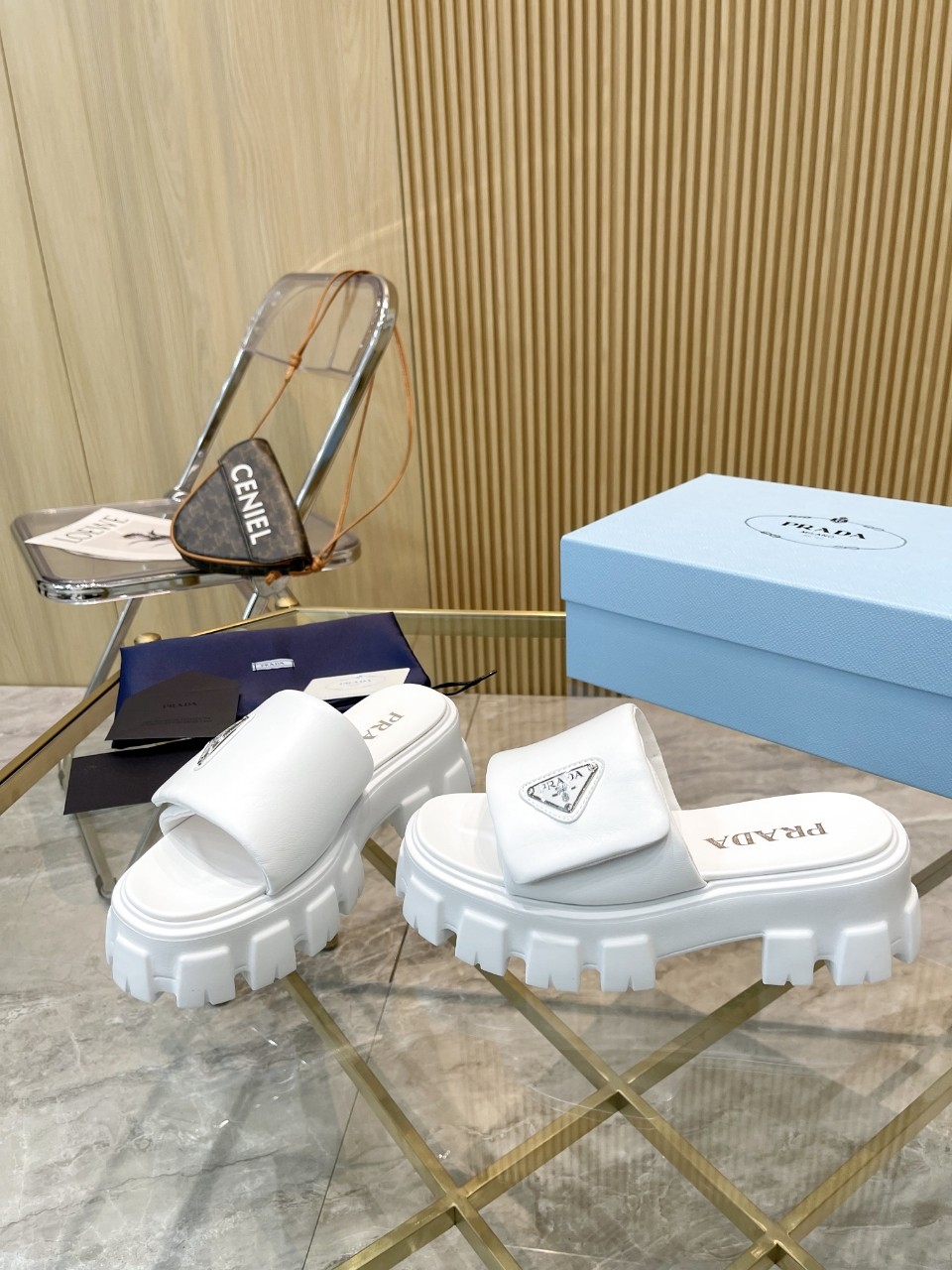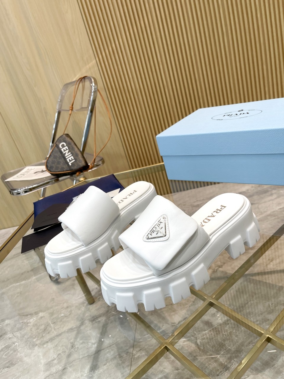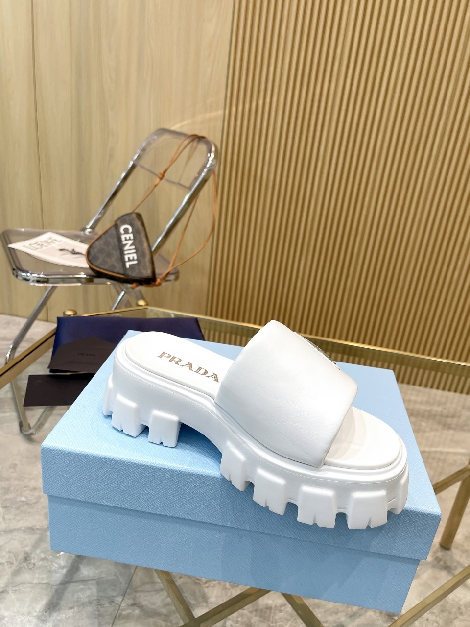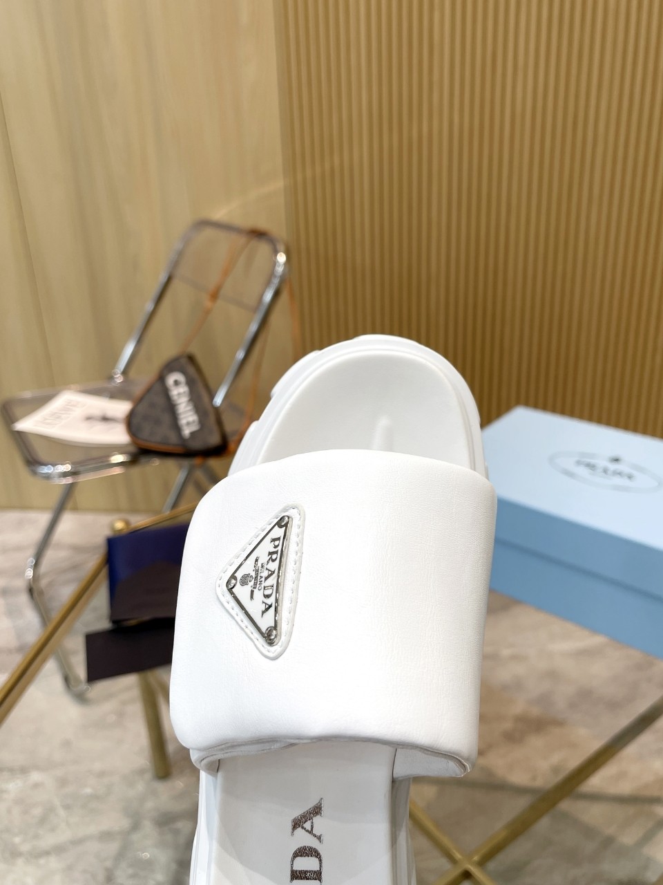 這款鞋子是AAAAA 1:1 質量(非常棒). 使用了和原版一模一樣的材料. 商標部分也保持了和普拉達/Prada一樣. 圖片拍攝是實物鞋子拍攝, 您所收到的實物保證和我們圖片一模一樣.