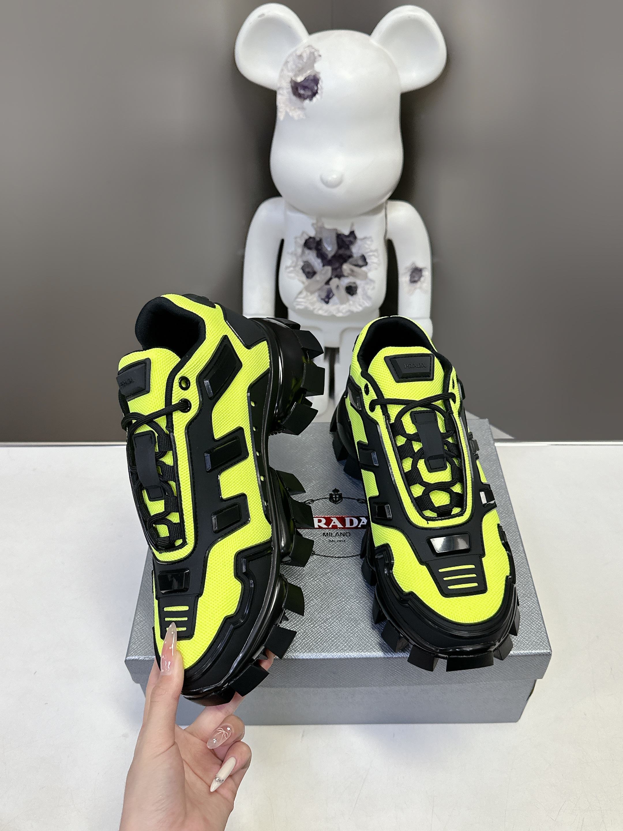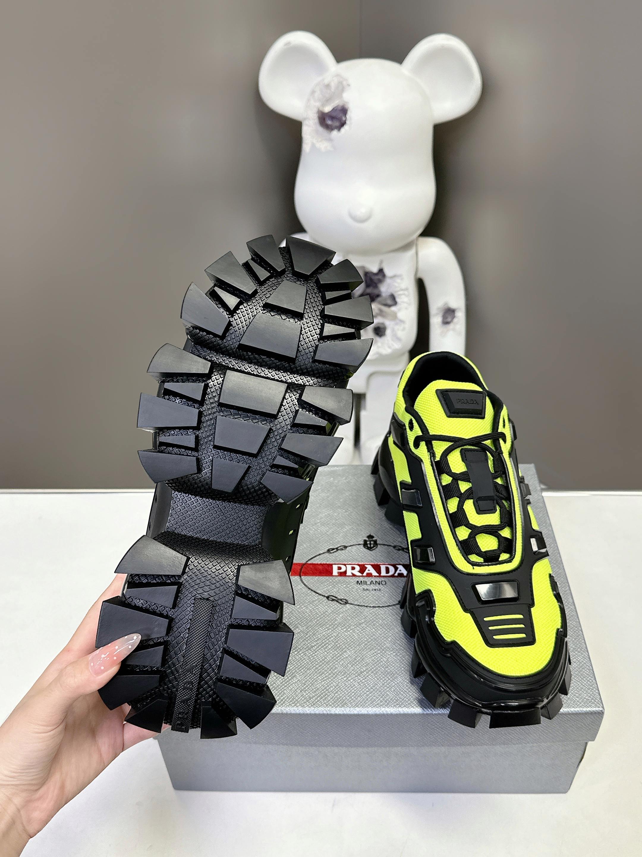 這款鞋子是AAAAA 1:1 質量(非常棒). 使用了和原版一模一樣的材料. 商標部分也保持了和普拉達/Prada一樣. 圖片拍攝是實物鞋子拍攝, 您所收到的實物保證和我們圖片一模一樣.