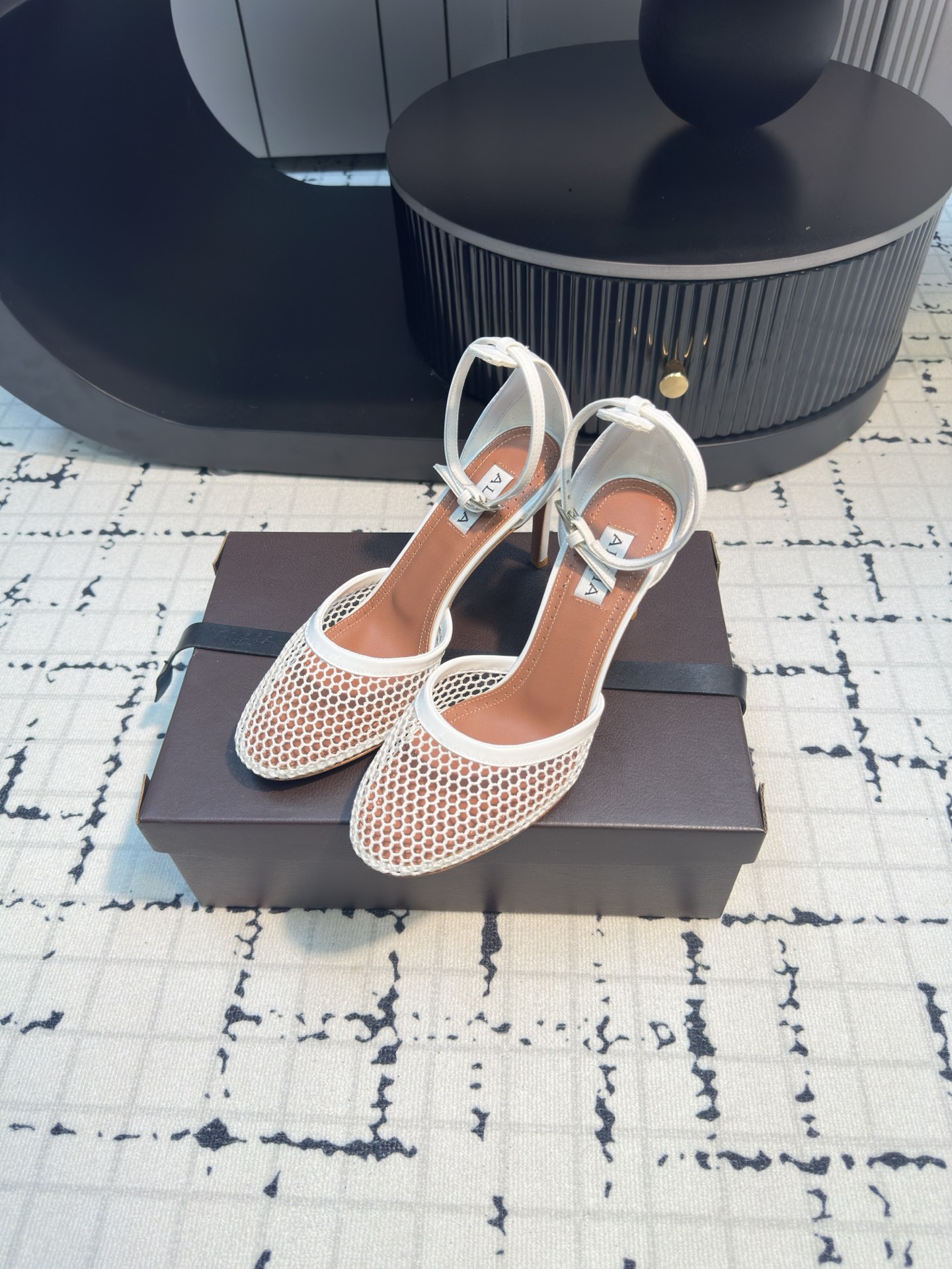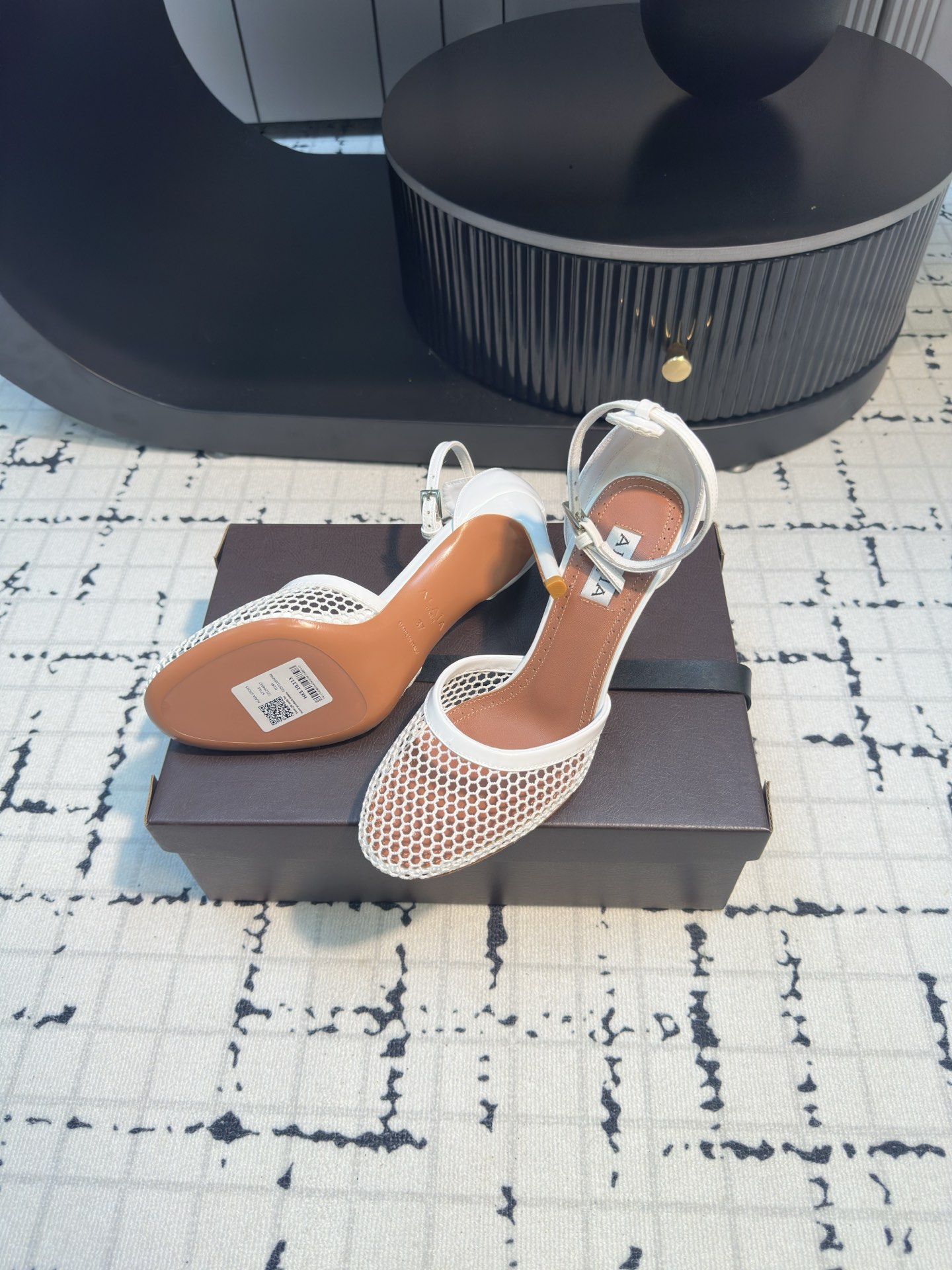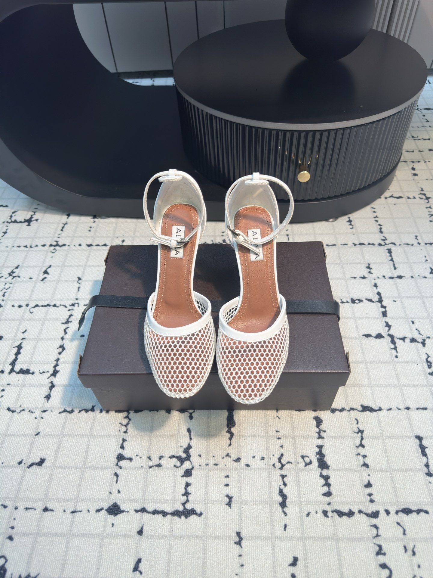 這款鞋子是AAAAA 1:1 質量(非常棒). 使用了和原版一模一樣的材料. 商標部分也保持了和Alaia一樣. 圖片拍攝是實物鞋子拍攝, 您所收到的實物保證和我們圖片一模一樣.