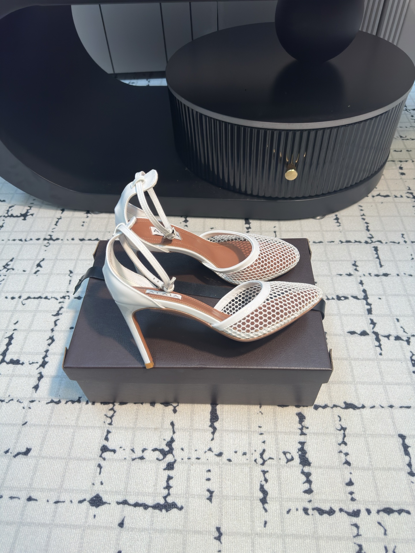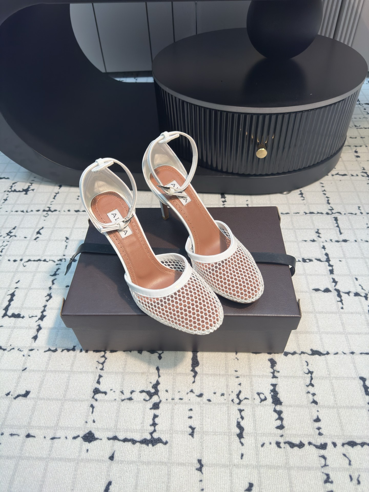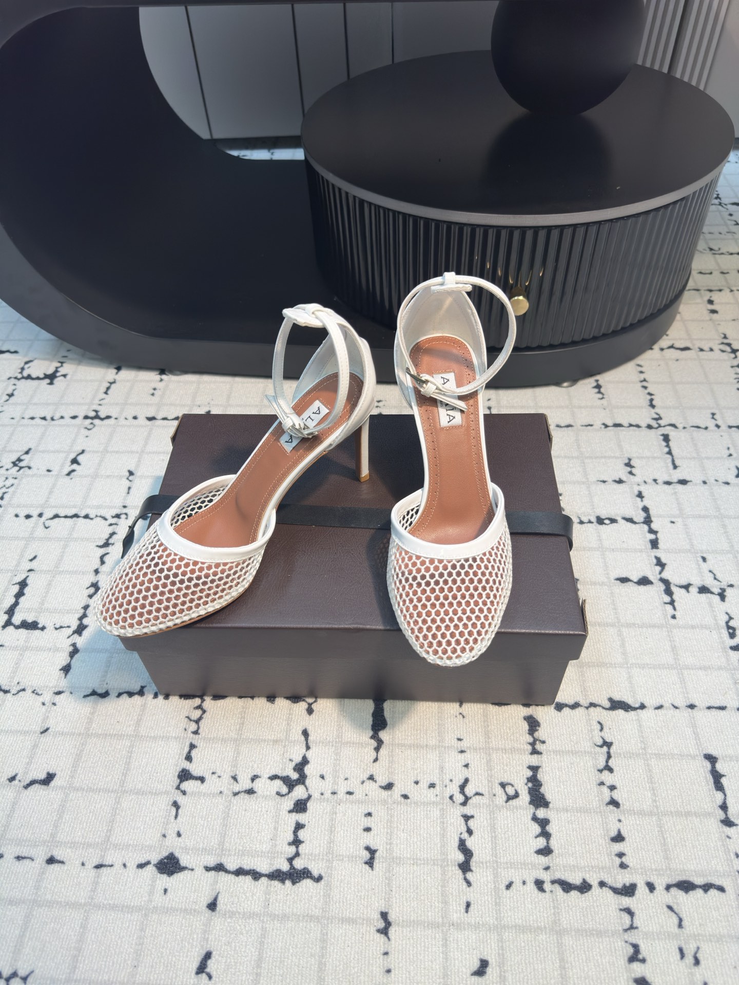 這款鞋子是AAAAA 1:1 質量(非常棒). 使用了和原版一模一樣的材料. 商標部分也保持了和Alaia一樣. 圖片拍攝是實物鞋子拍攝, 您所收到的實物保證和我們圖片一模一樣.