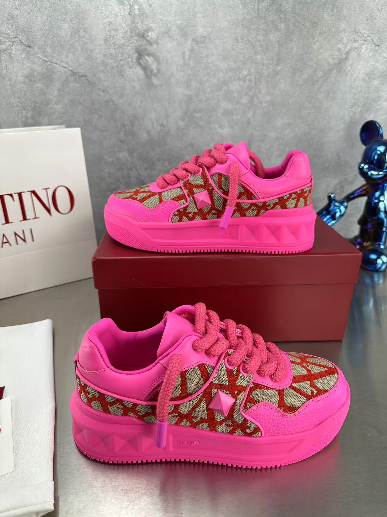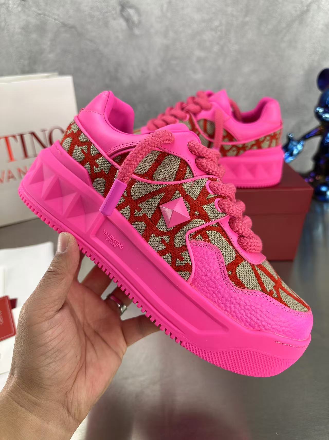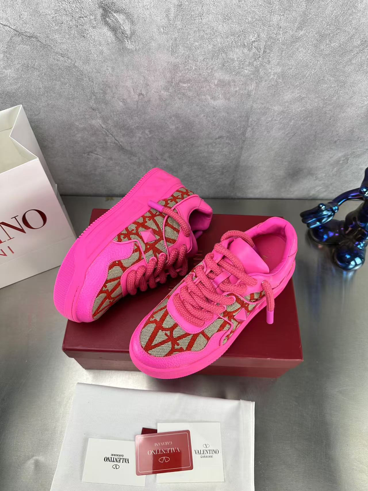 這款鞋子是AAAAA 1:1 質量(非常棒). 使用了和原版一模一樣的材料. 商標部分也保持了和瓦倫蒂諾/Valentino一樣. 圖片拍攝是實物鞋子拍攝, 您所收到的實物保證和我們圖片一模一樣.