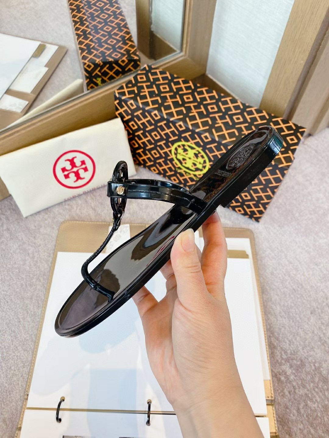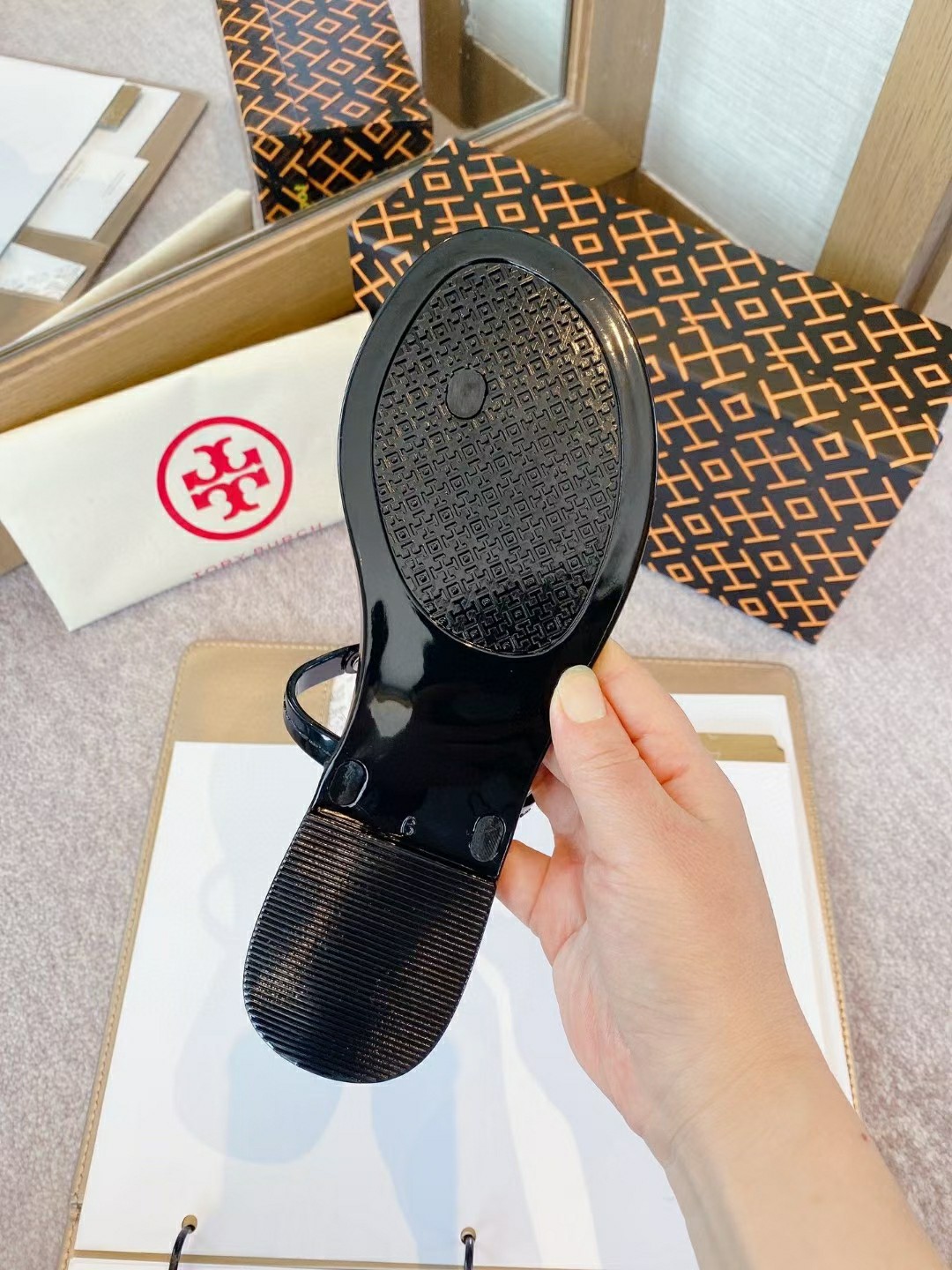 這款鞋子是AAAAA 1:1 質量(非常棒). 使用了和原版一模一樣的材料. 商標部分也保持了和Tory Burch一樣. 圖片拍攝是實物鞋子拍攝, 您所收到的實物保證和我們圖片一模一樣.
