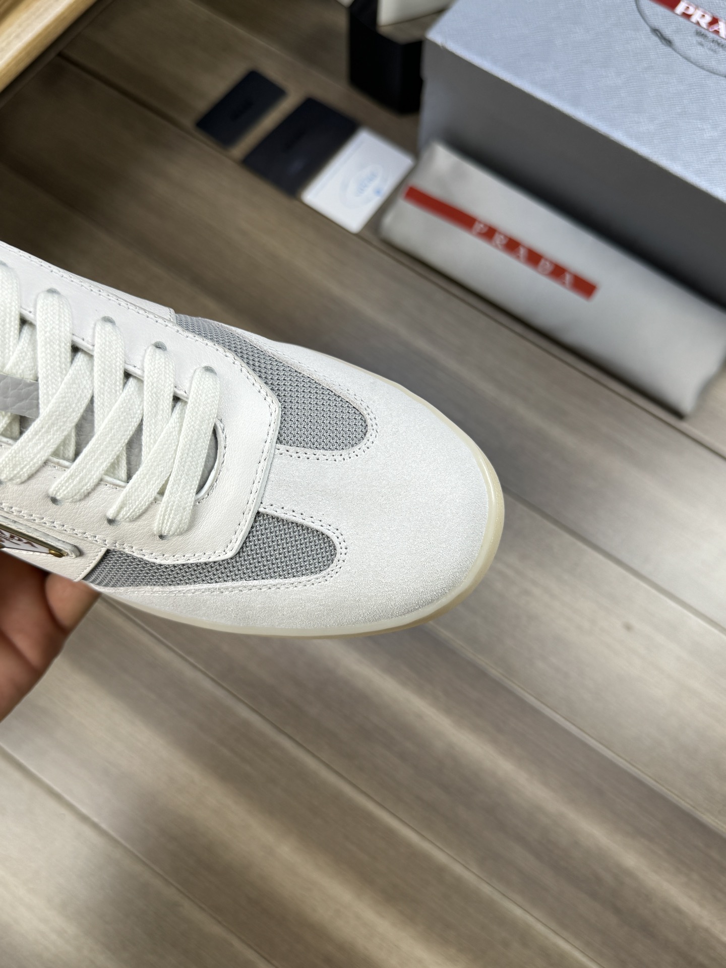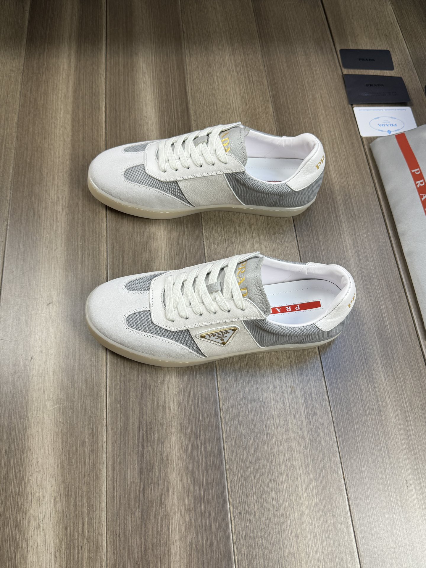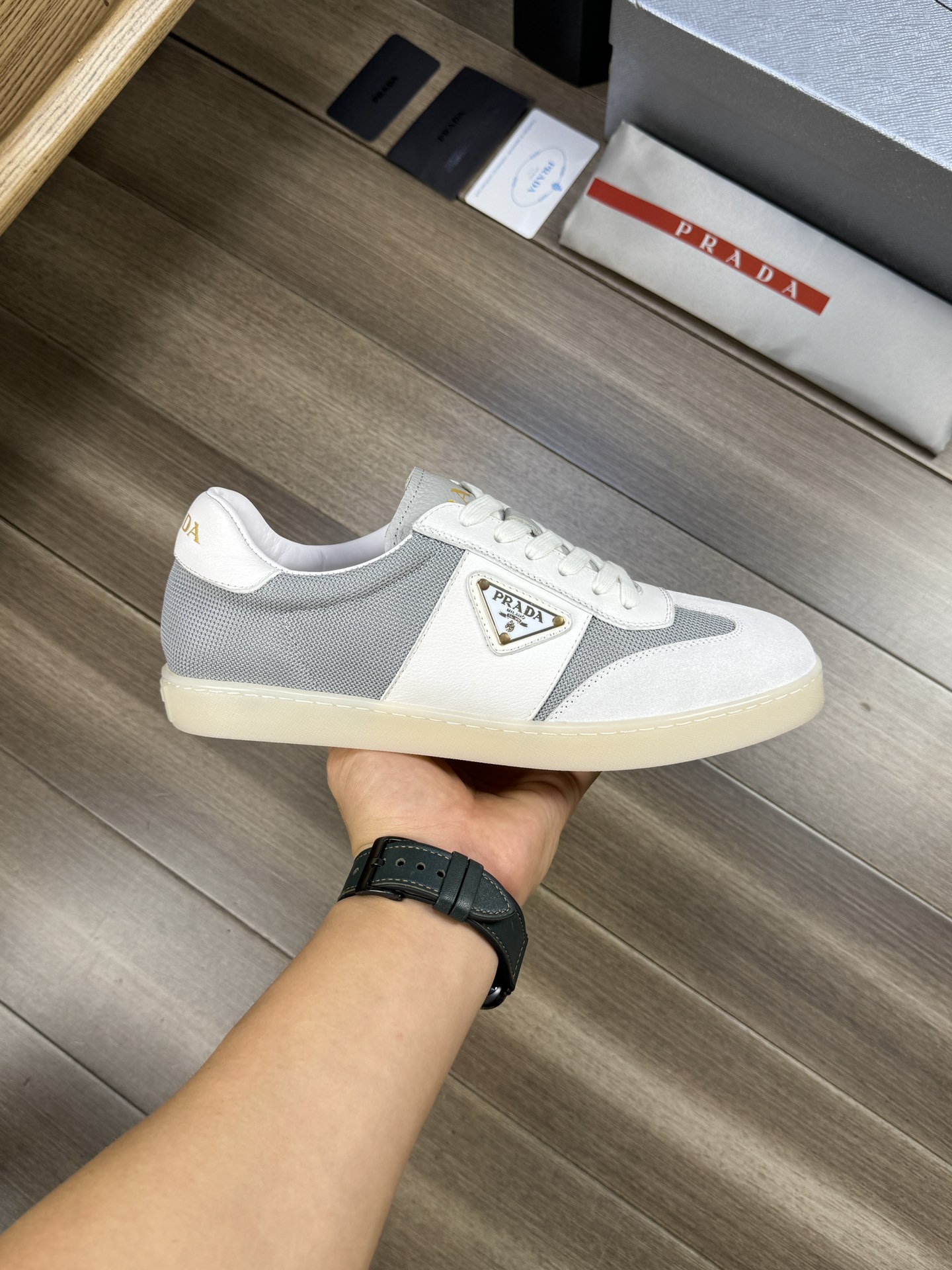 這款鞋子是AAAAA 1:1 質量(非常棒). 使用了和原版一模一樣的材料. 商標部分也保持了和普拉達/Prada一樣. 圖片拍攝是實物鞋子拍攝, 您所收到的實物保證和我們圖片一模一樣.