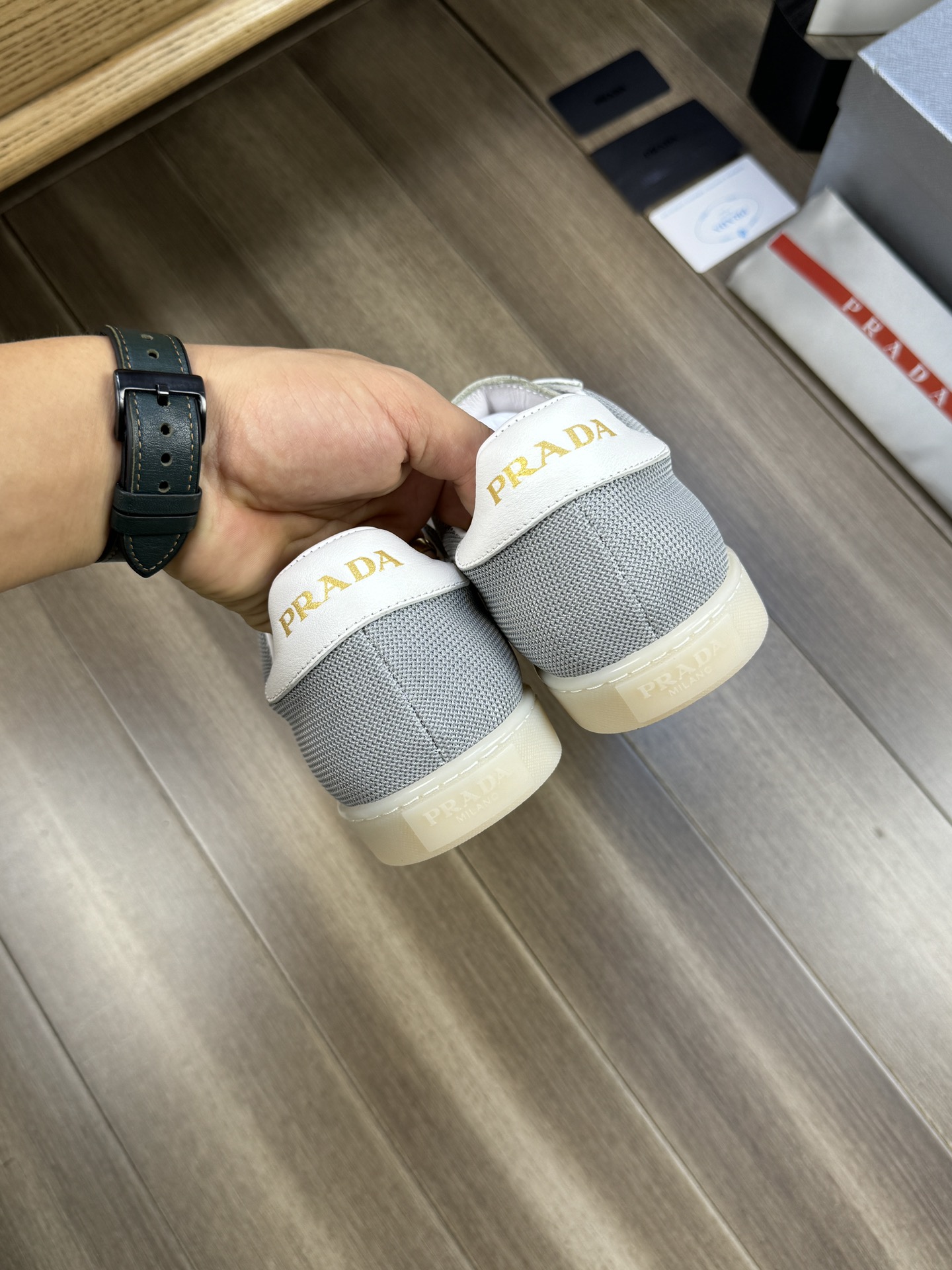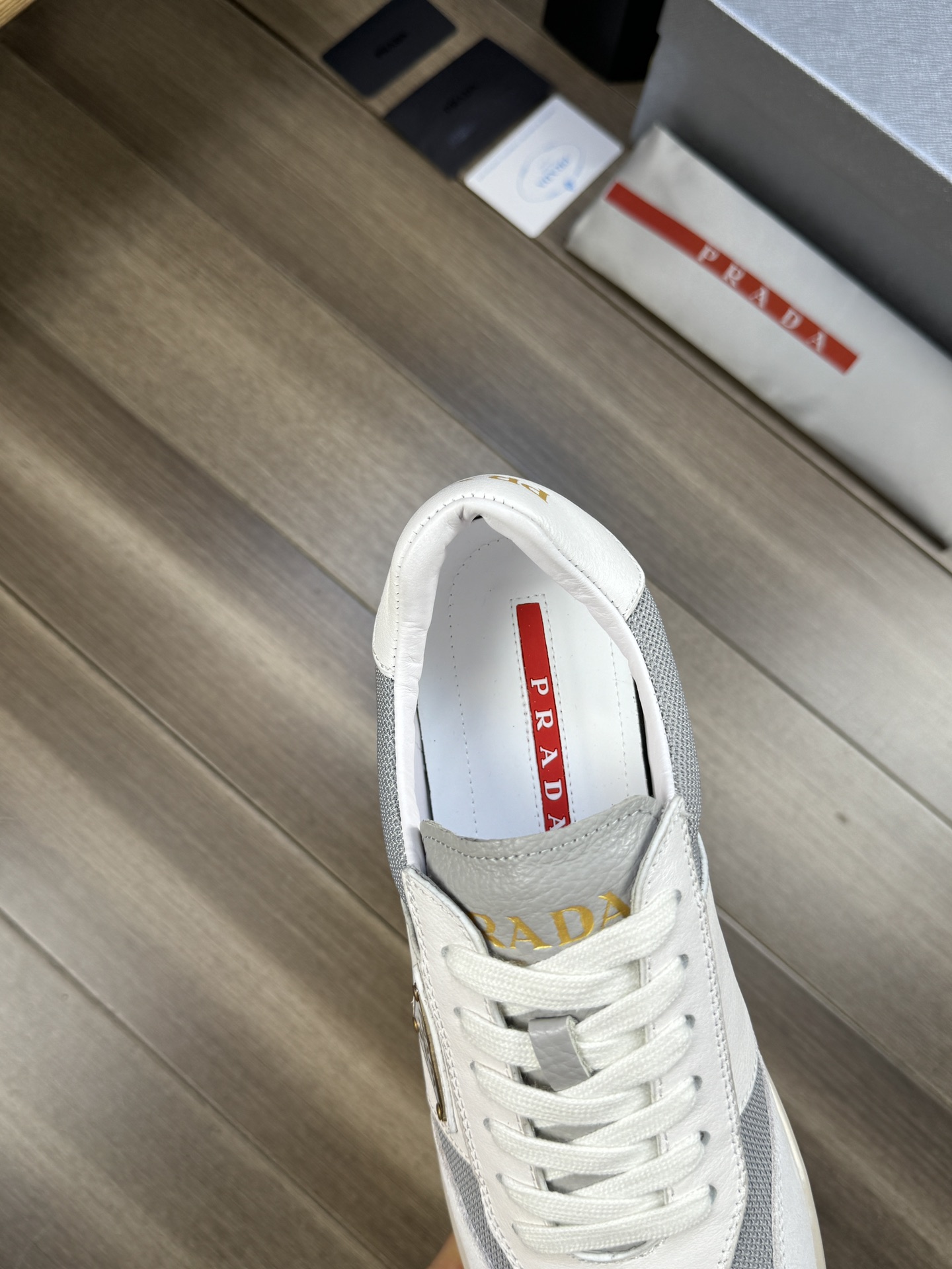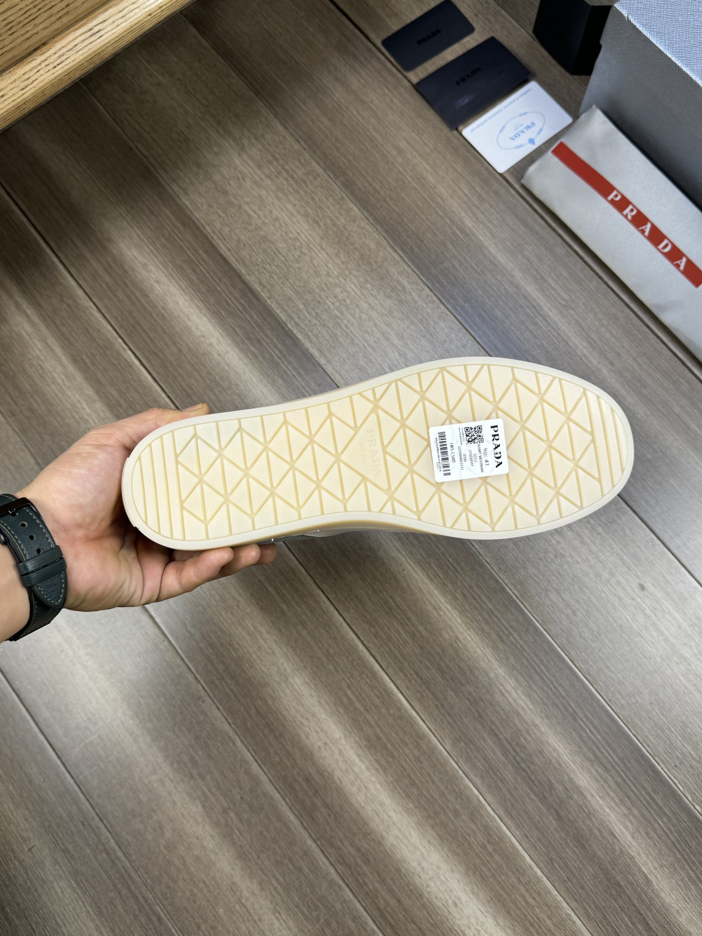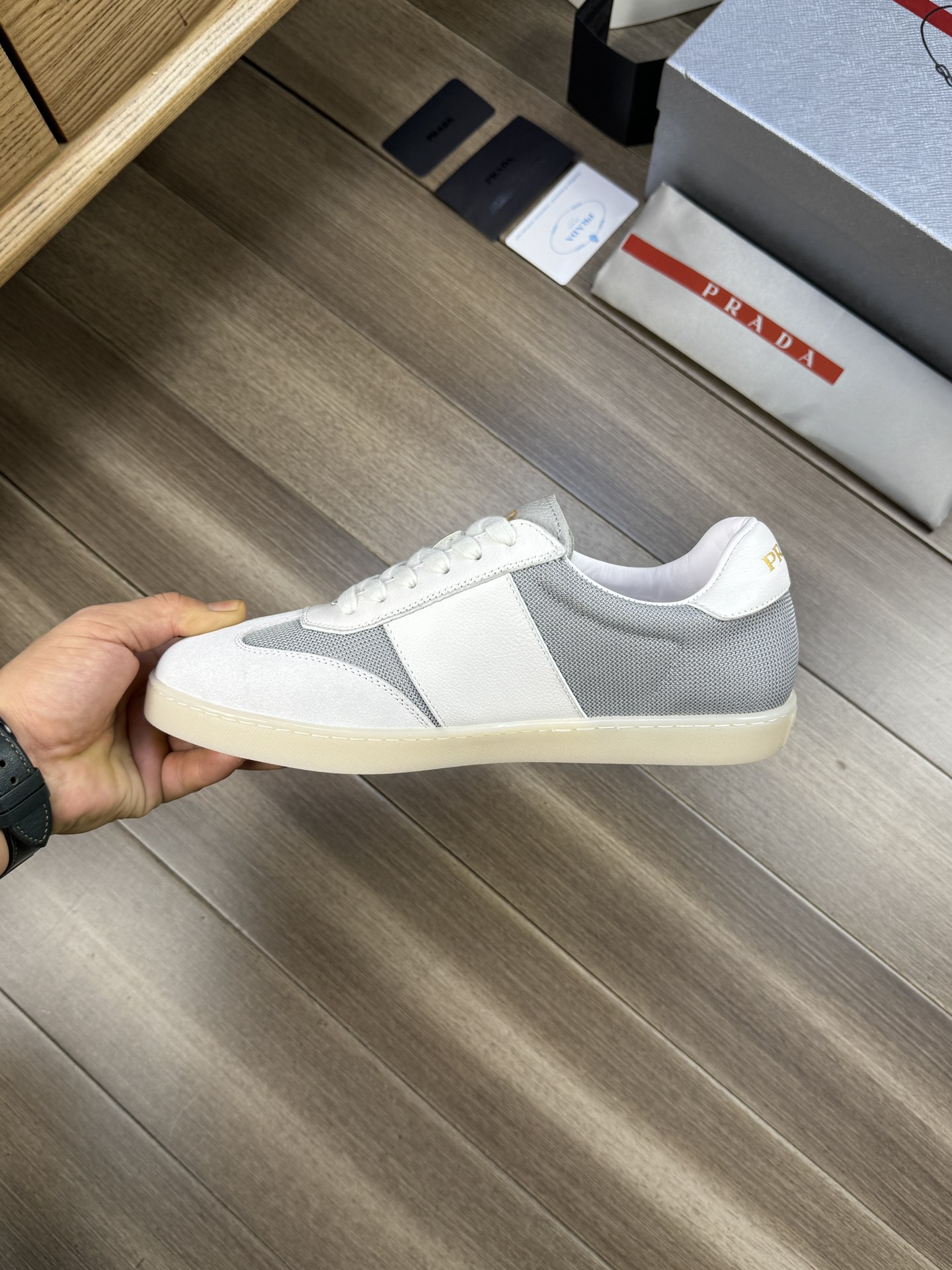 這款鞋子是AAAAA 1:1 質量(非常棒). 使用了和原版一模一樣的材料. 商標部分也保持了和普拉達/Prada一樣. 圖片拍攝是實物鞋子拍攝, 您所收到的實物保證和我們圖片一模一樣.